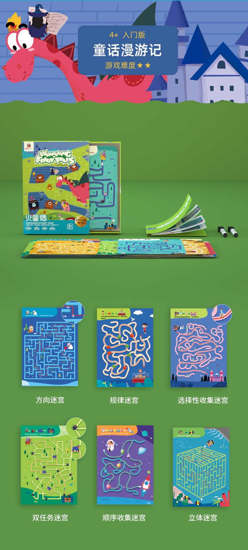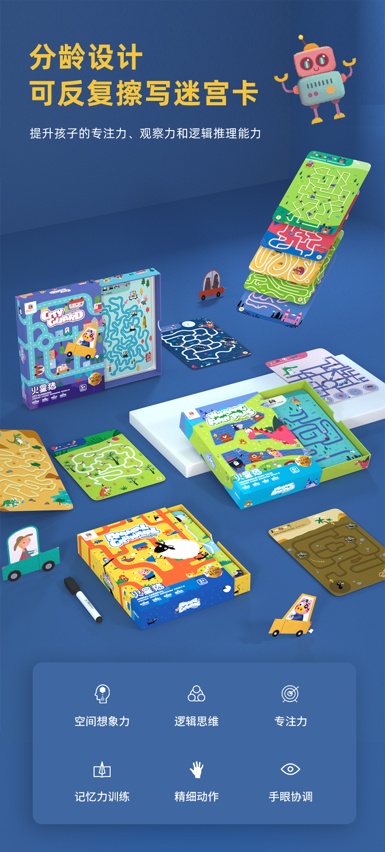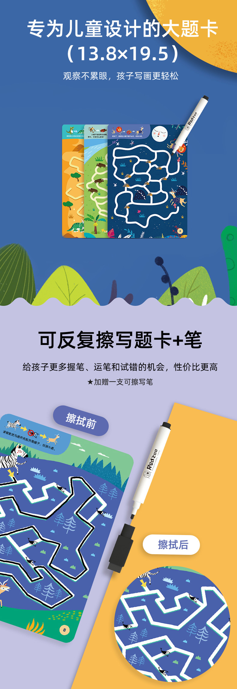 【控笔+逻辑进阶桌游迷宫卡】Redzoo火星猪儿童专注力思维逻辑训练走迷宫书 分龄进阶式 益智玩具