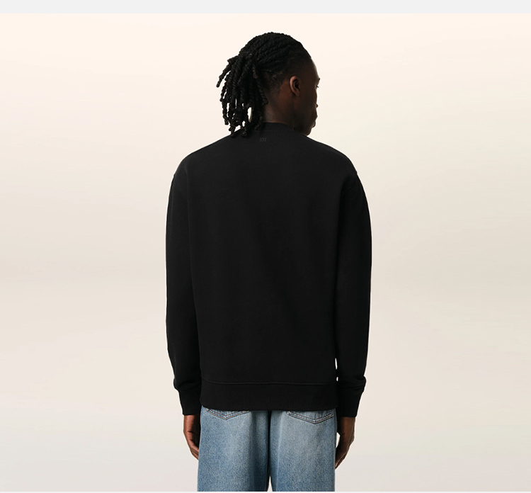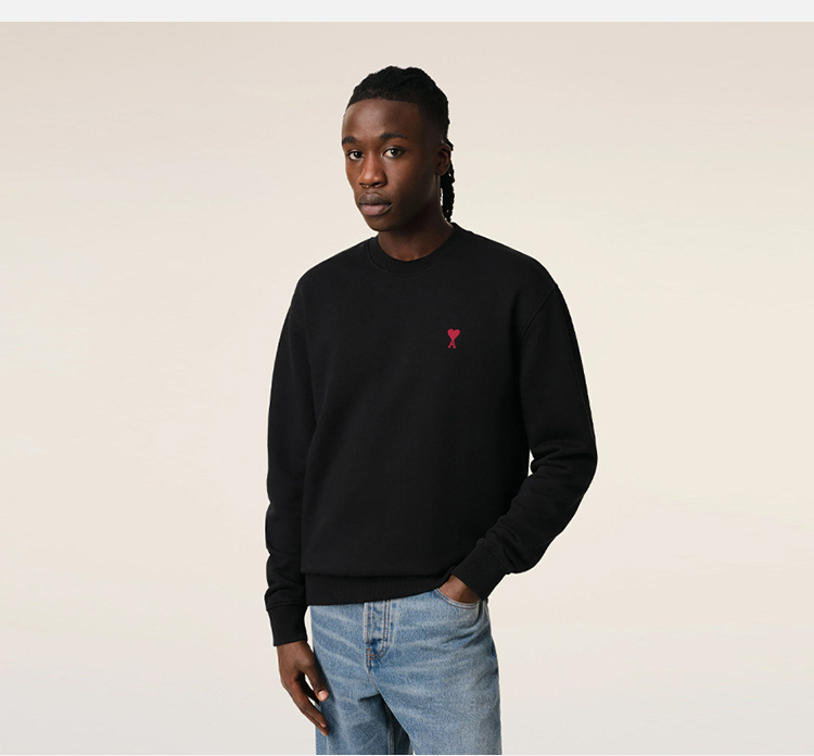 AMI 男士心形徽标刺绣棉质运动卫衣 黑色 BFUSW035 730 001