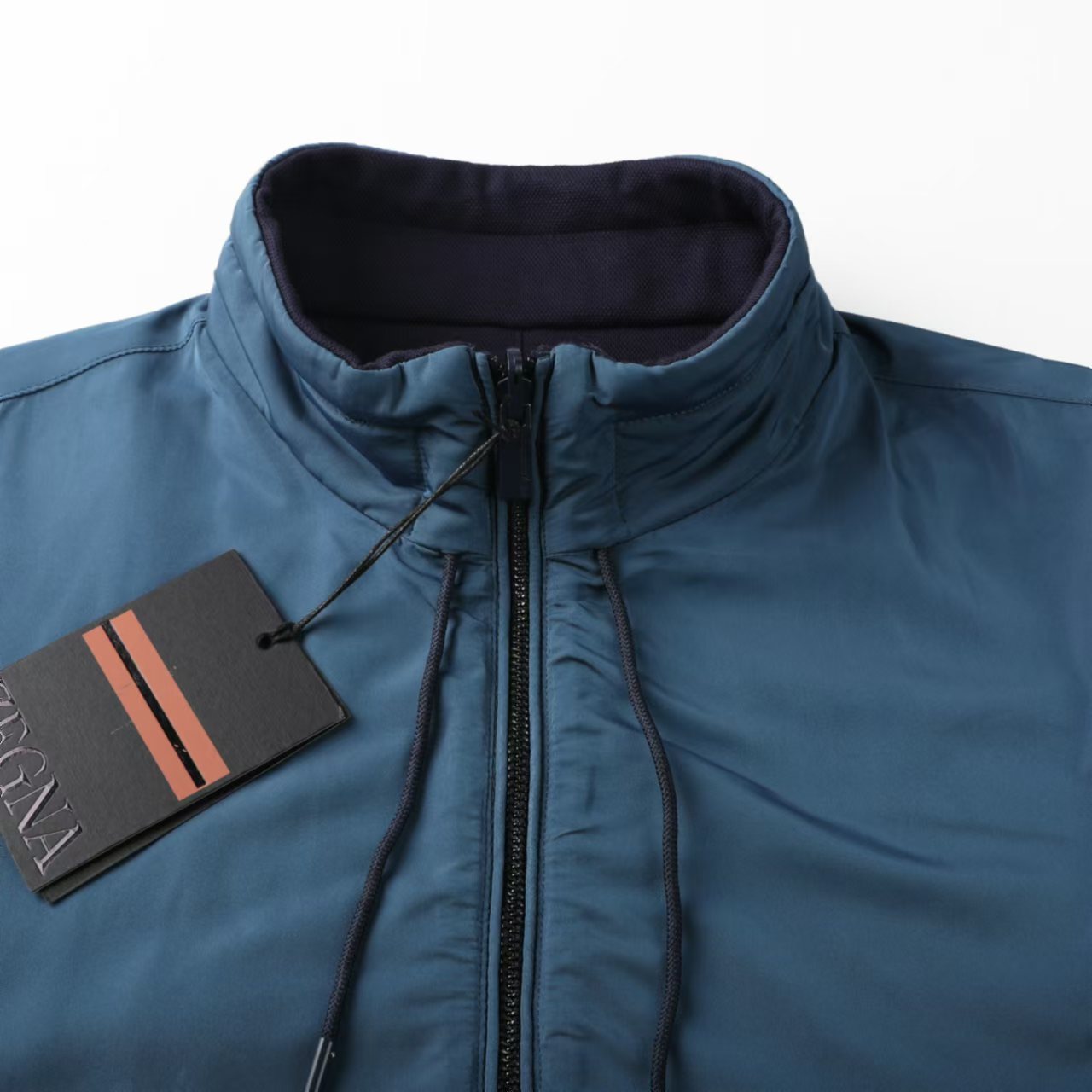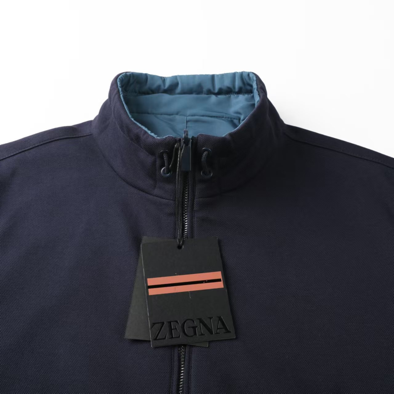 杰尼亚秋冬外套,双面拉链外套,官网同款!双面可穿,款一A面蓝色风衣面料,B面藏青色珠地面料,撞色拉链可正反。款二,A面藏青色风衣面料,B面灰色珠地面料。多种搭配,可挡风,可柔软。男款商务休闲都可穿~