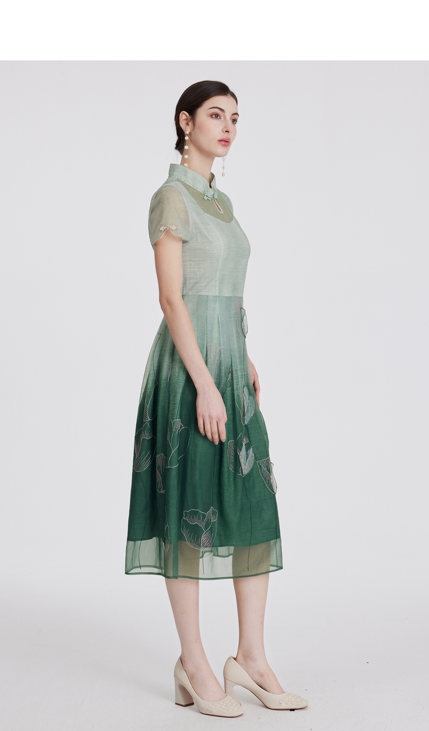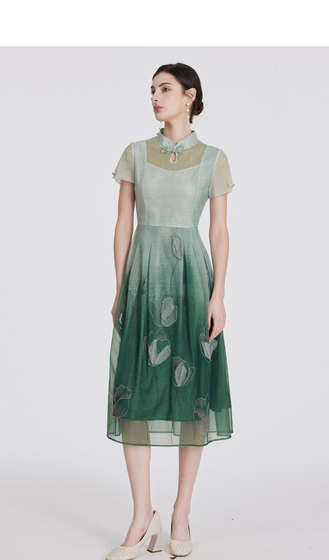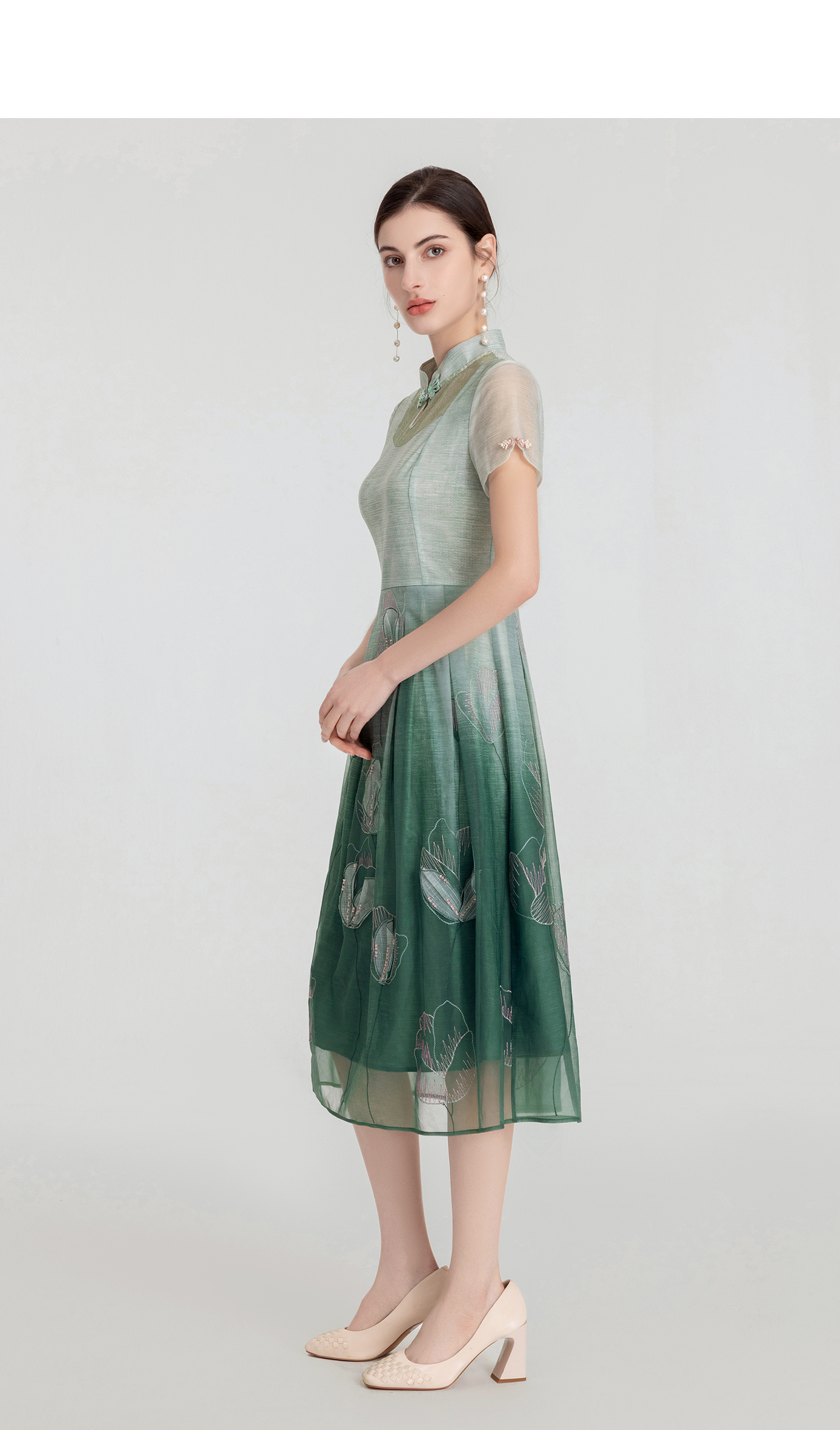 司歌国风改良旗袍连衣裙刺绣长袖裙A881298