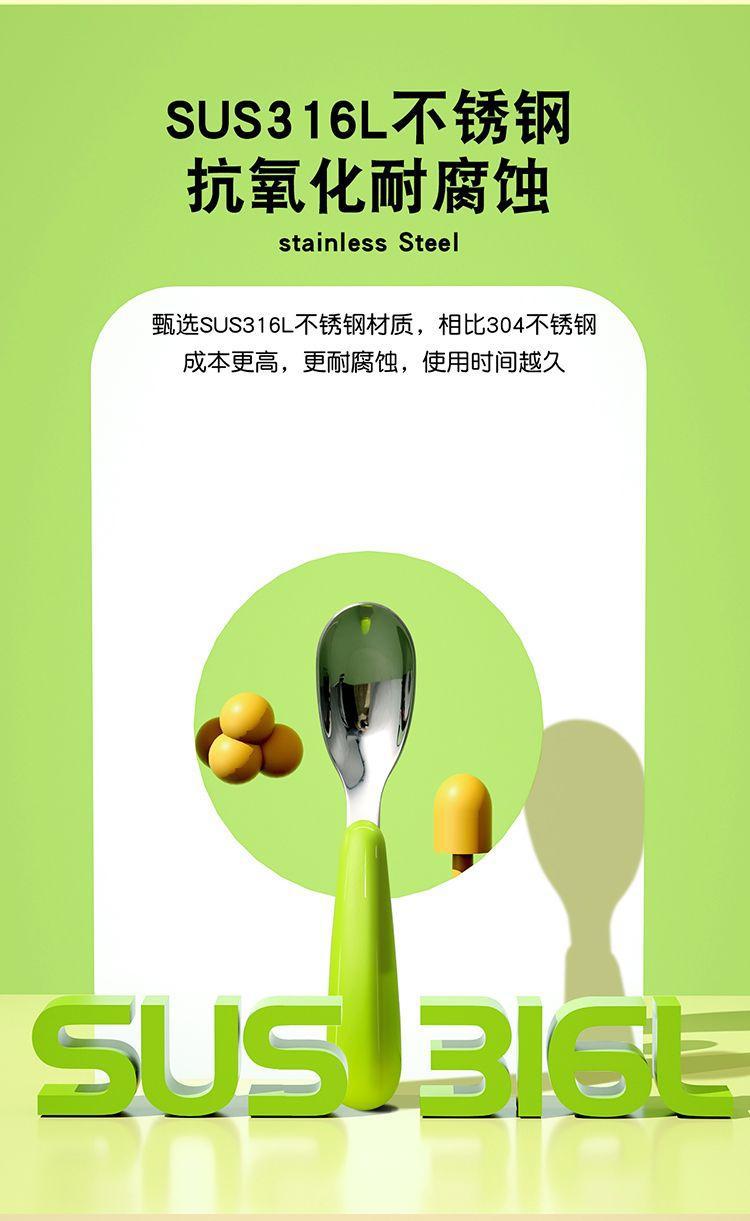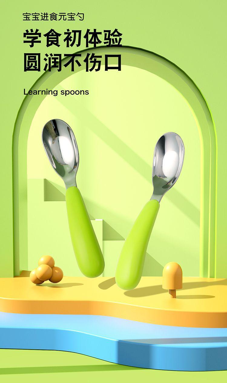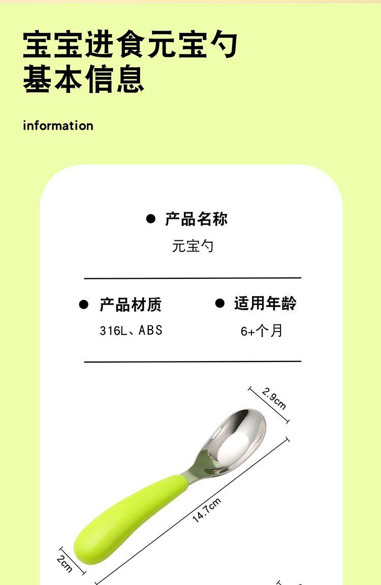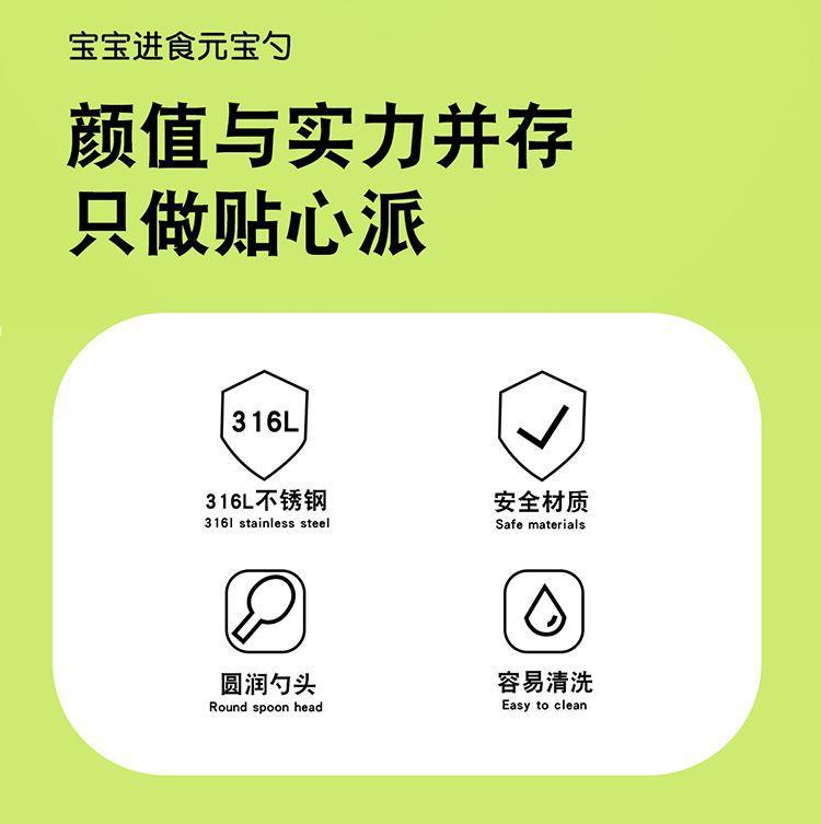 儿童元宝勺316L不锈钢宝宝勺子母婴喂养餐具匙婴儿吃饭训练勺子