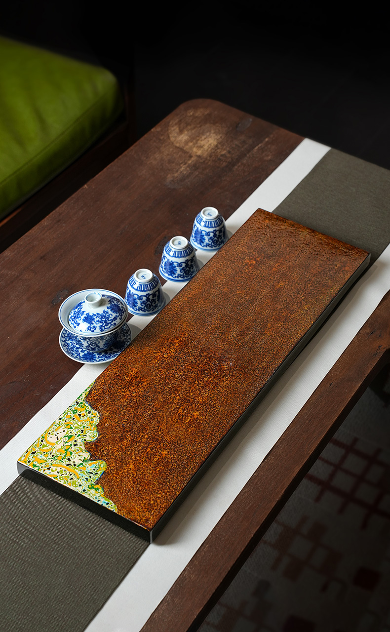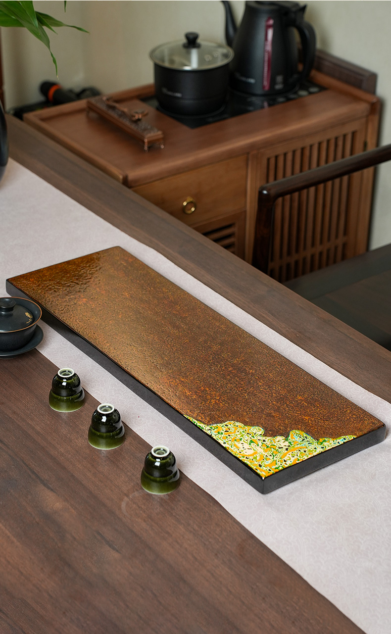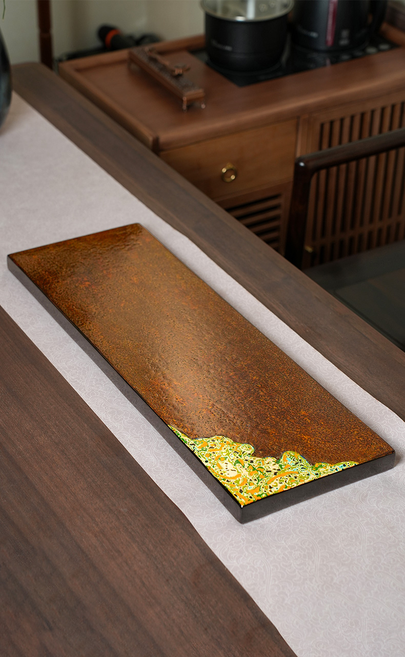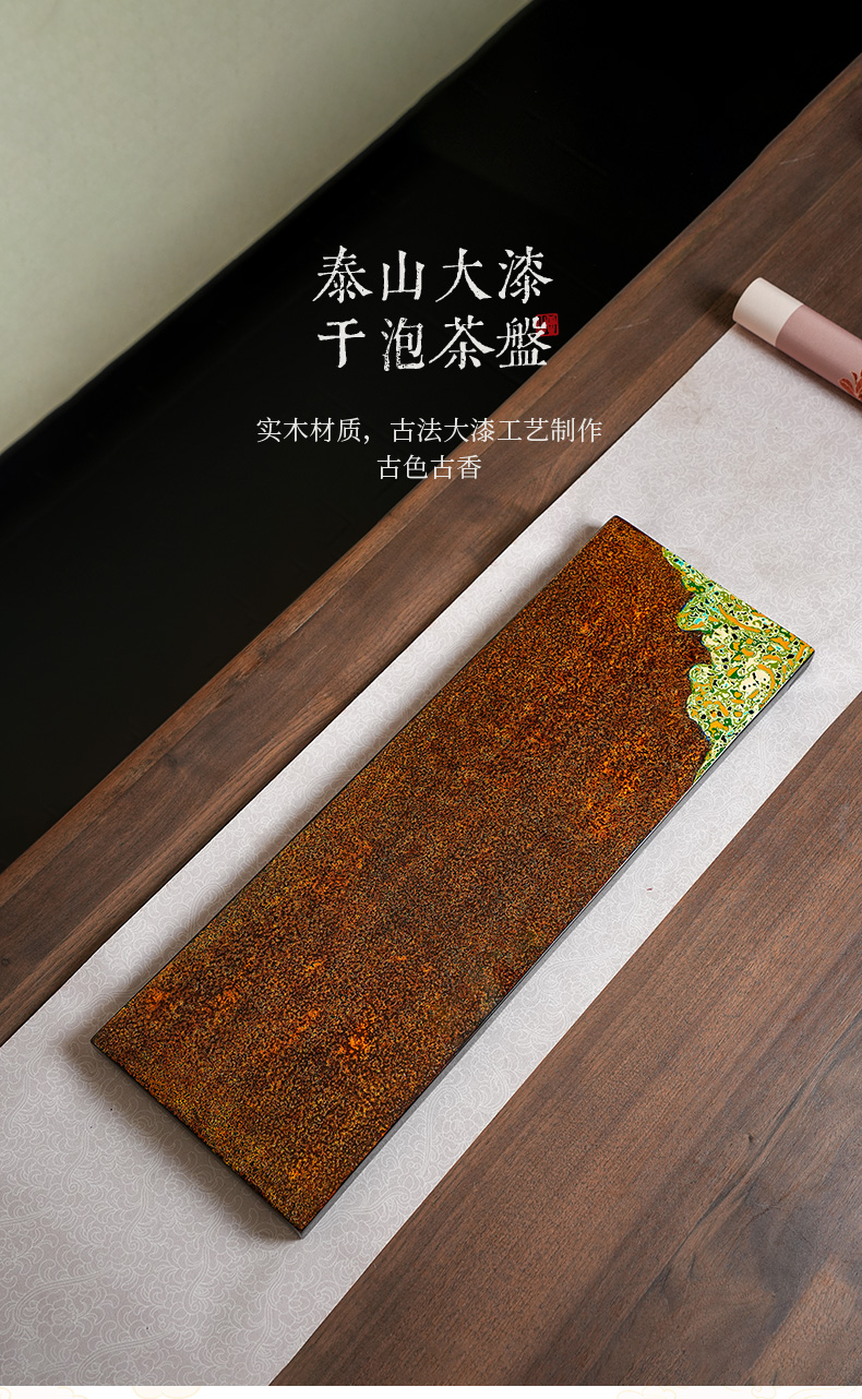 泰山大漆浮雕祥云干泡台漆器茶具大漆手工茶盘中式简约实木干泡茶台