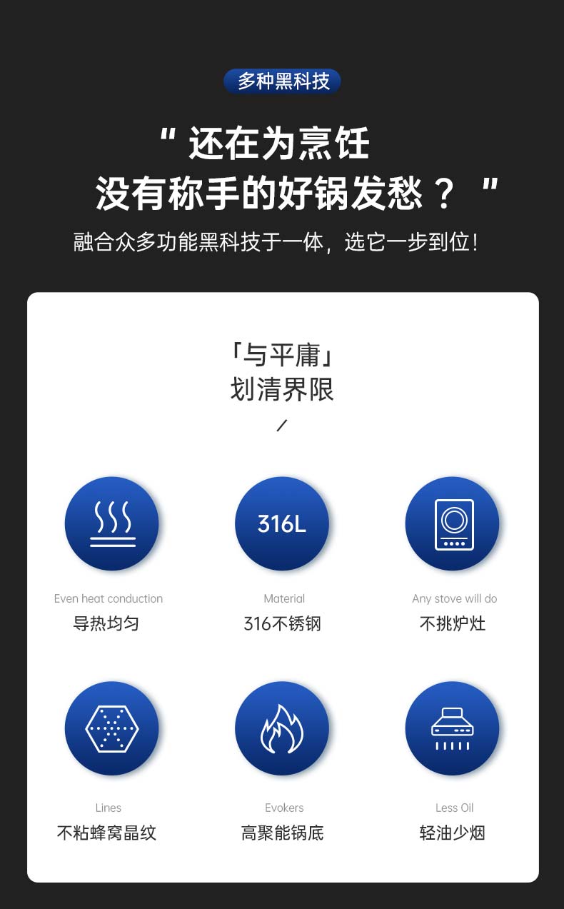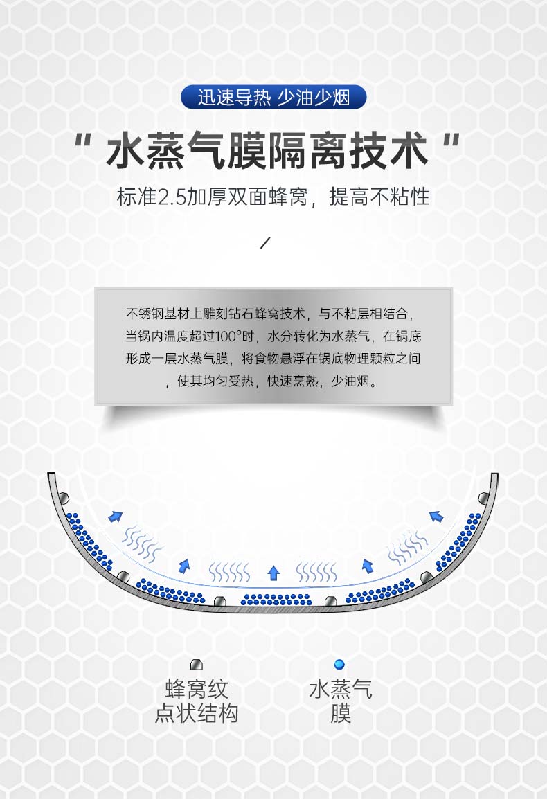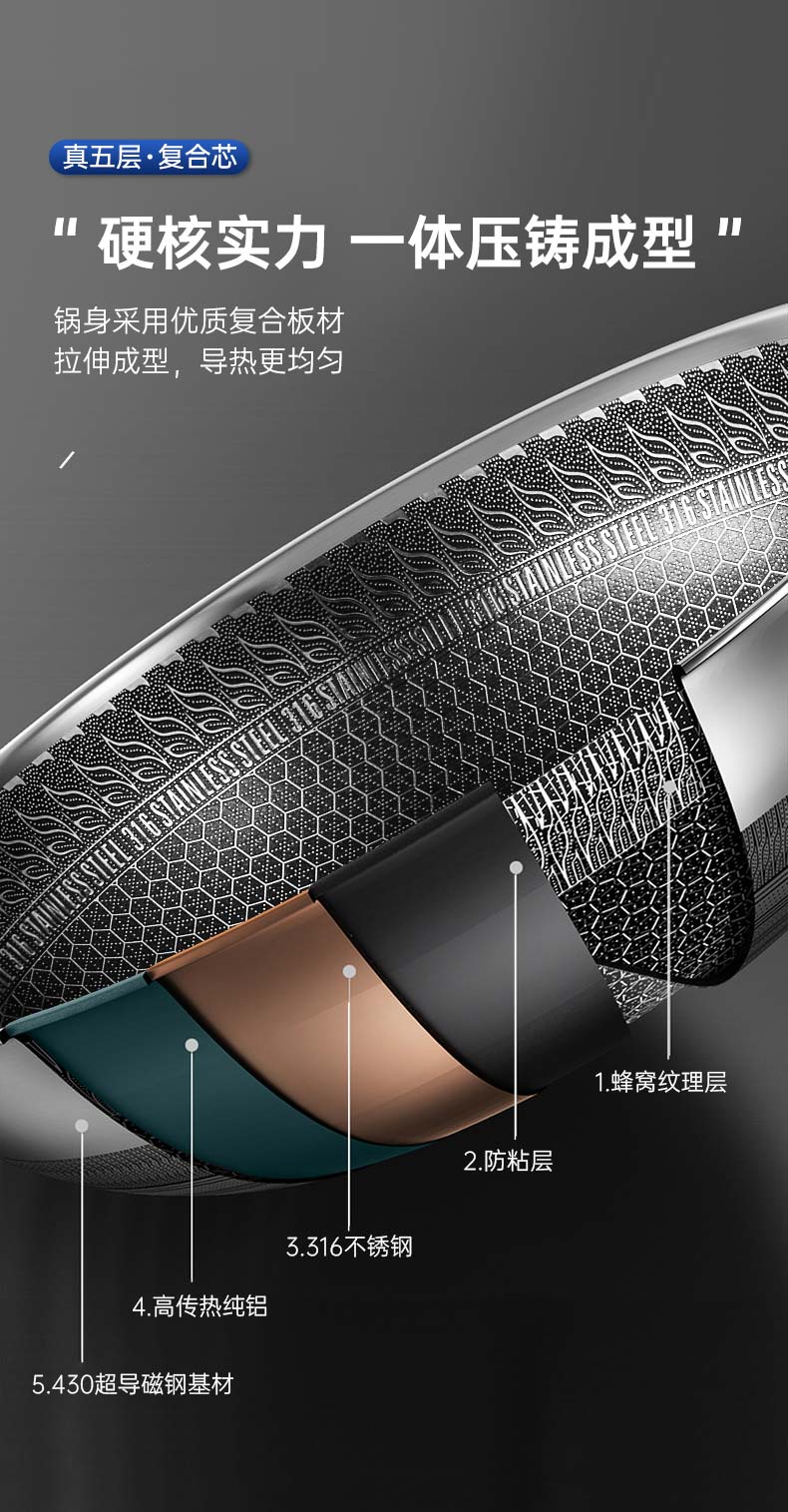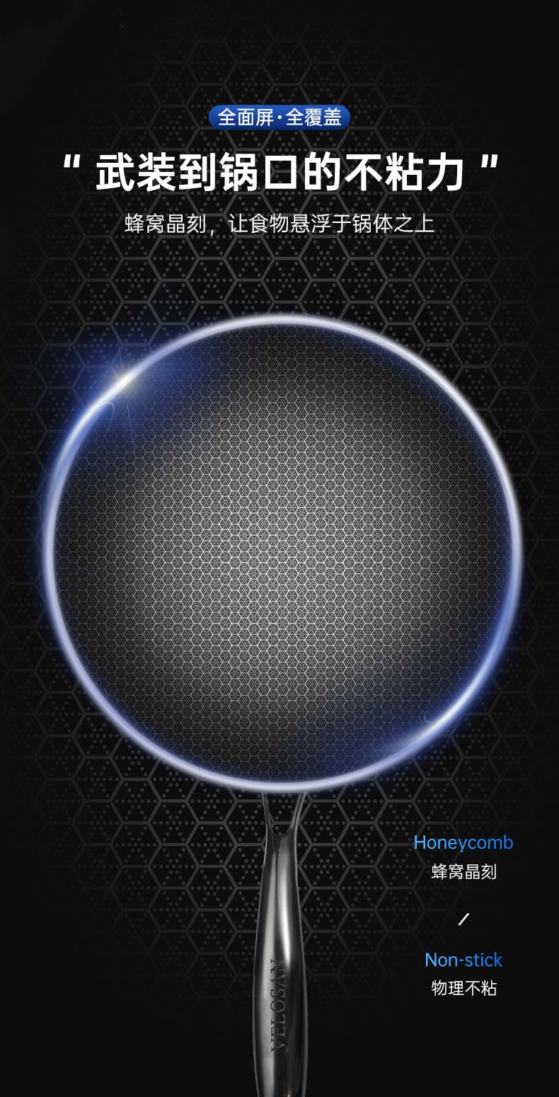 velosan不粘锅炒锅家用316不锈钢蜂窝炒菜锅平底电磁炉煤气灶适用