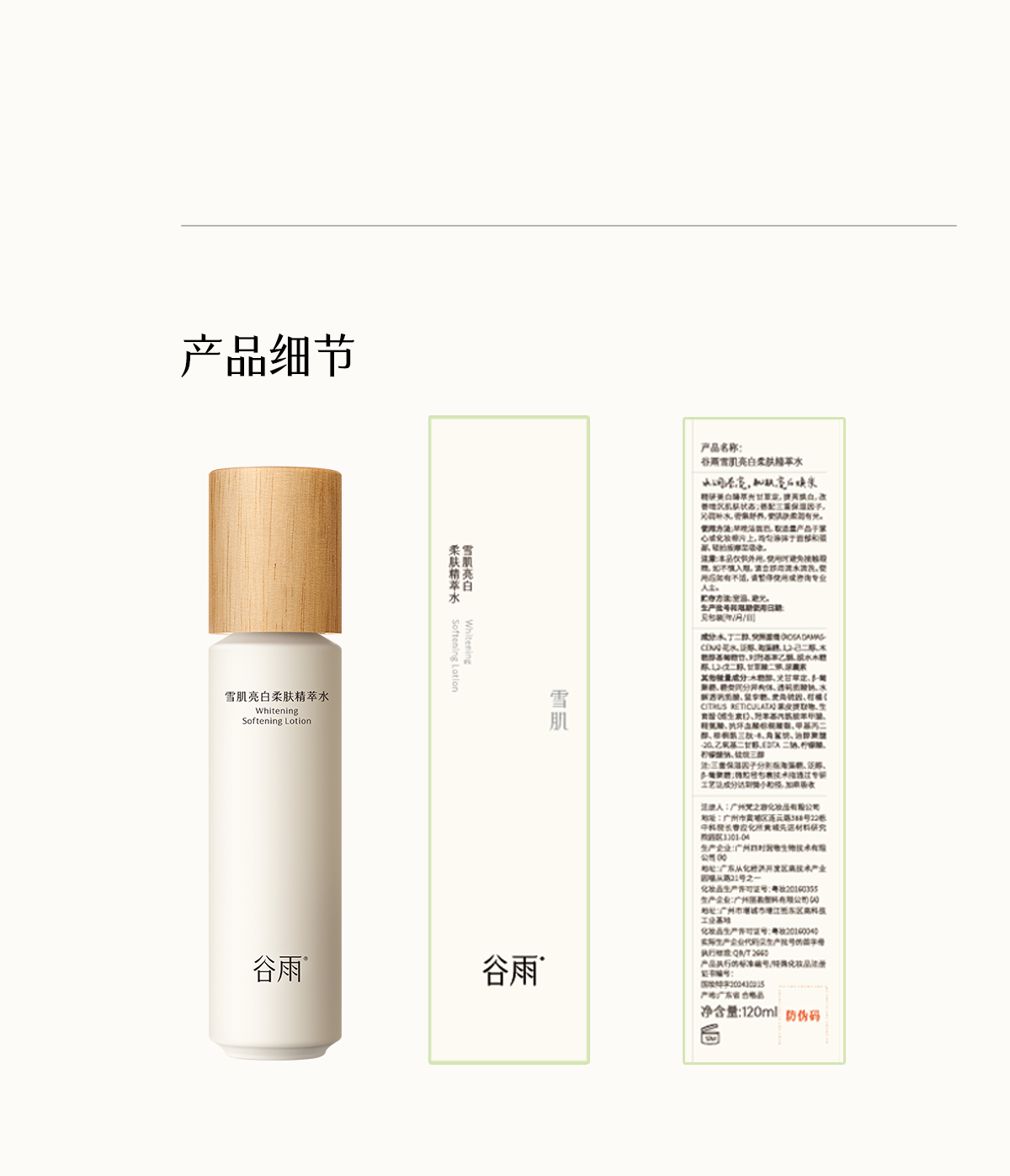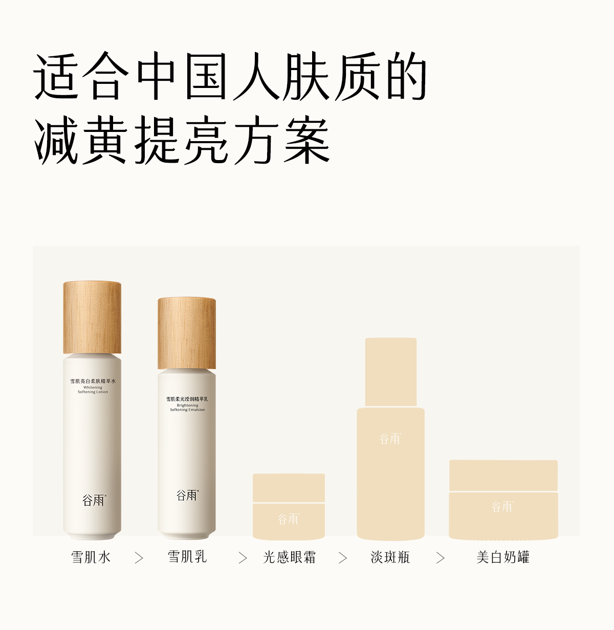- 谷雨,更适合中国人肤质的植萃美白。专研中华珍稀美白植萃光甘草定,深入研究中国人肤质特点,打造中国女性独有的仙气白。