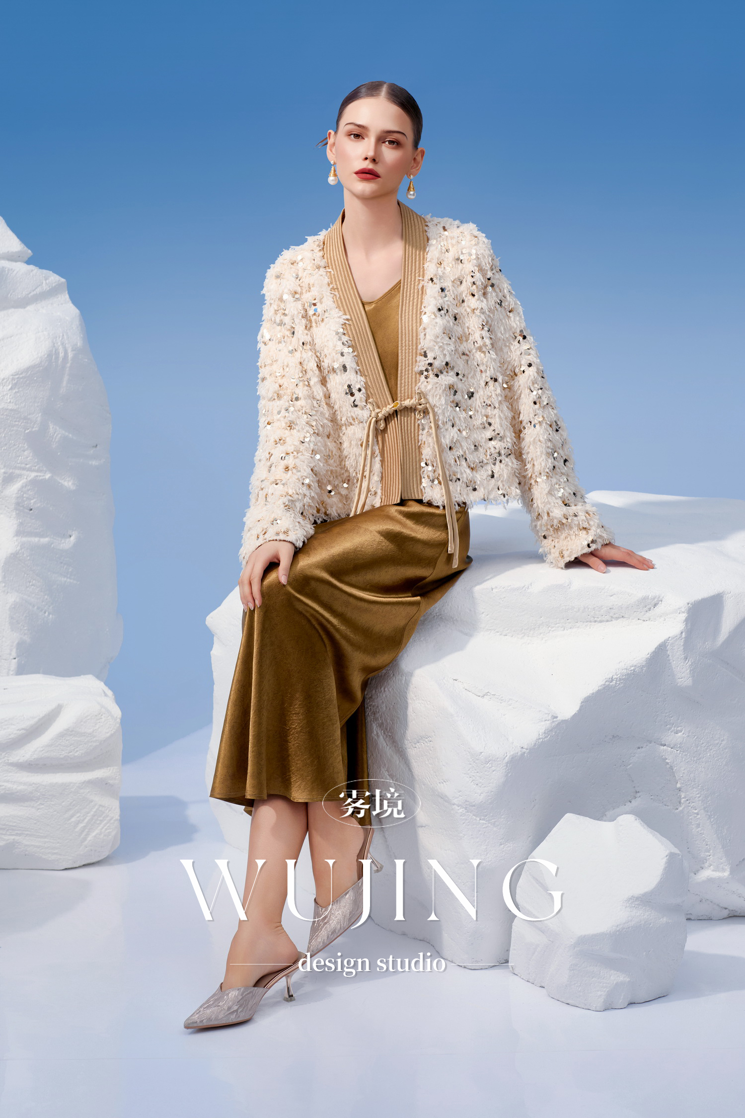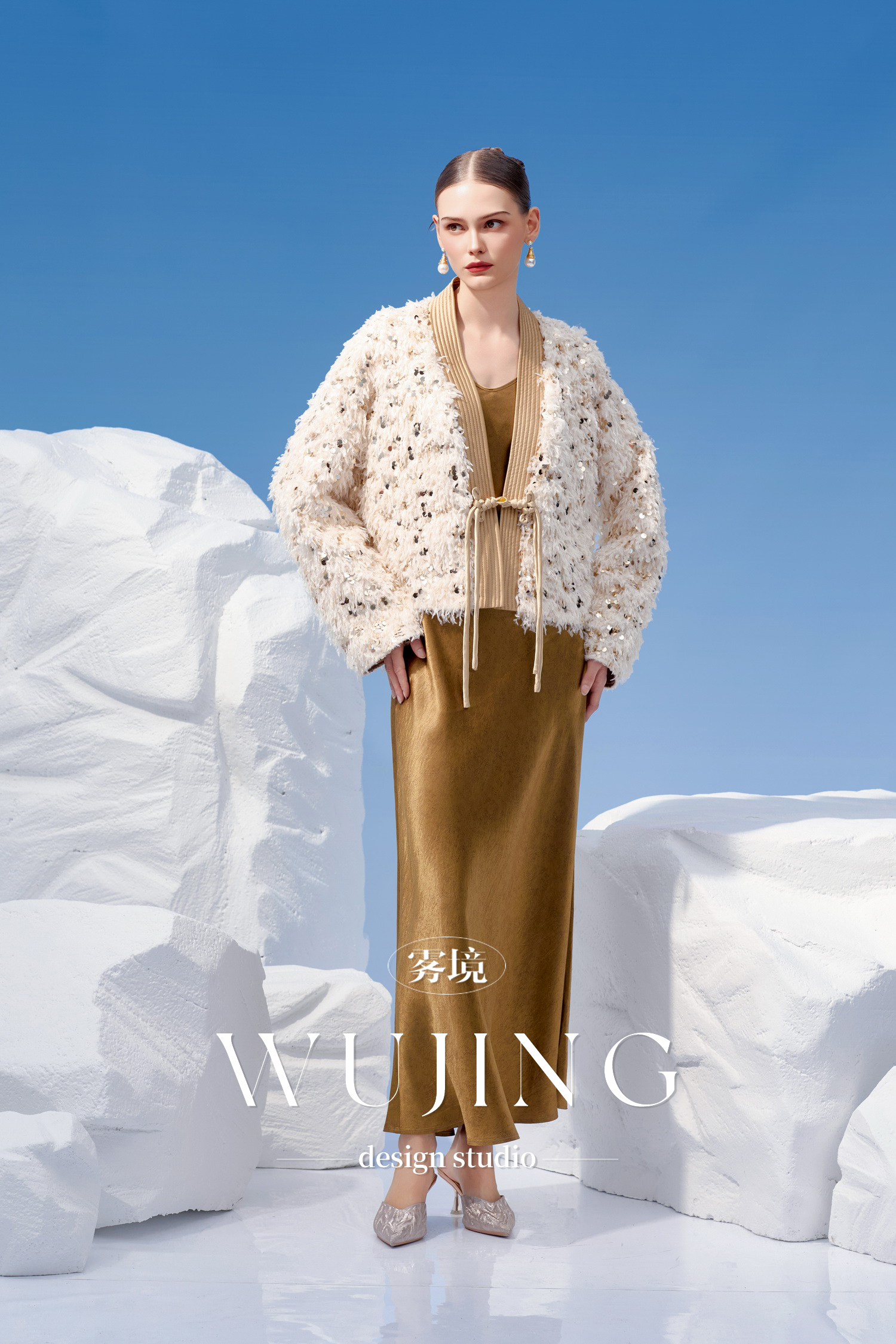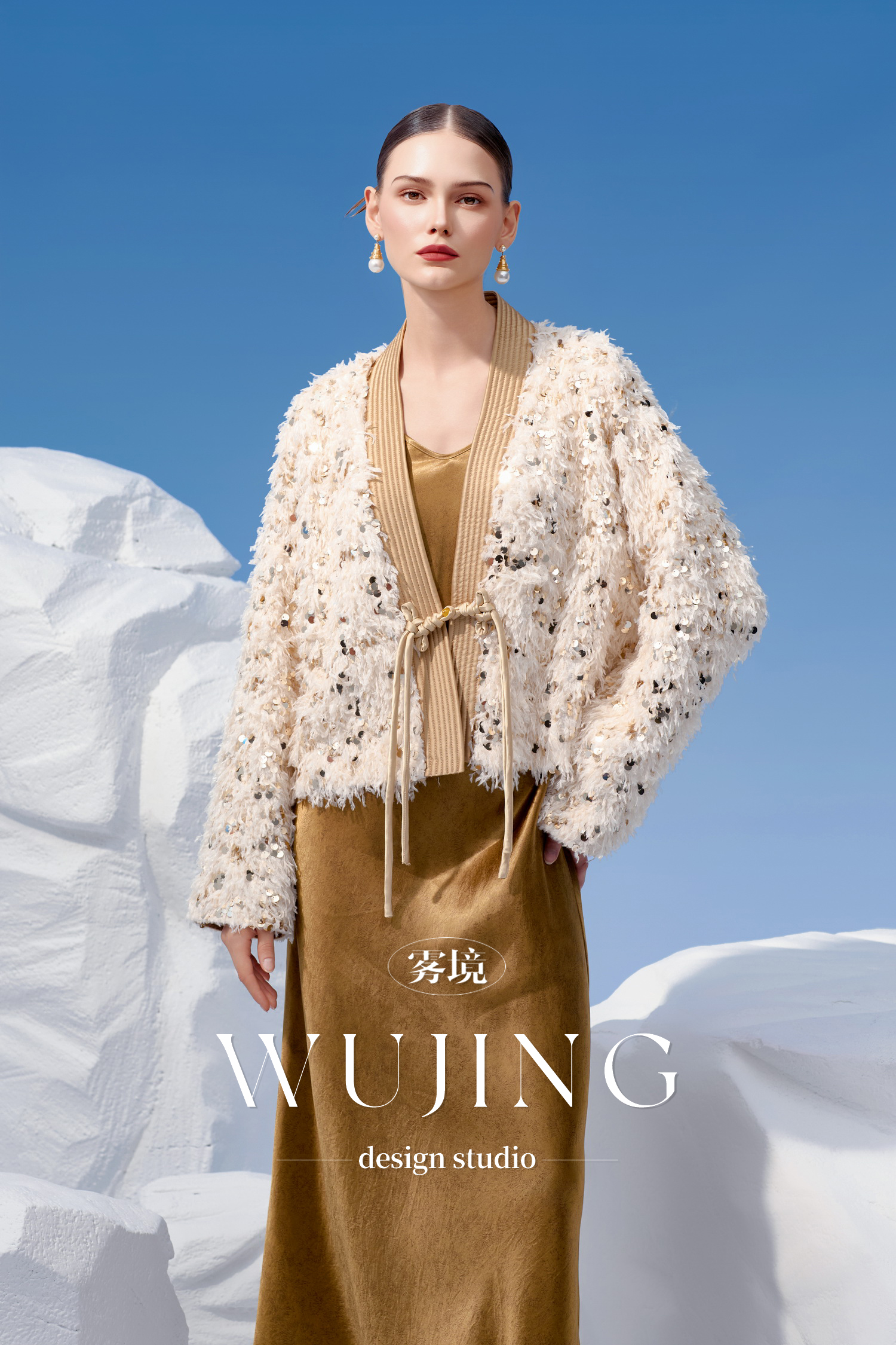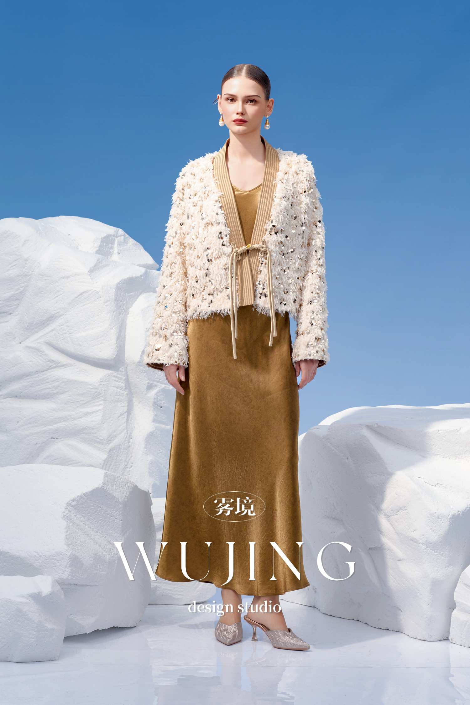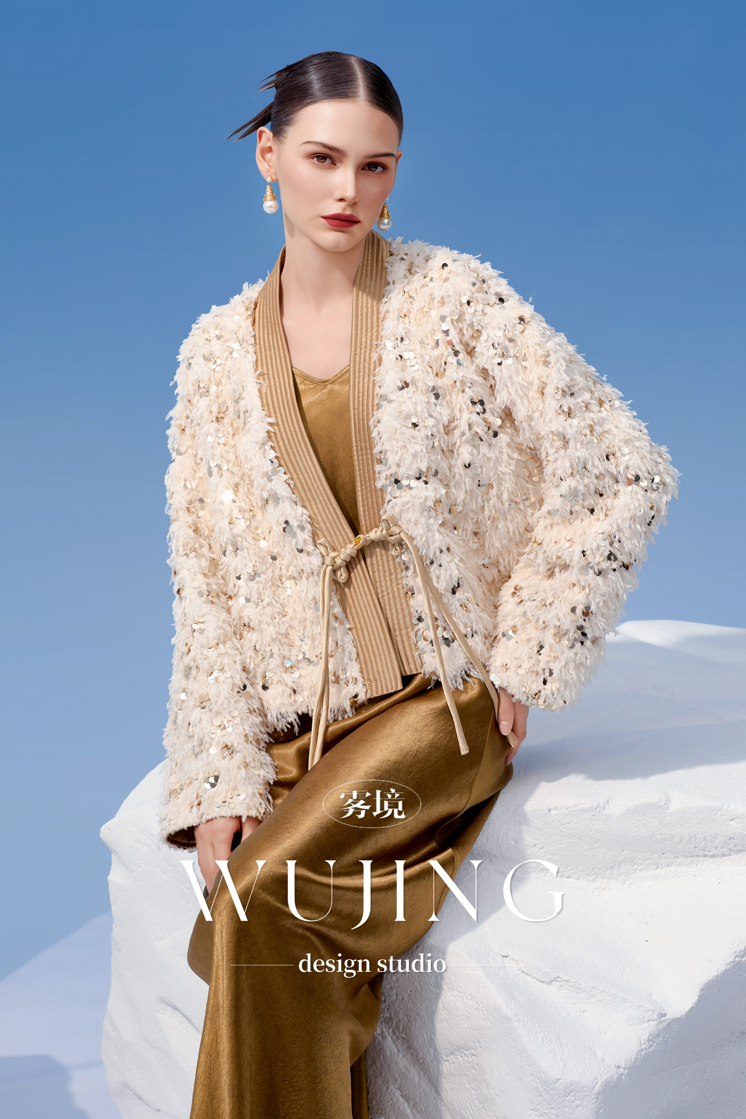4202094 浑金白玉 羽毛亮片立体绣花外套 雾境【不含吊带】