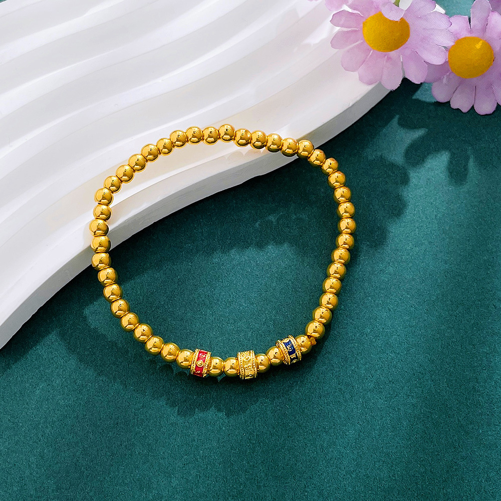 【限时克减150元】足金 #祈福 #低温珐琅 【精品】无氰5D空心六字真言转运筒珠间金珠手链弹力绳手串(珠约3.8-4.2mm)(AK5DSC00016)