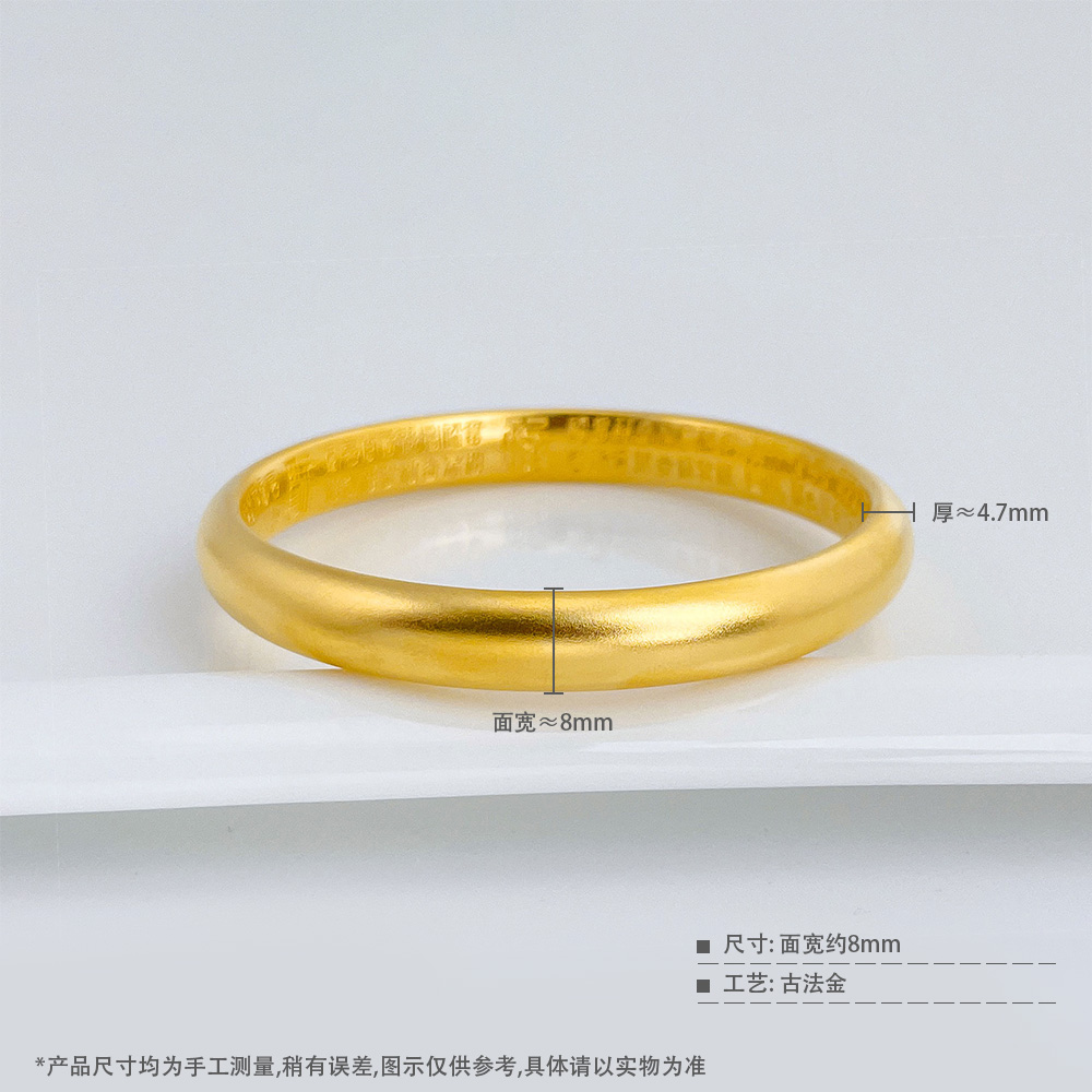 【限时克减150元】磨砂版本 古法固口半实心古法光圈泥鳅背宽面内百福手镯(面宽约7.8-8mm,厚约4.7mm)(ANWZGFSZ00081-1)(预售产品下单后不退款不退货不换货不补差价)