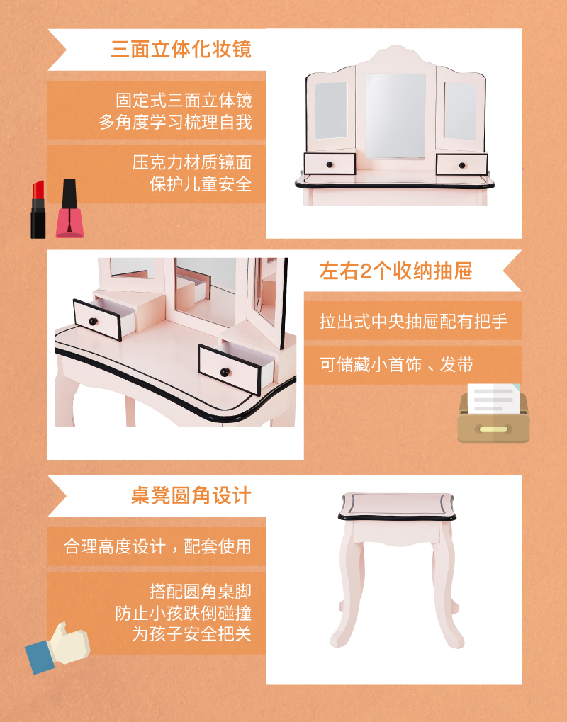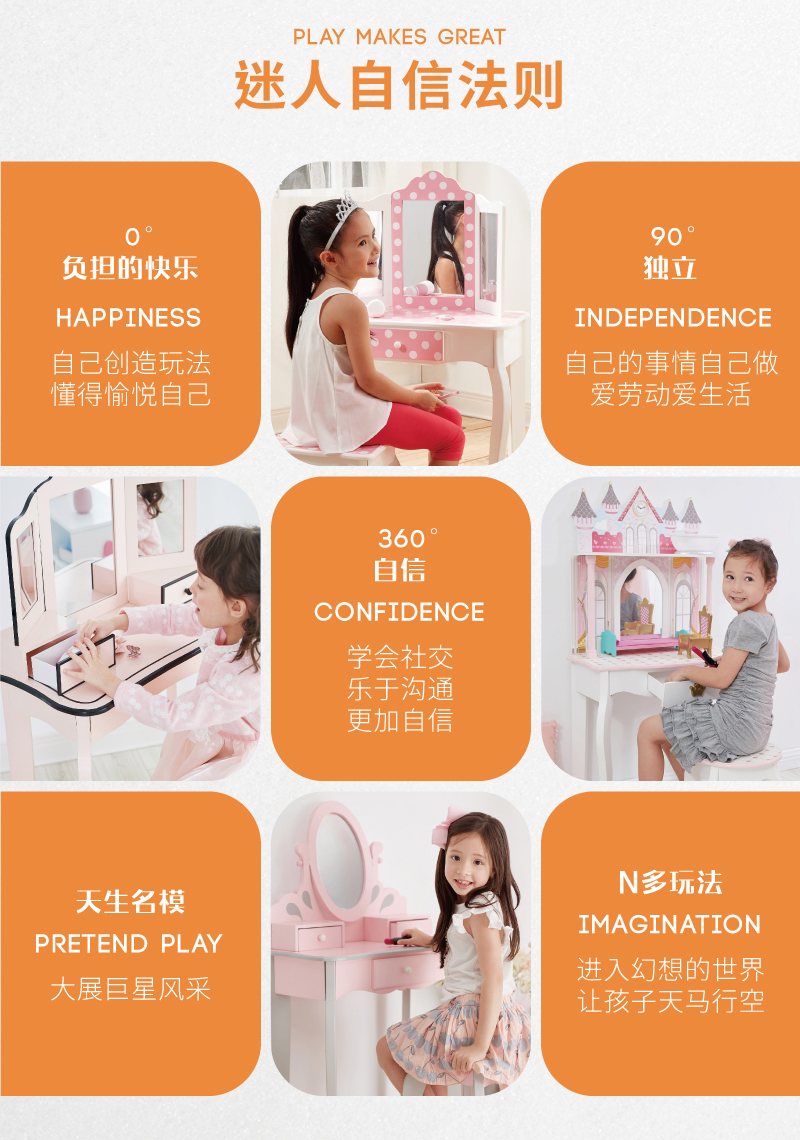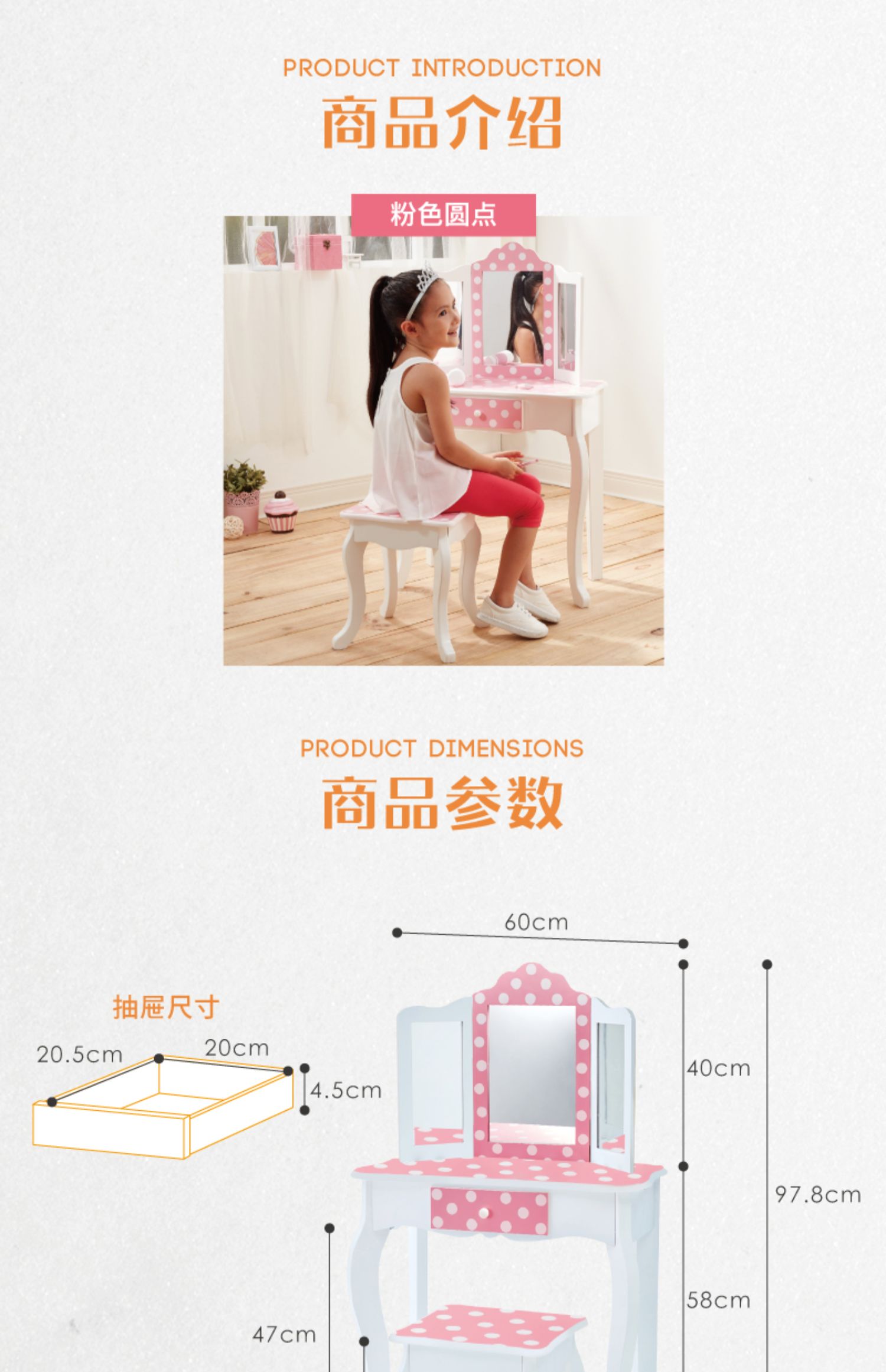 teamson纷朵奇儿童化妆台桌椅组合女孩梳妆台儿童桌椅套装迪生家