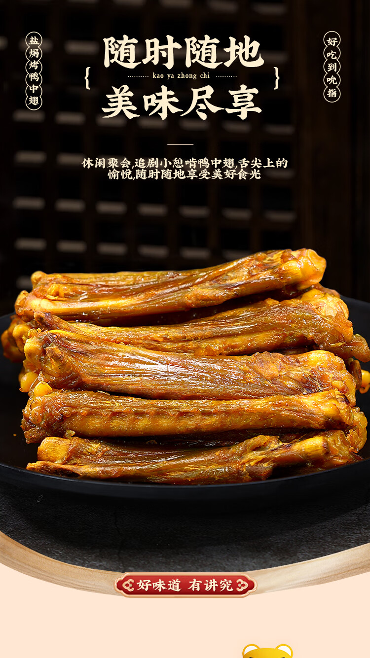 真莊真庄盐焗风干烤鸭中翅鸭翅膀客家广东梅州特产盐局熟食即食肉零食 盐焗味 130g 【风干鸭中翅】微辣