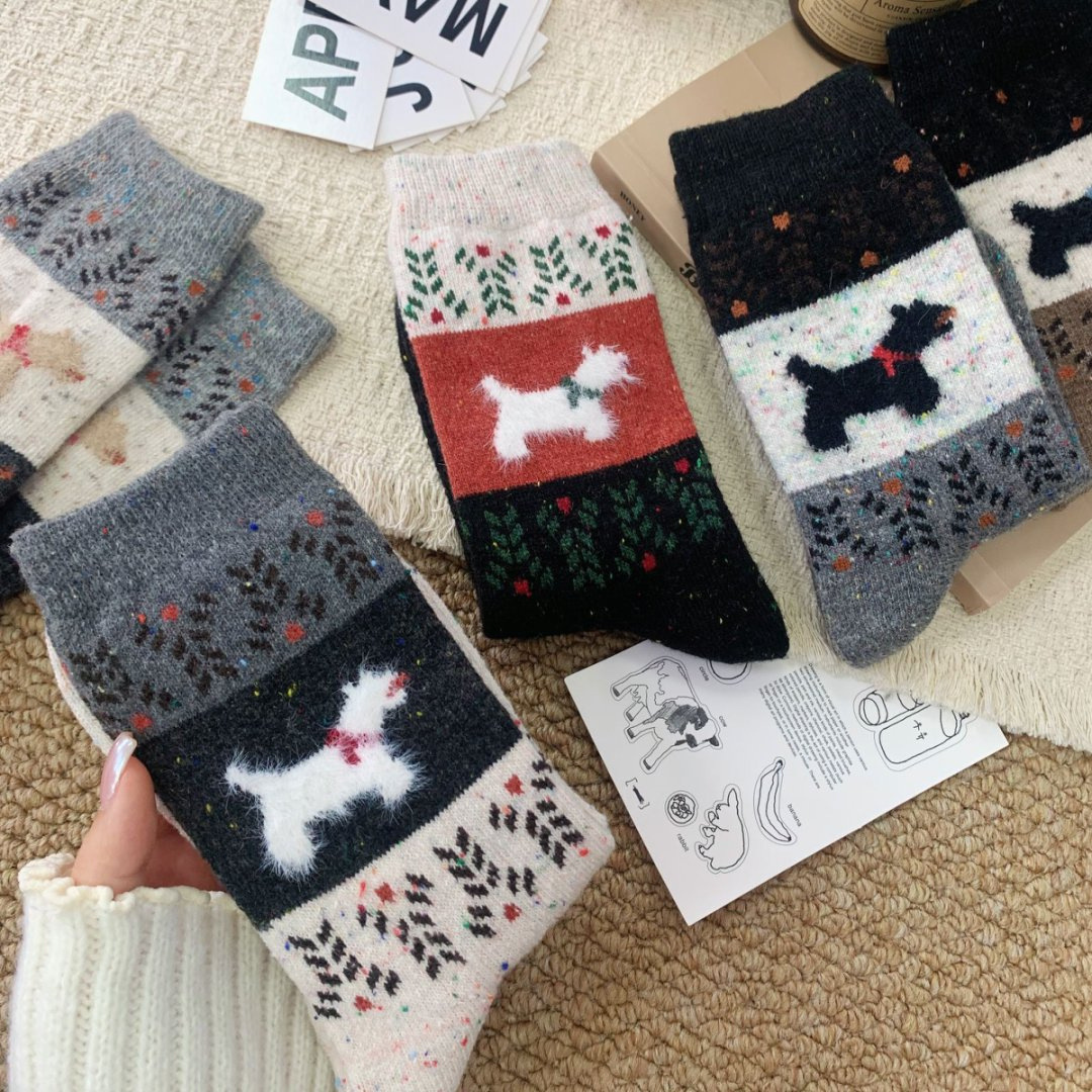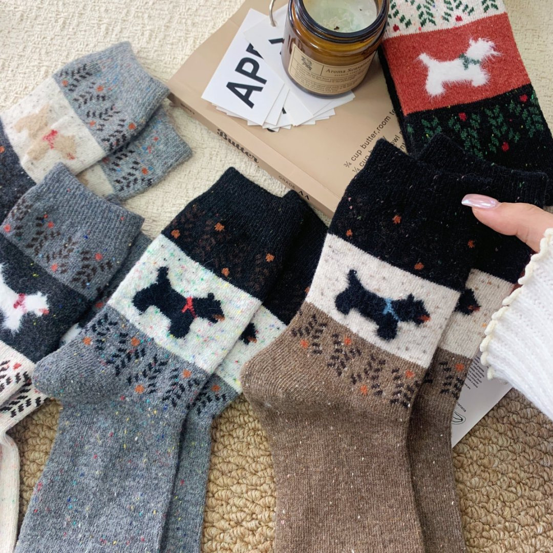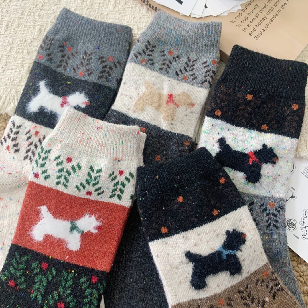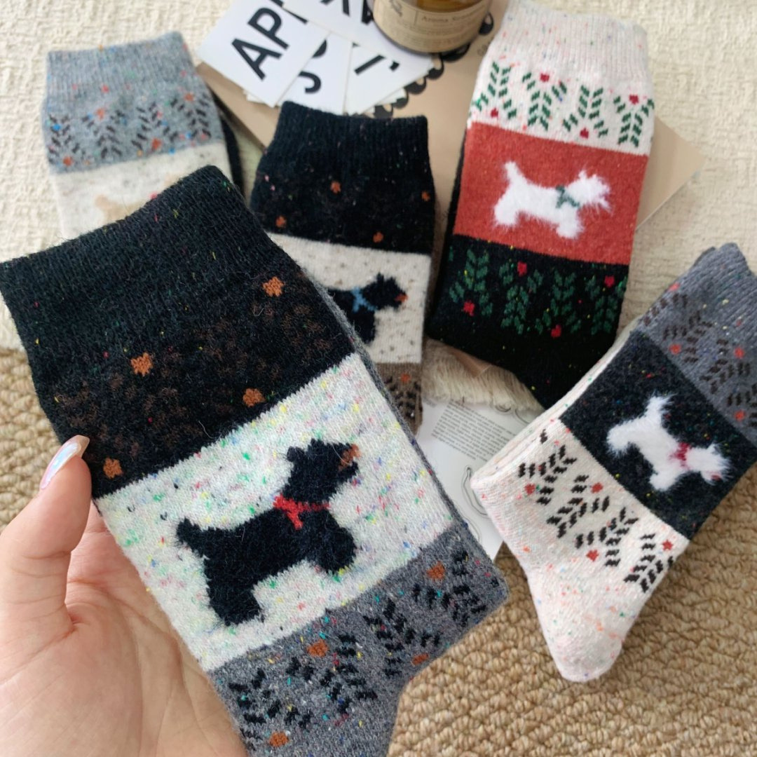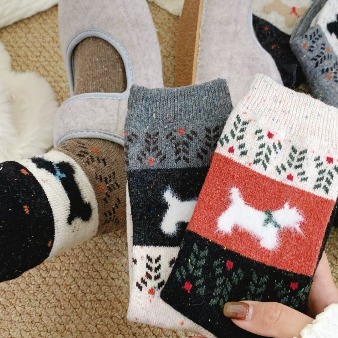 独家🔥清货亏钱剩3千组🚚19.9💰8双💚 高克重【费尔岛小狗袜】不能错过的秋冬浪漫 百搭 暖融融😌图案好特别,自带文艺复古氛围感🙌五种高级配色,一整个慵懒感拉满❗️ 软糯舒适,太适合秋冬了,又厚实又舒服🙌美式复古的感觉!快快艾特姐妹一起来穿❗️搭配各种鞋子都🉑