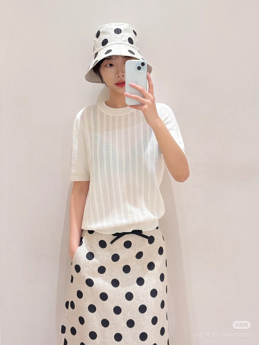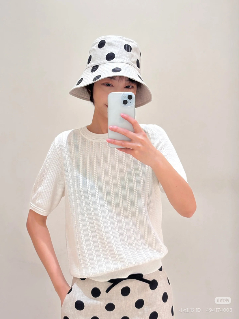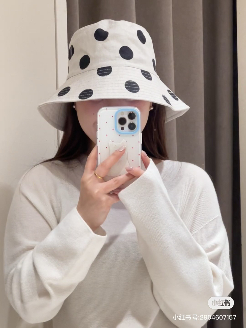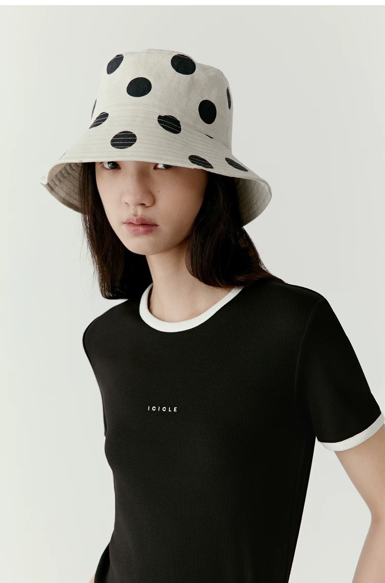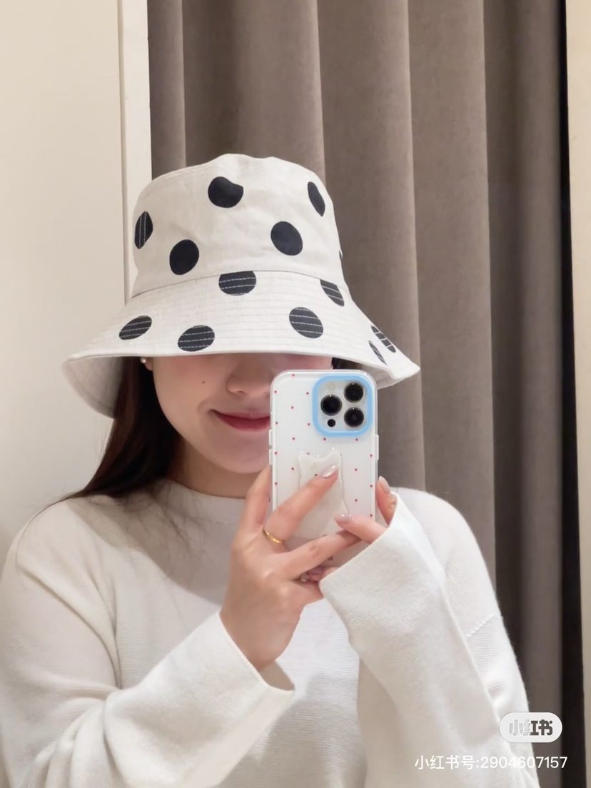 310-7 独家圆正 小禾 波点亚麻渔夫帽