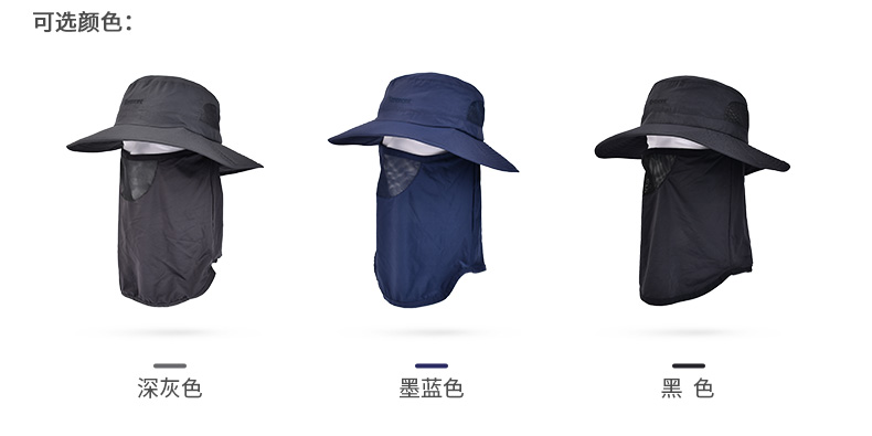 卡蒙户外透气护颈遮脸防晒遮阳帽男夏季防紫外线护脖钓鱼渔夫帽KM-3708