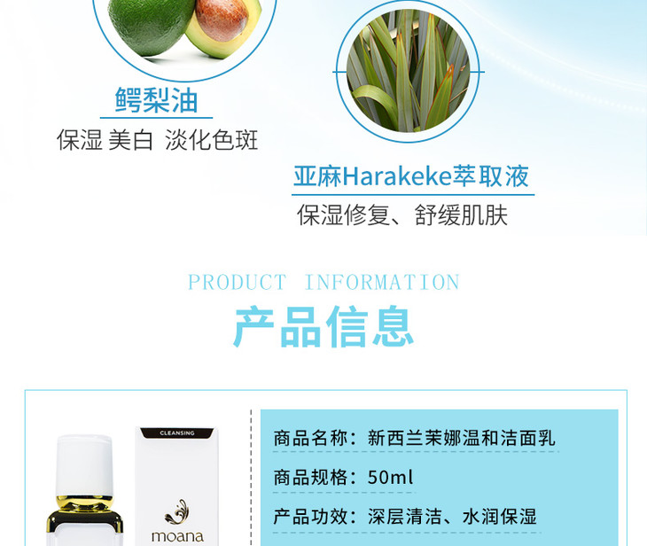 【新西兰直邮】Moana温和洁面乳 洗面奶 50ml(海外版)