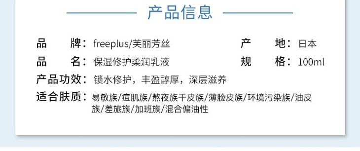 芙丽芳丝freeplus保湿修护柔润乳液100ml