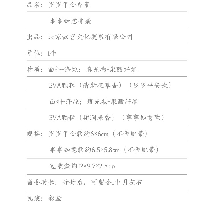 【故宫香囊】岁岁平安事事如意吉庆香囊香包车载衣柜挂件新年礼物