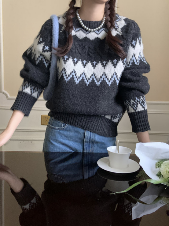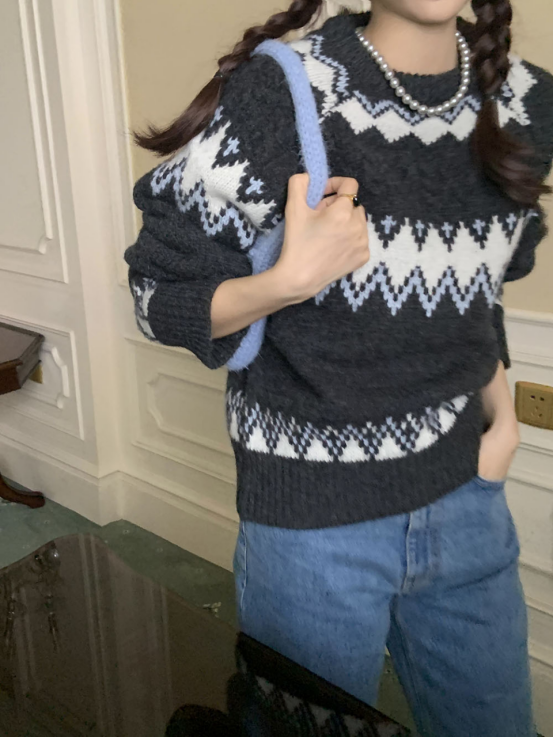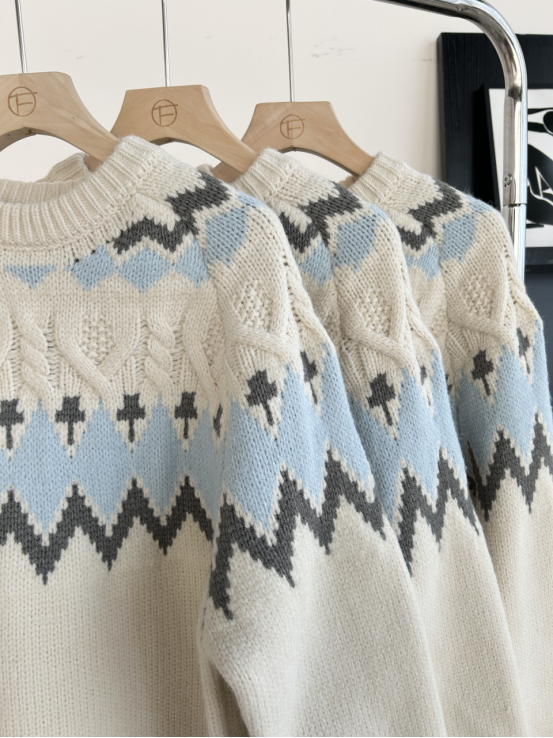 ✨冰川系费尔岛!冬日恋歌😍!【Avann费尔岛撞色提花素雅款毛衣839 】💝治愈蓝灰色自带浓浓北欧氛围!百看不腻!