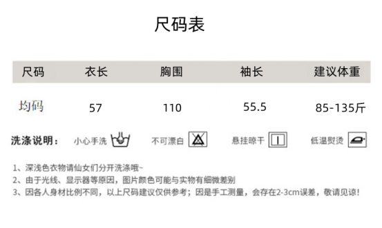 4、由于显示器和拍摄光线等因素会造成些微色差,以收到实物为准。