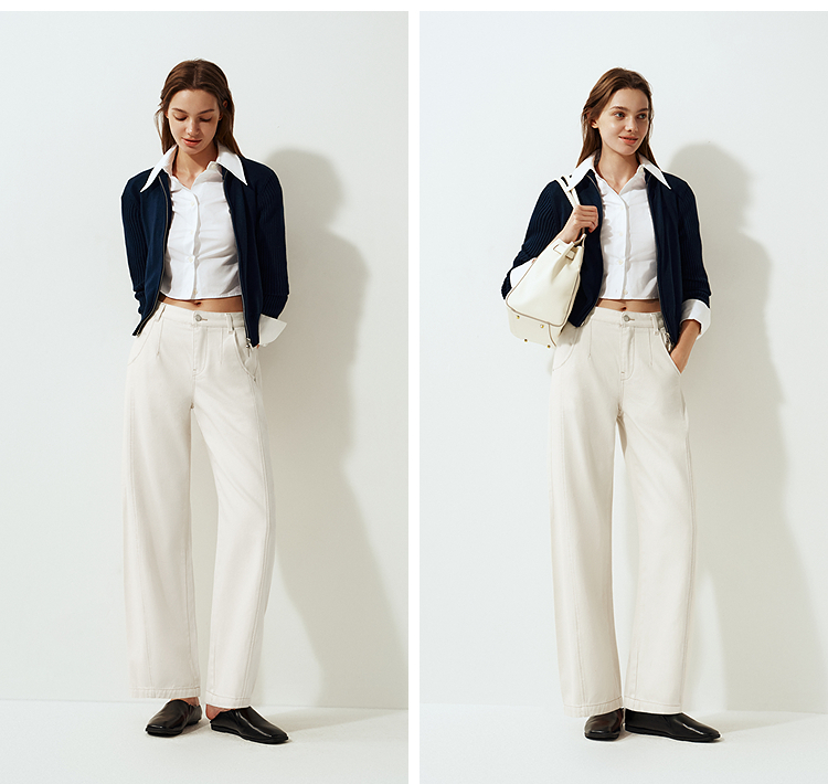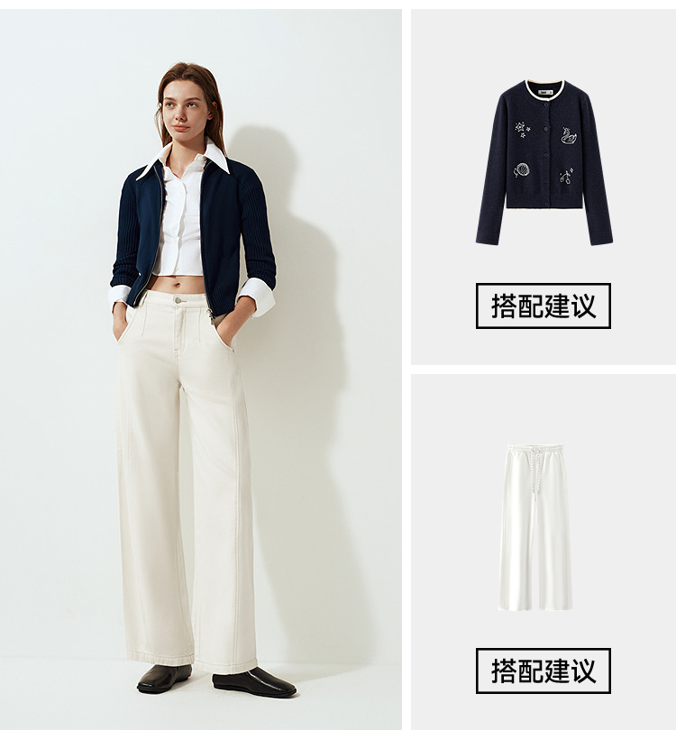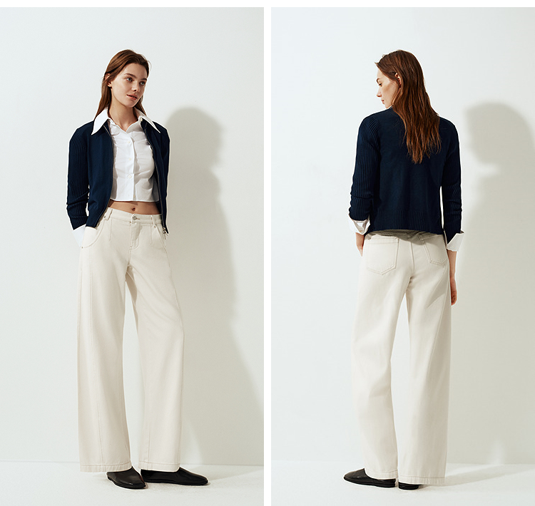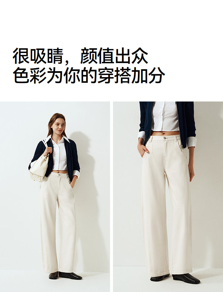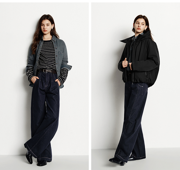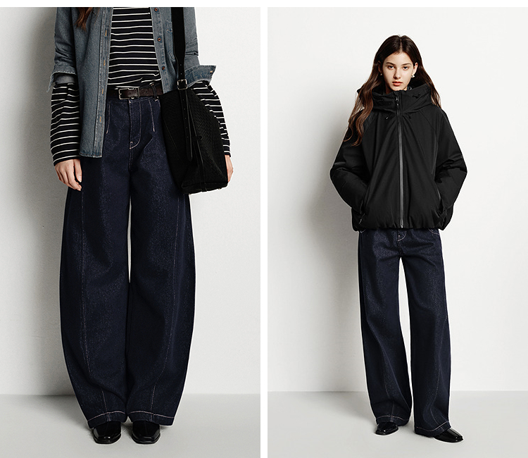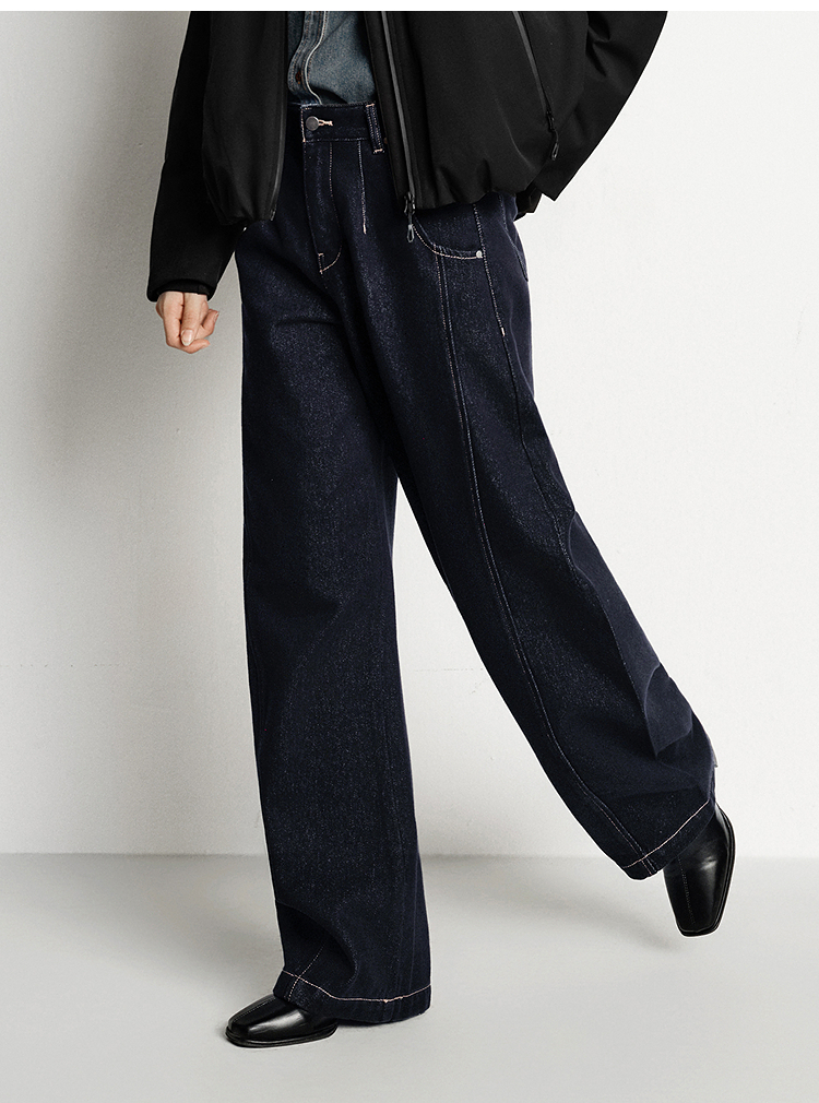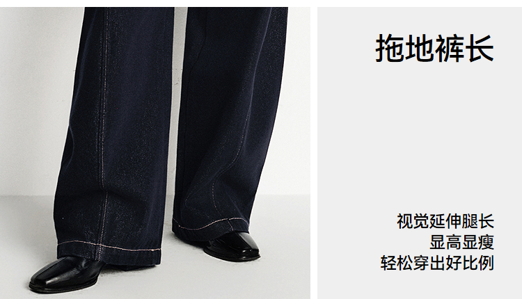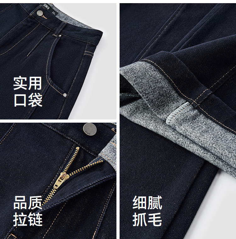森马牛仔裤女冬季宽松分割抓毛拖地裤2025新款酷飒风显腿长弯刀裤