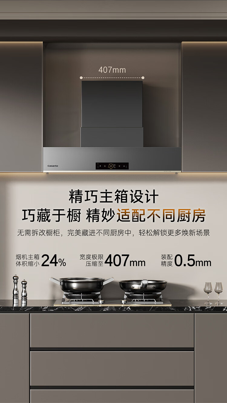 卡萨帝(Casarte)致境油烟机 全嵌升降抽油烟机 变频26风量大吸力 烟灶联动 单烟机CDQ6UD