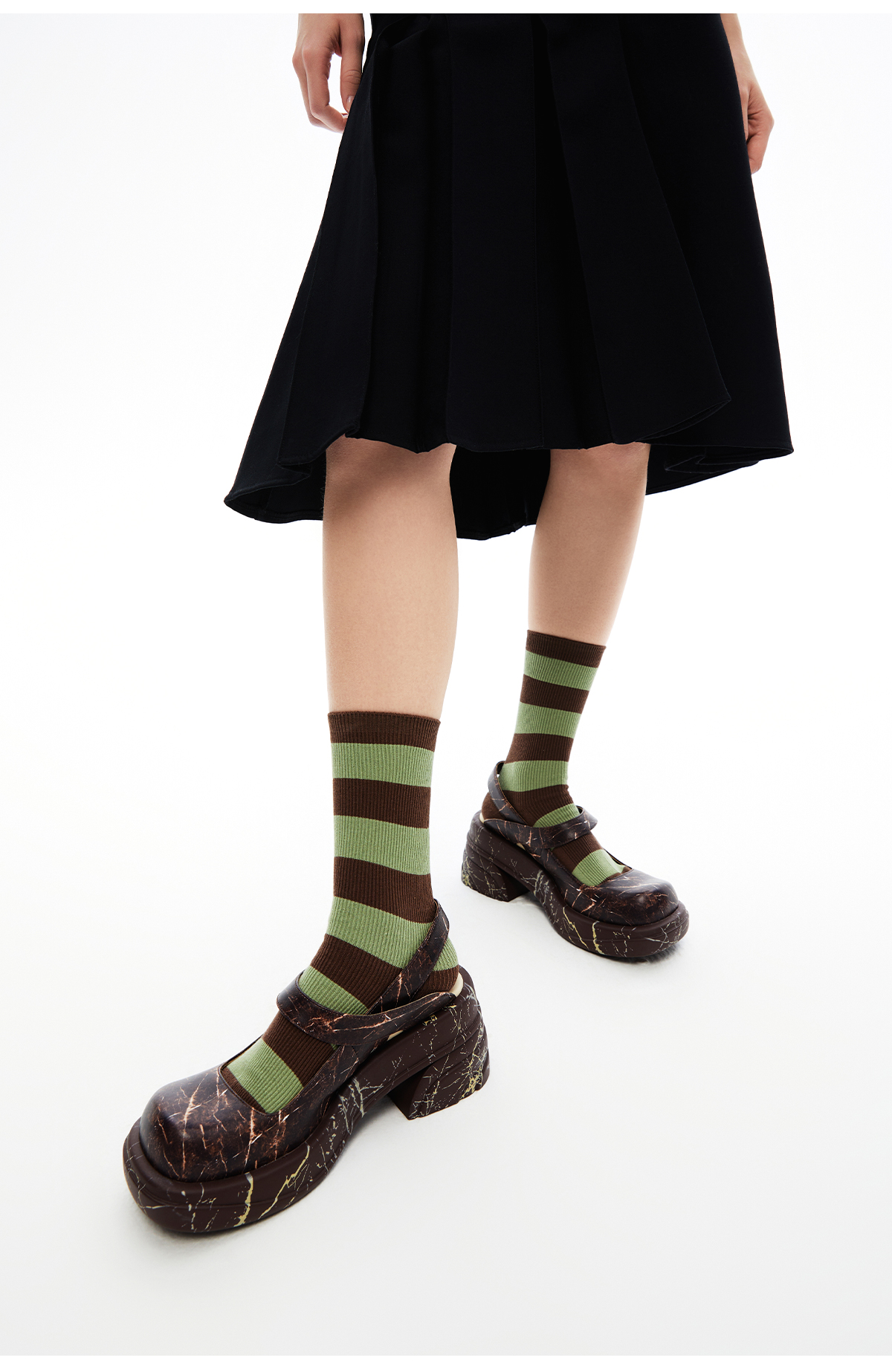 [捡漏价]lost in echo2024春季新款设计师品牌圆头厚底水流纹理粗跟玛丽珍