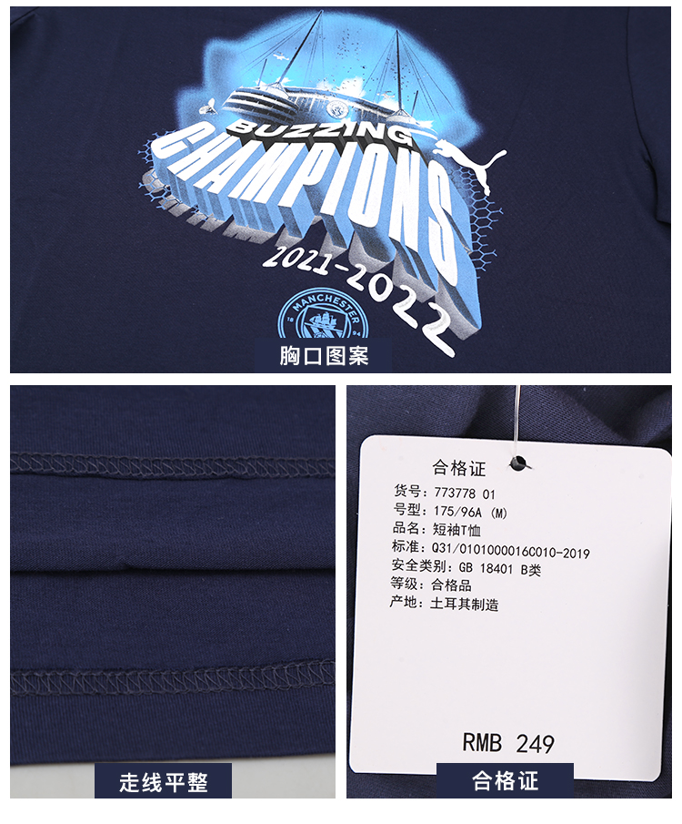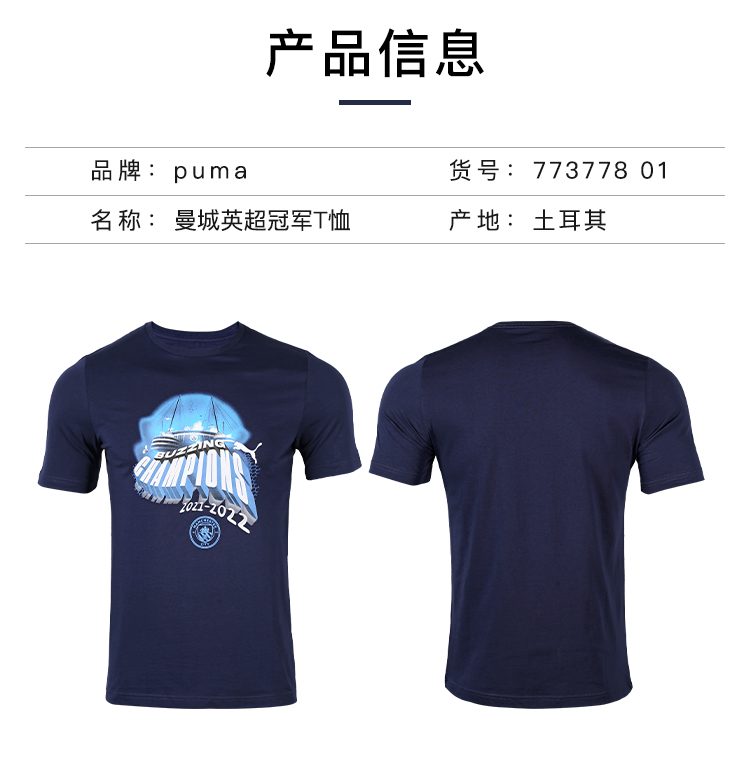 PUMA/彪马 MCFC Winners Tee Mens21/22曼城英超冠军T恤77377801