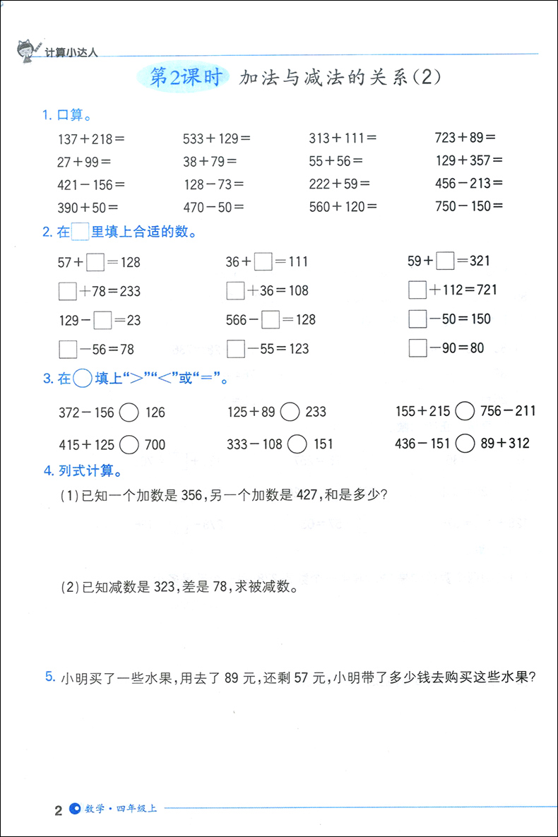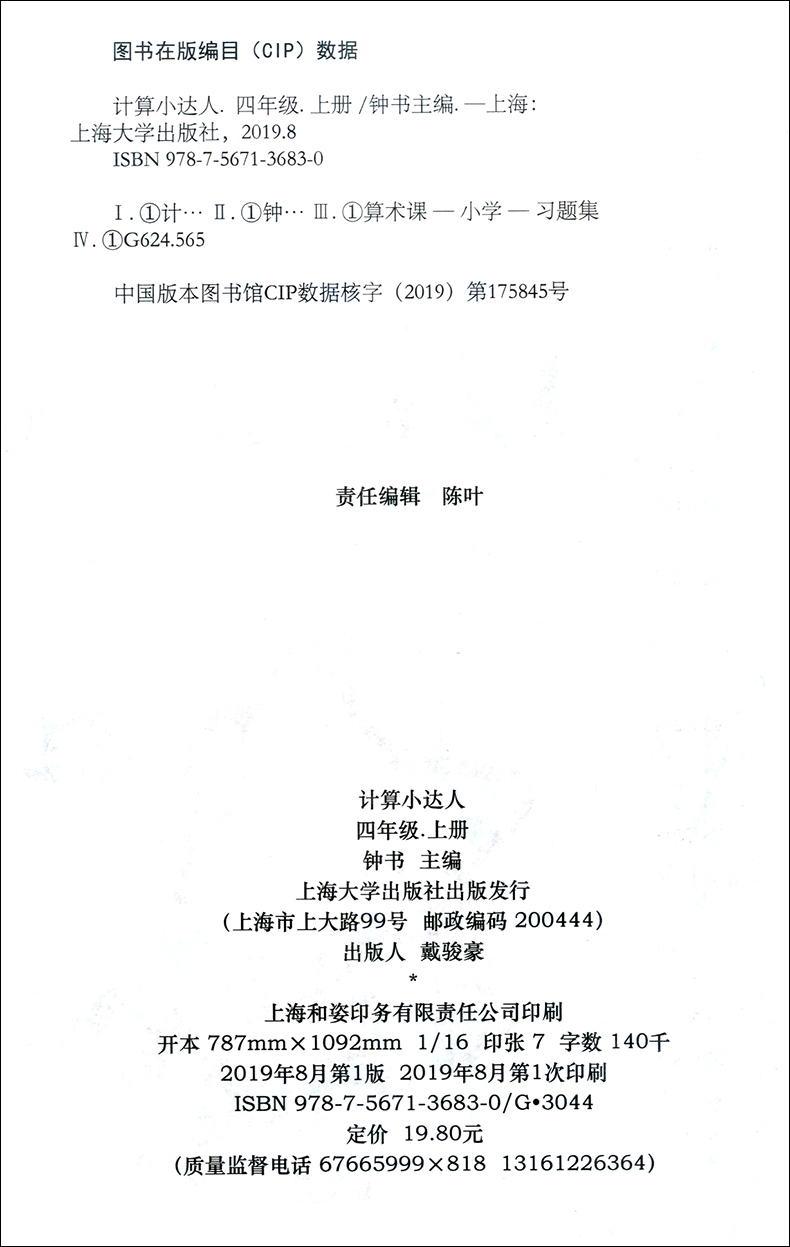 钟书金牌 计算小达人 数学 4年级上册/四年级第一学期 小学数学口算应用课外习题练习辅导教材教辅书目 上海大学出版社