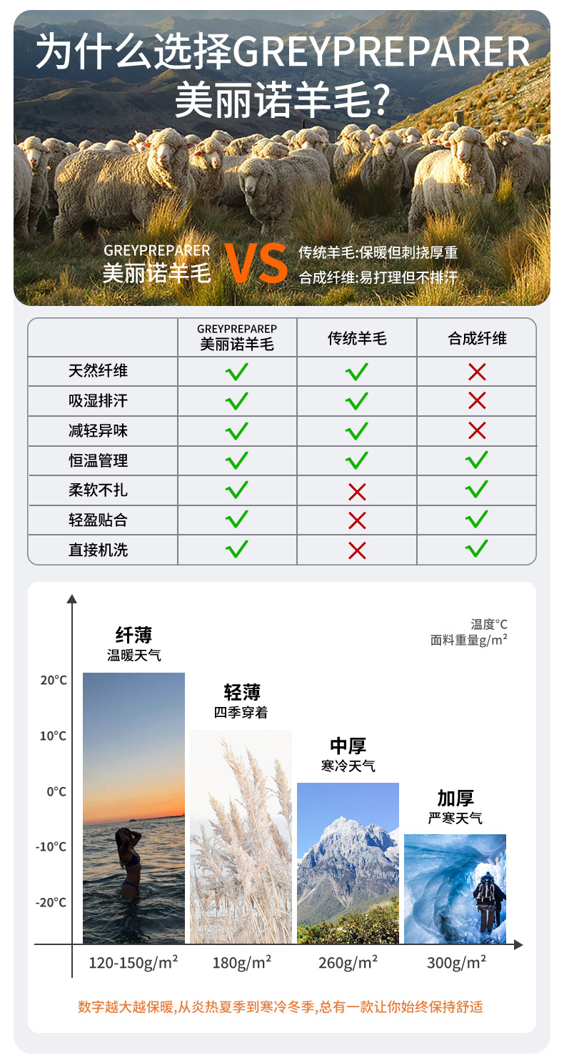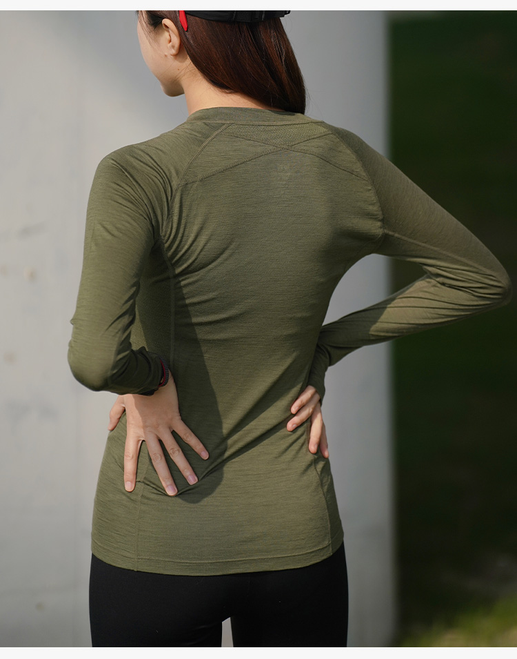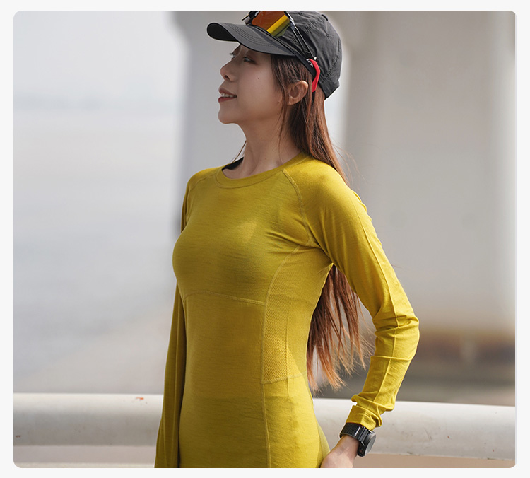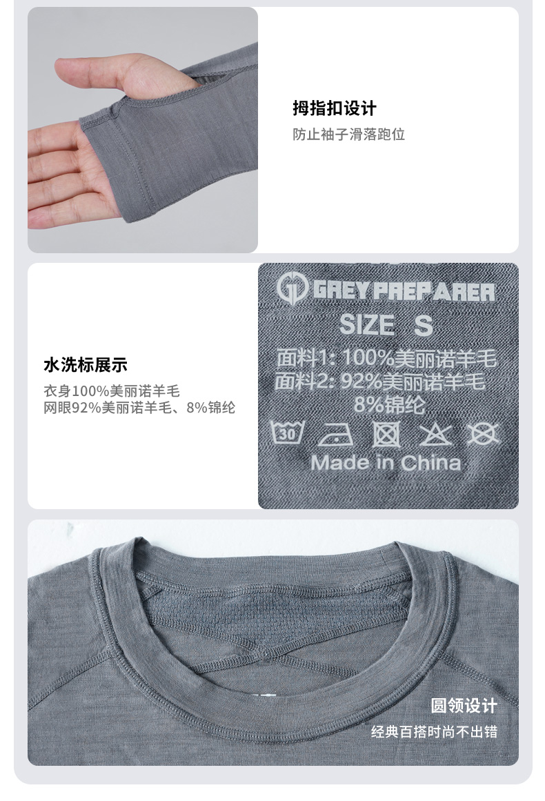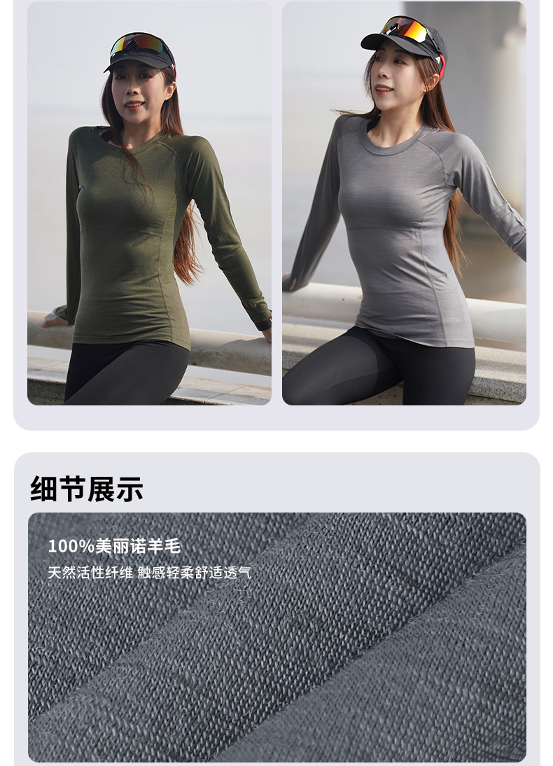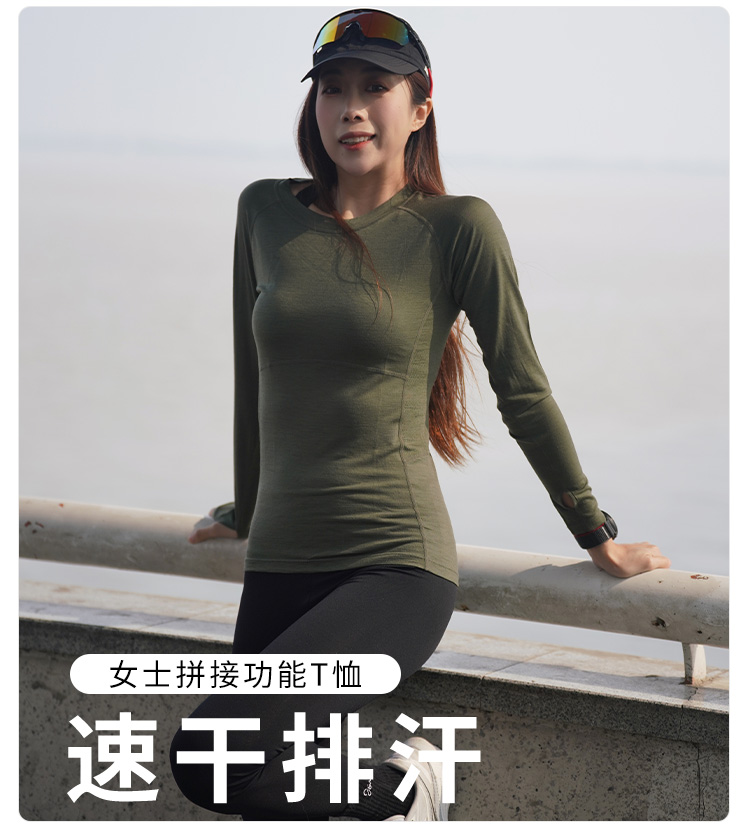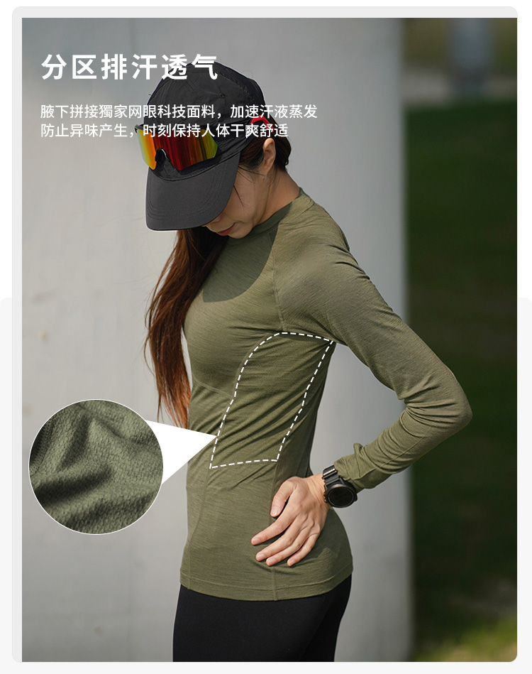 灰壳女款美利奴羊毛速干衣160gsm美丽诺徒步登山内衣网眼拼接长袖