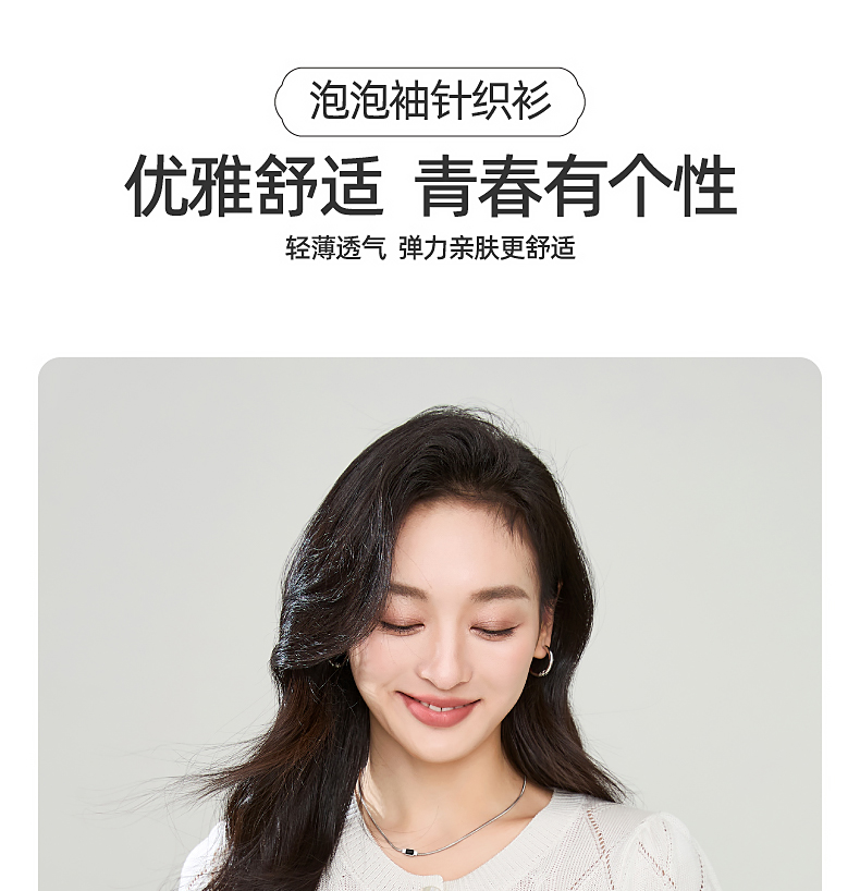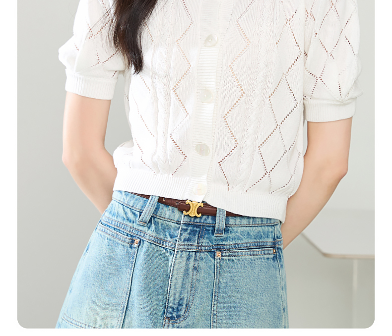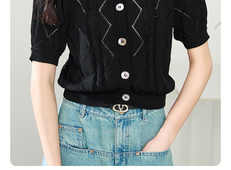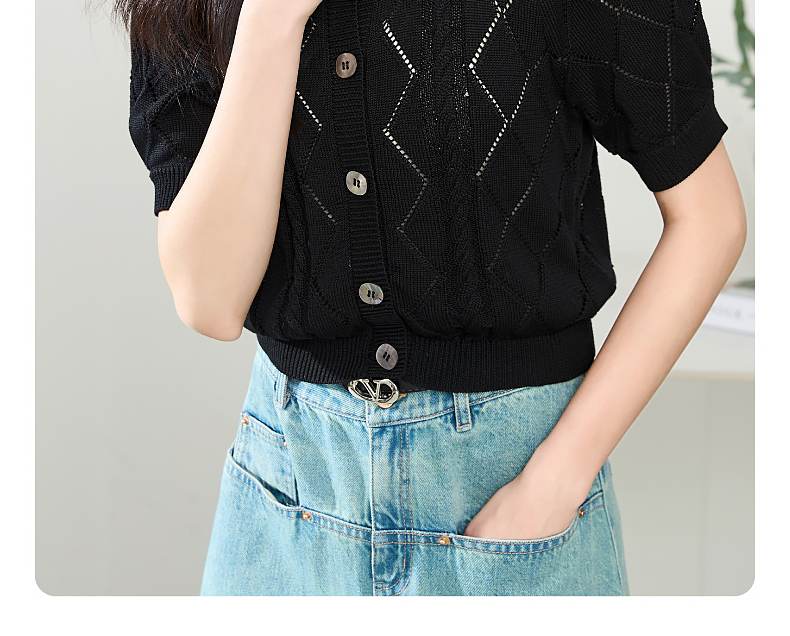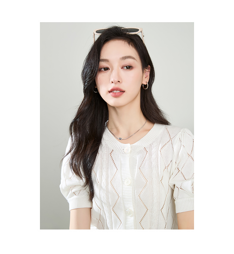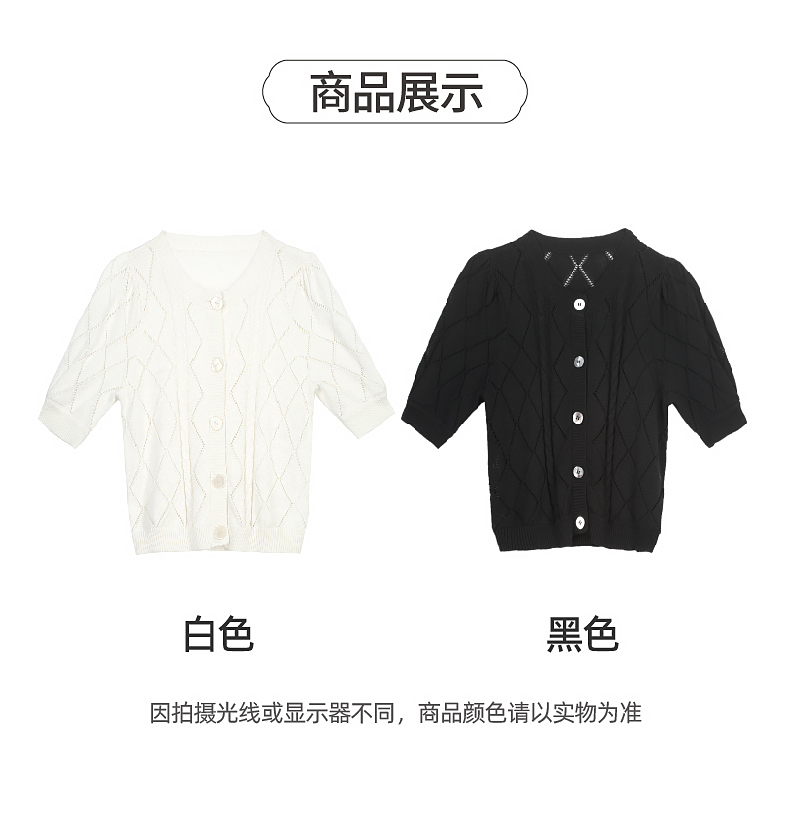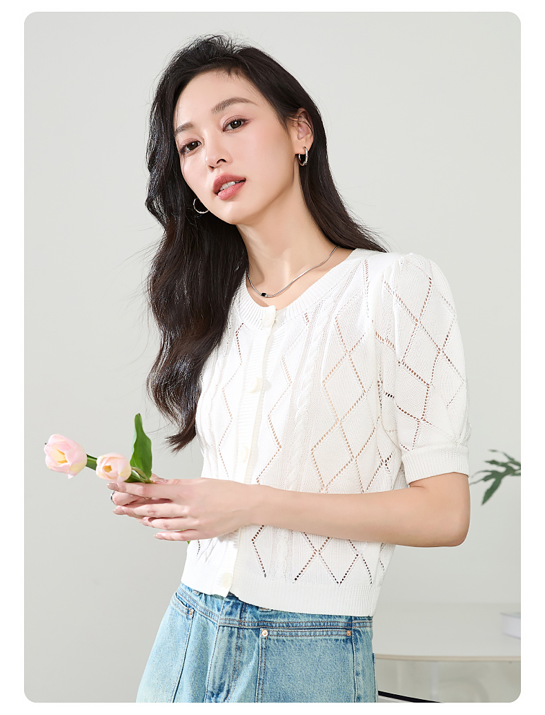 逸阳莱赛尔镂空泡泡袖针织开衫女2024夏新款轻薄透气短袖上衣3851