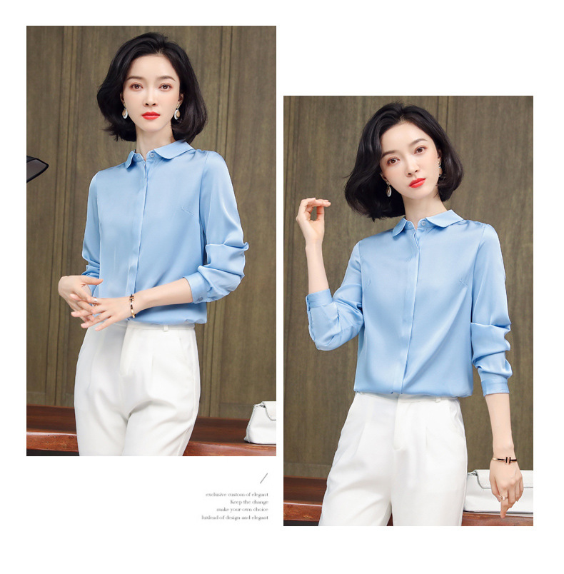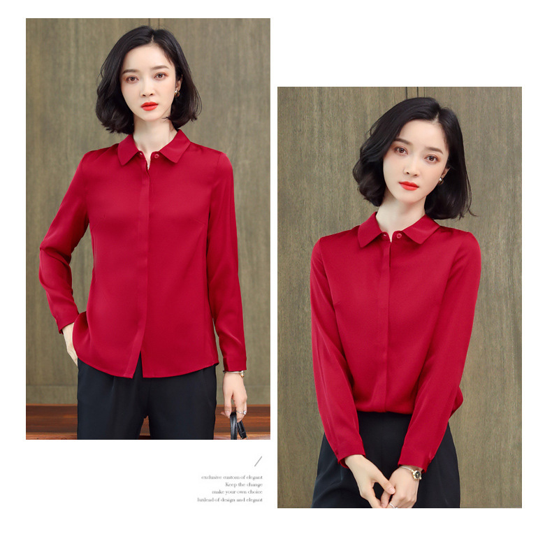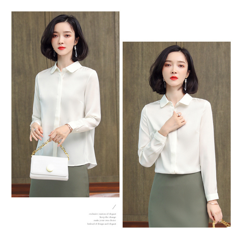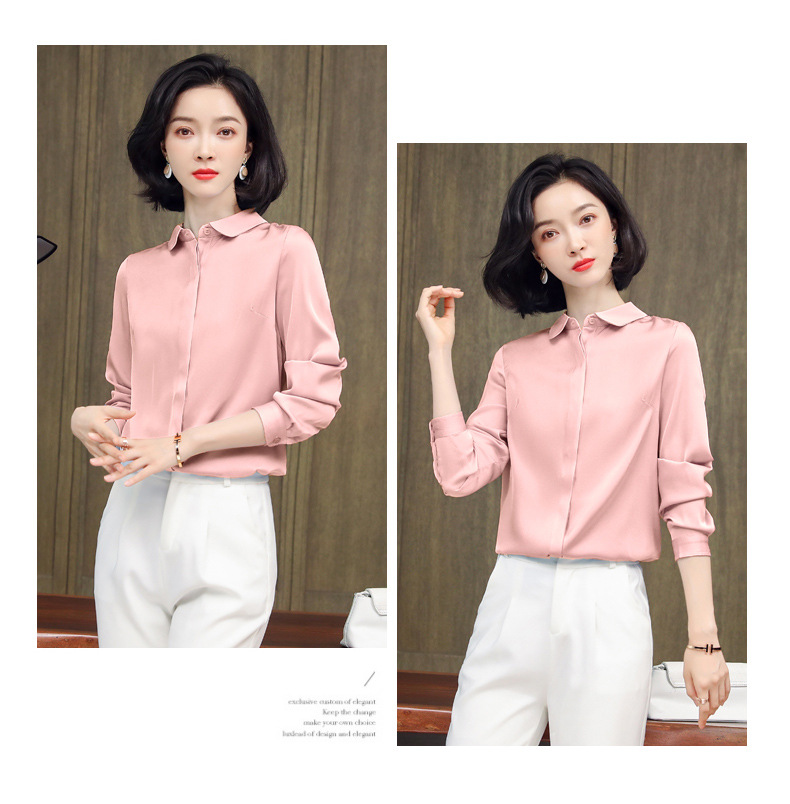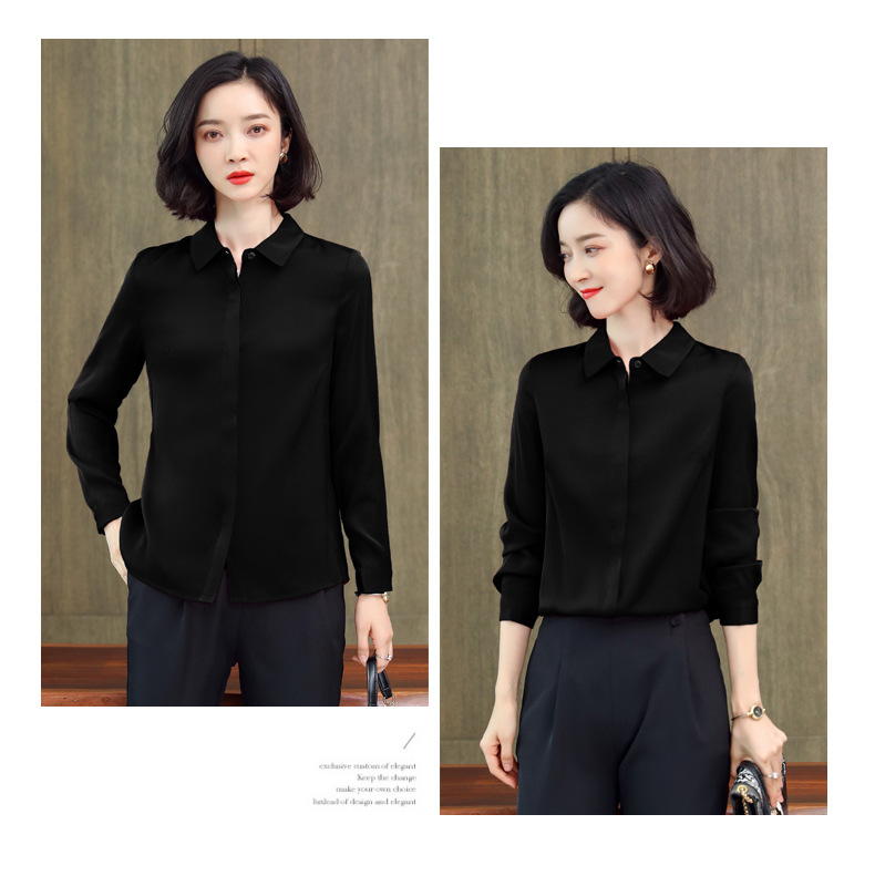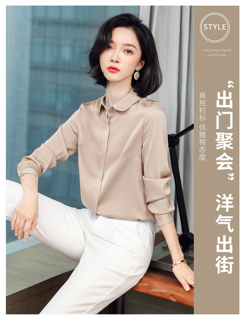 纯色气质真丝衬衫女秋季新款高端百搭气质设计感桑蚕丝衬衫
