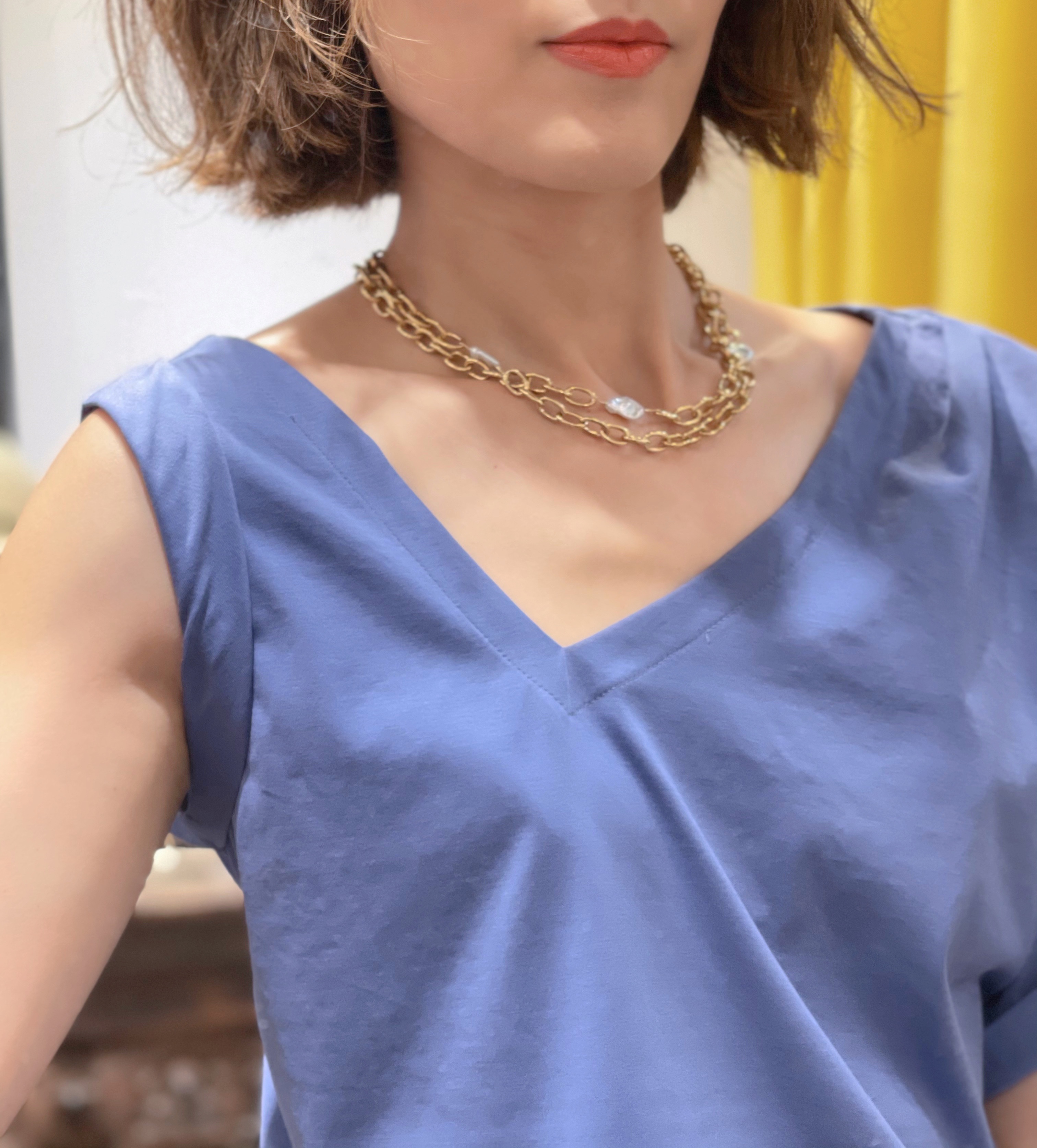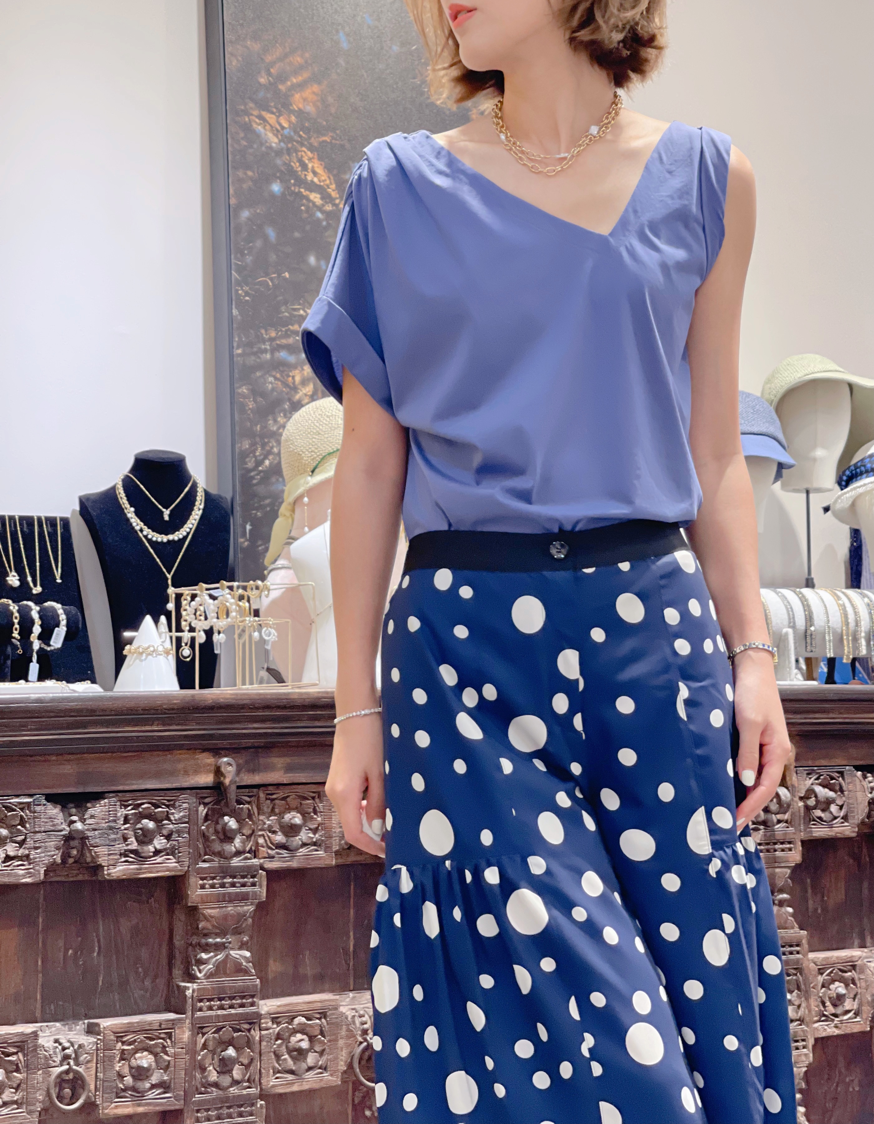 TYNVIE 单边短袖不对称T恤-牛仔蓝