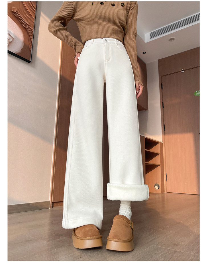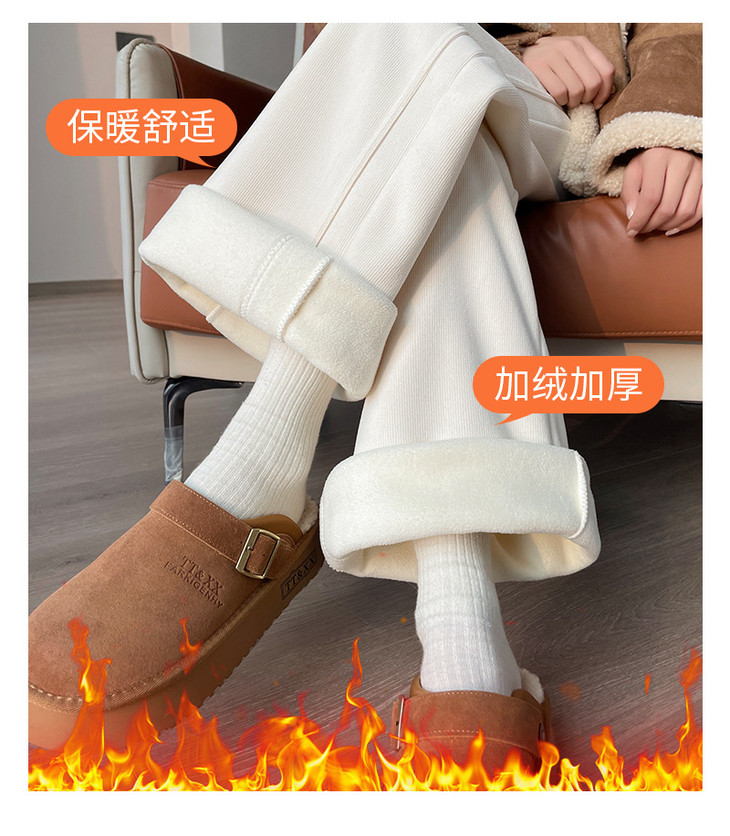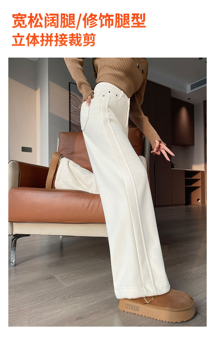 加绒阔腿裤女秋冬季新款高腰垂感显瘦宽松白色拖地直筒休闲裤