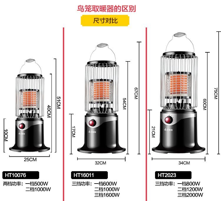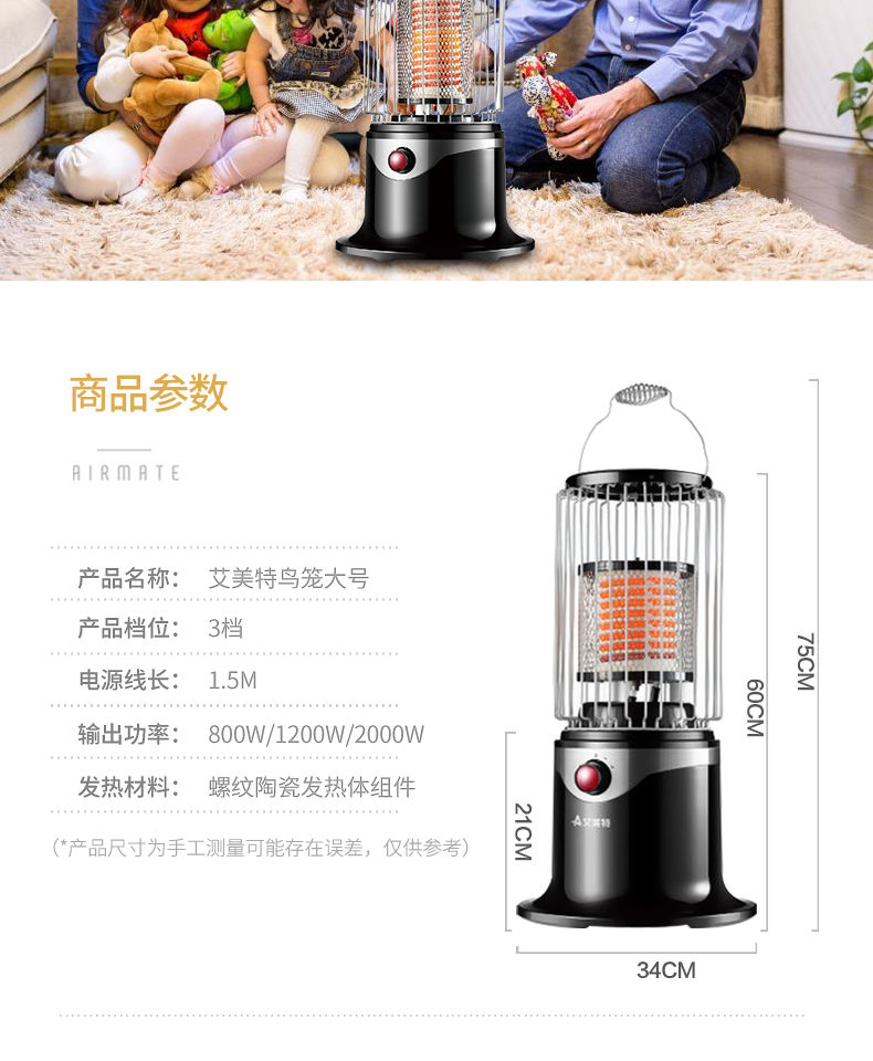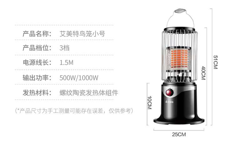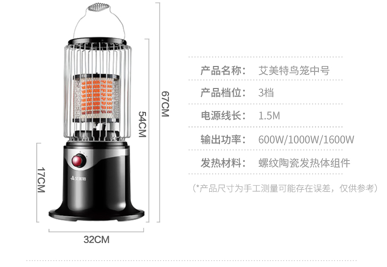 艾美特(506765)电暖器鸟笼烤火炉电火炉电暖气台式速热灯笼取暖器 1600瓦HT16011