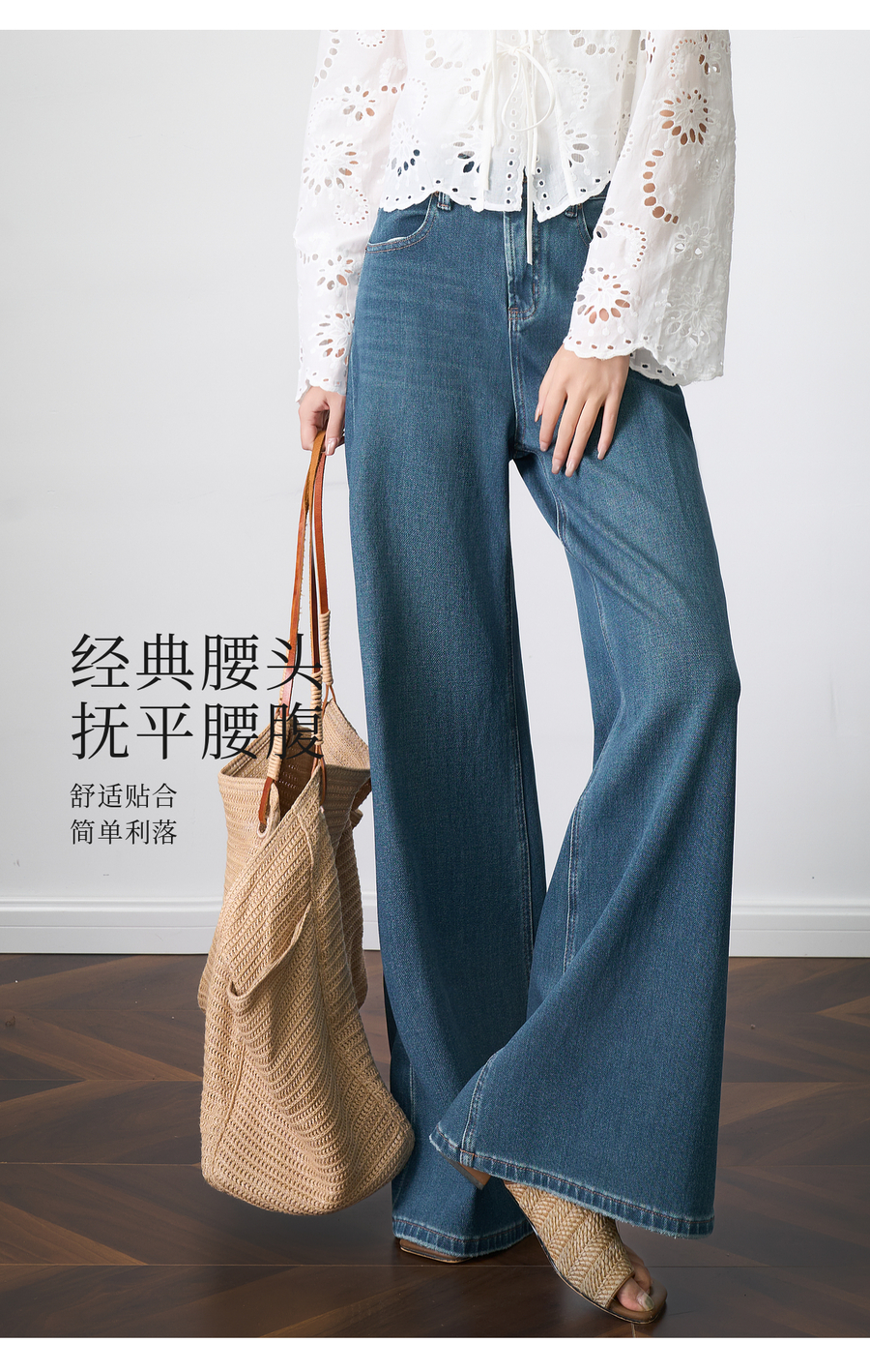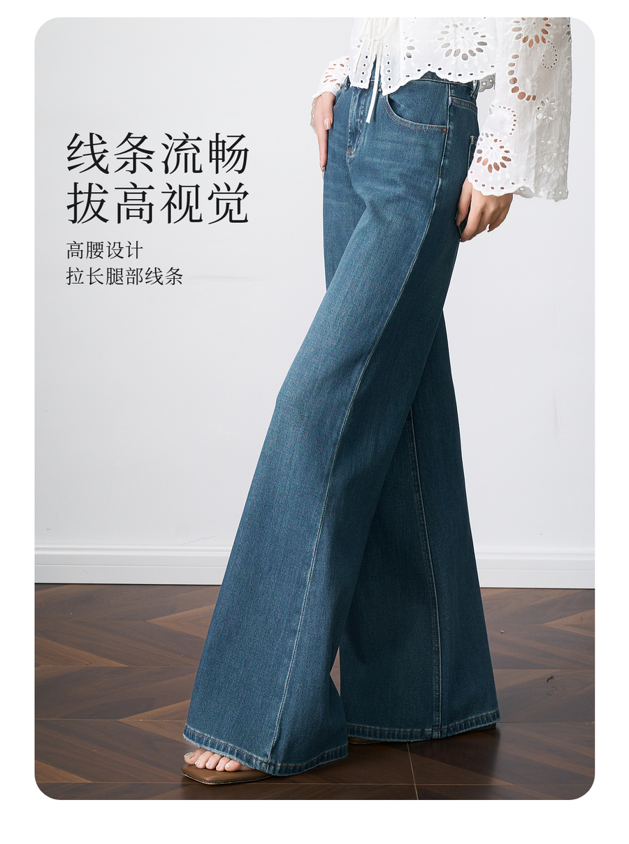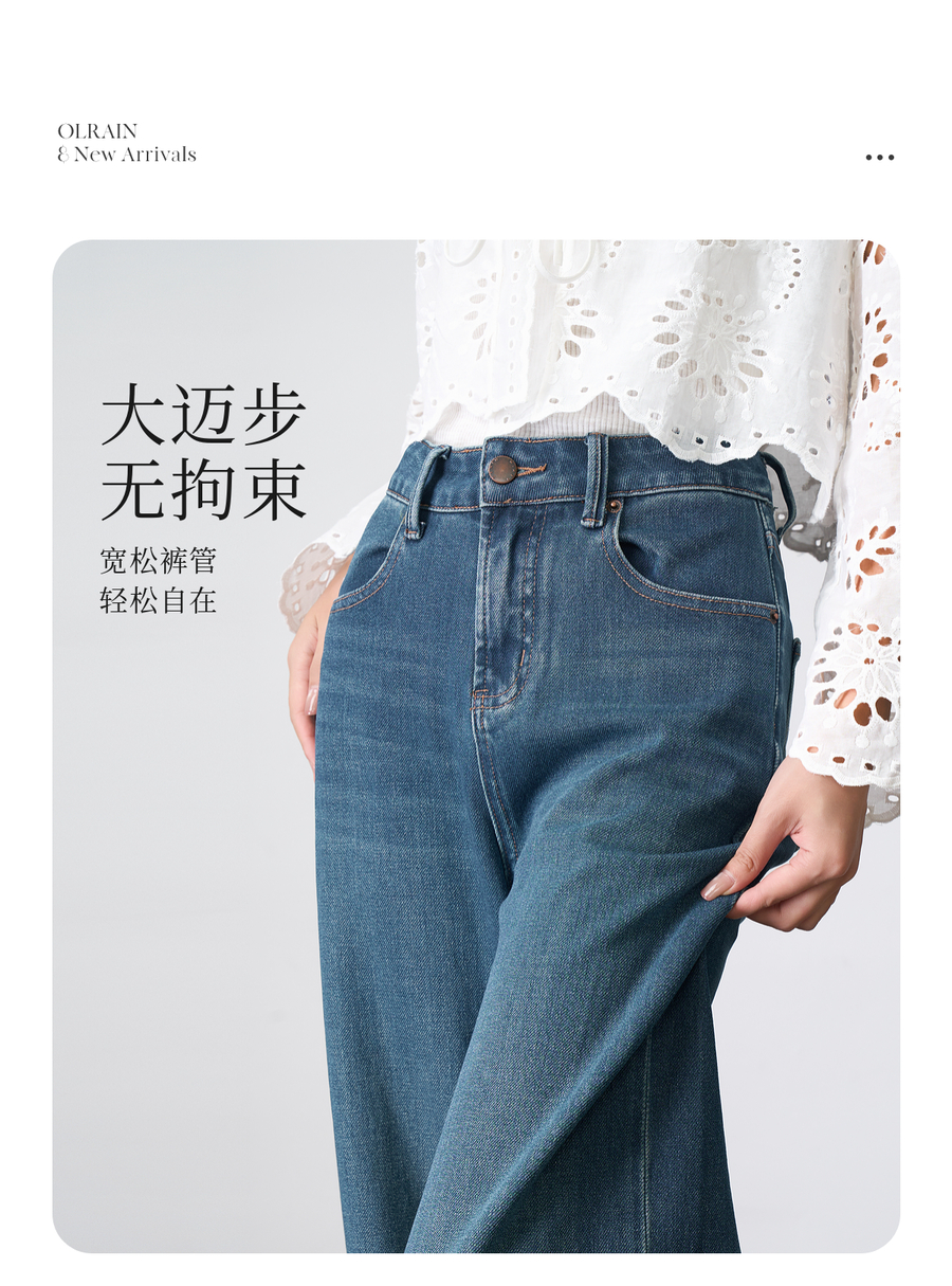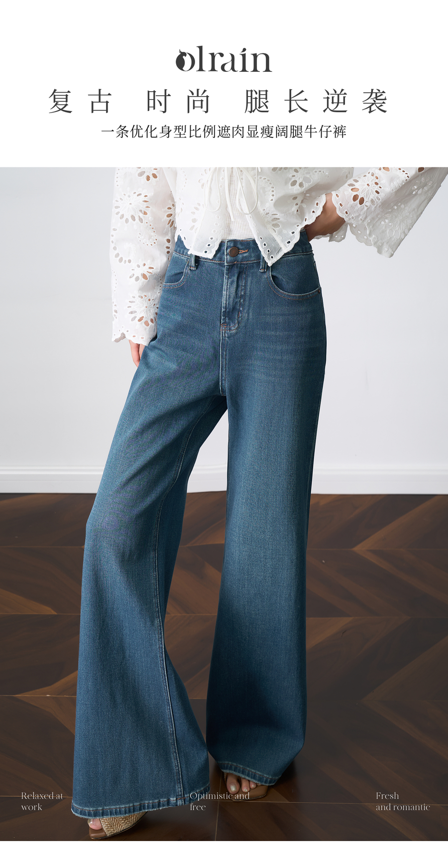 OLrain欧芮儿2025新款女秋季高腰显瘦垂感长裤复古微喇牛仔裤
