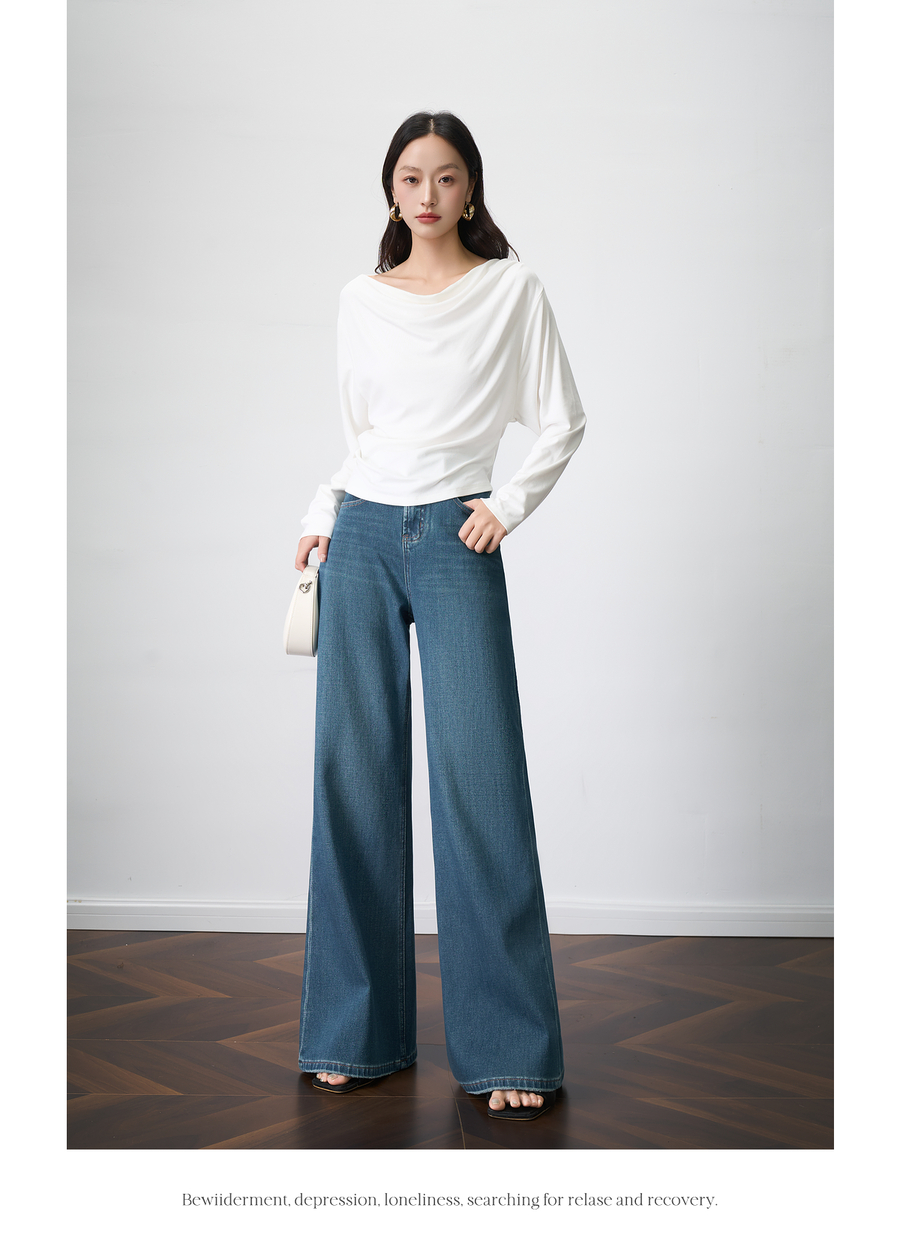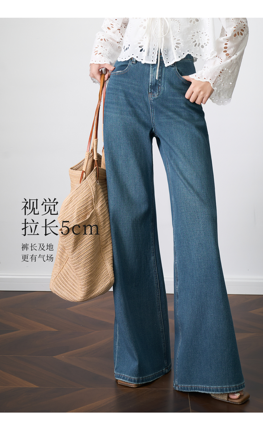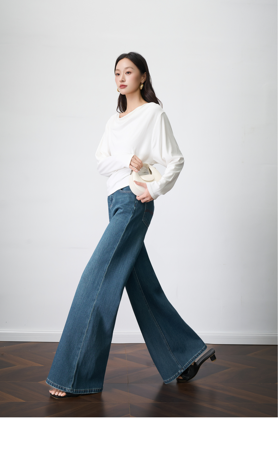 OLrain欧芮儿2025新款女秋季高腰显瘦垂感长裤复古微喇牛仔裤