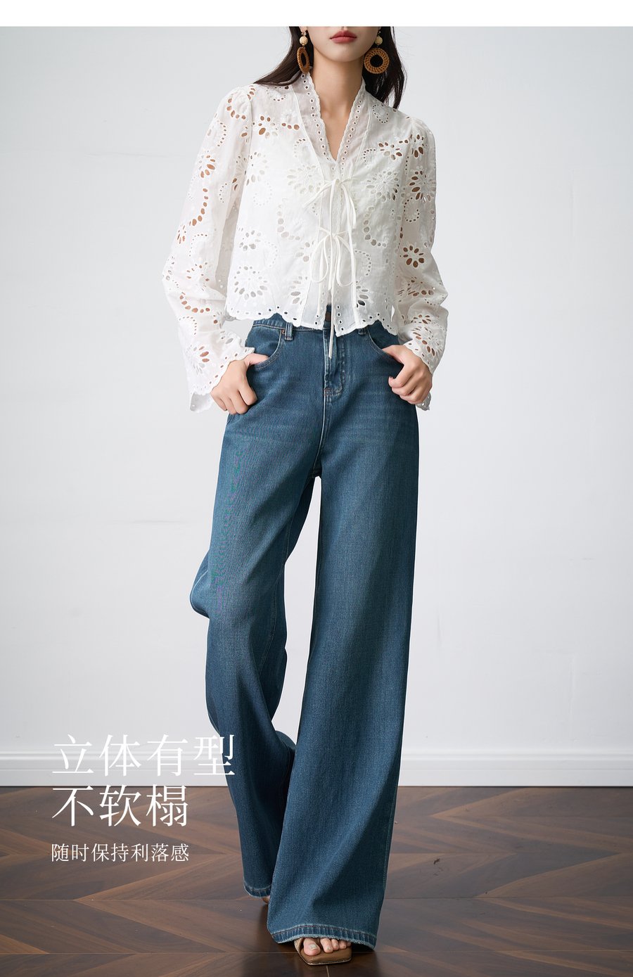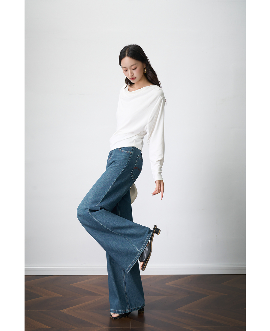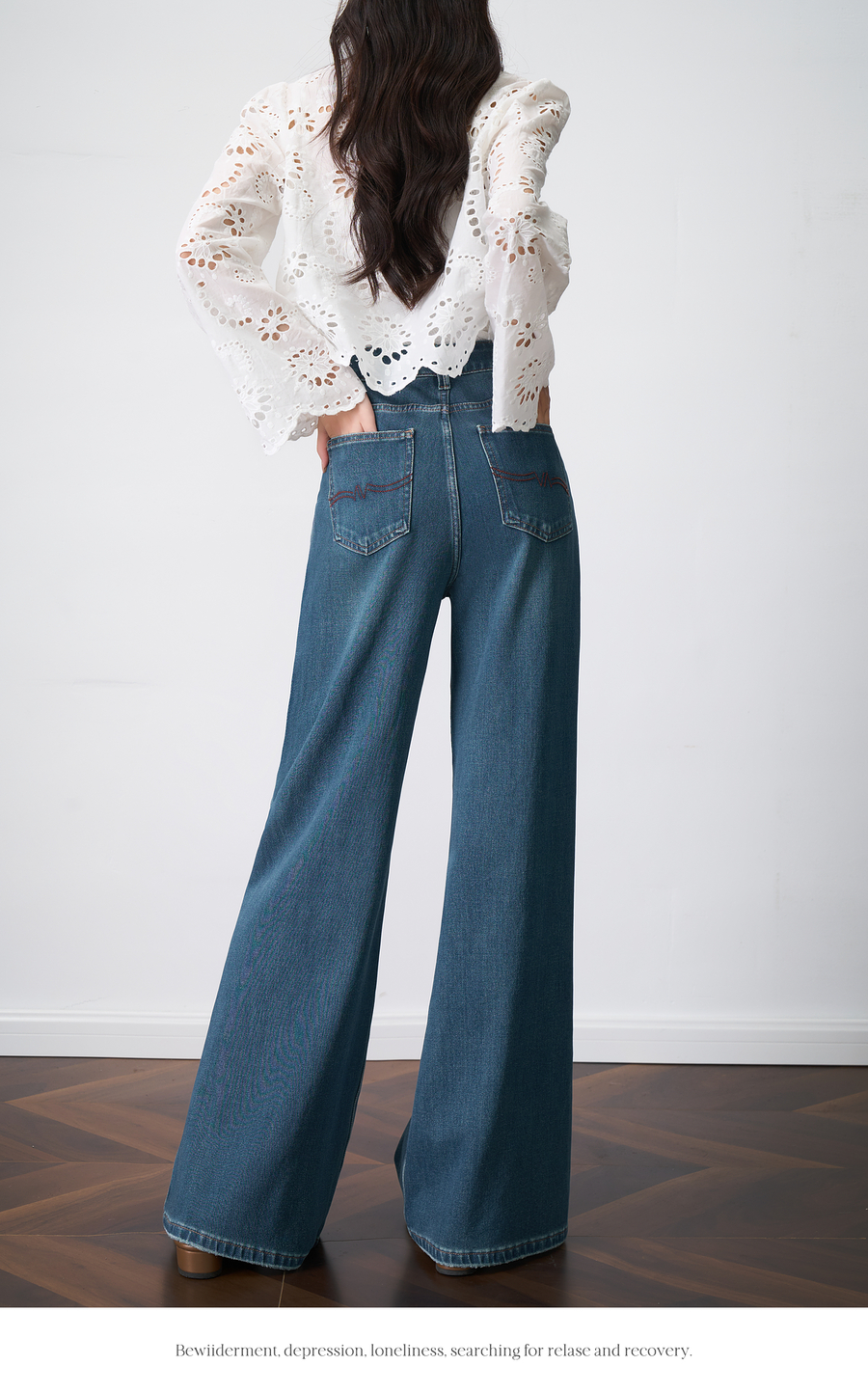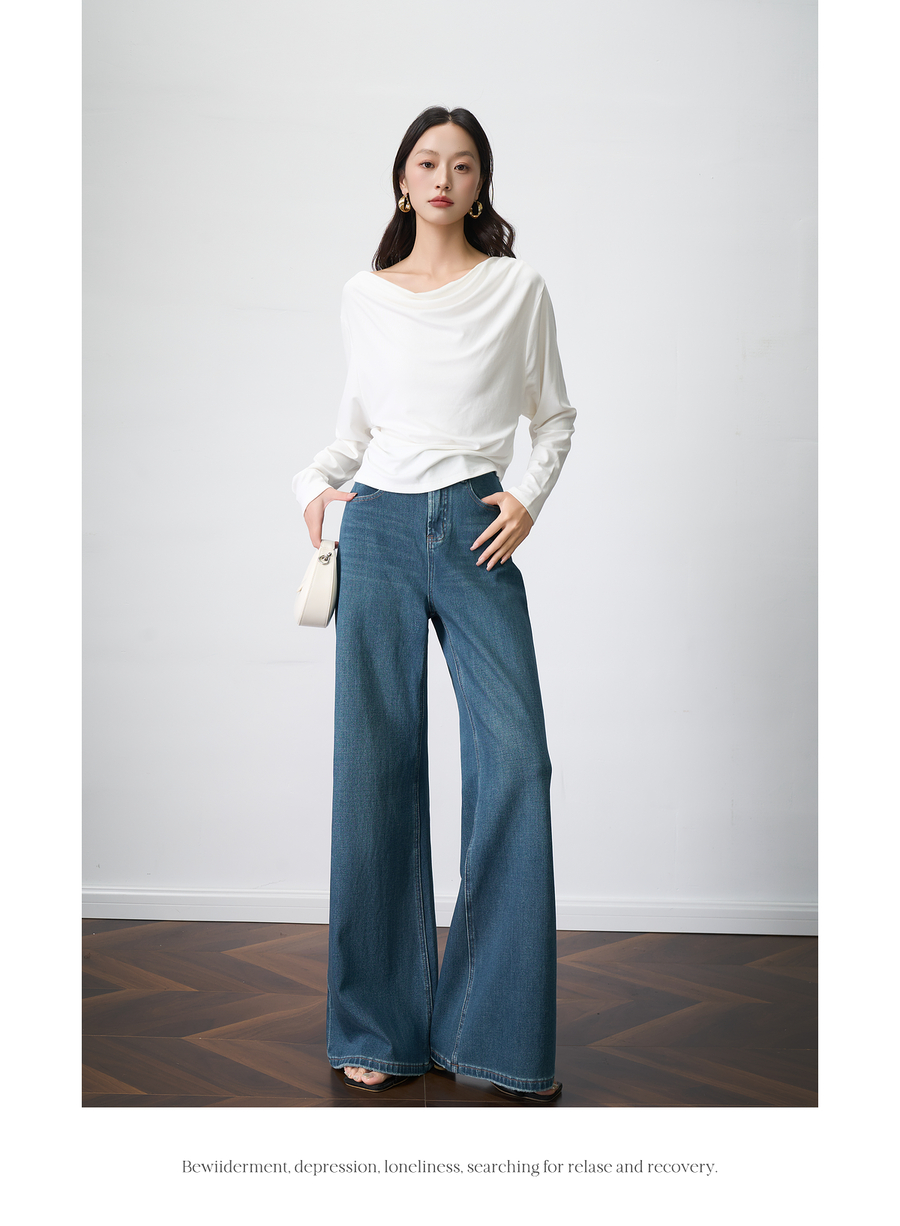 OLrain欧芮儿2025新款女秋季高腰显瘦垂感长裤复古微喇牛仔裤