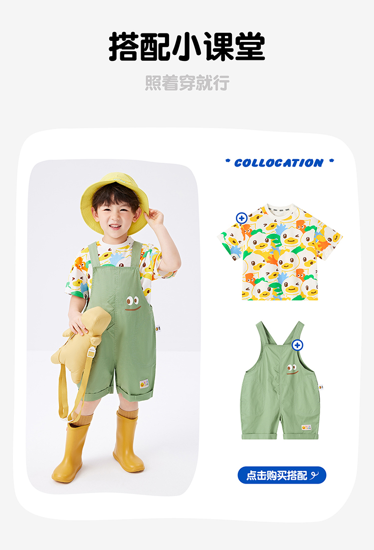 [驱蚊抗菌]bduck小黄鸭童装女童短袖儿童t恤宝宝上衣夏装纯棉体恤90-150 FF2701056