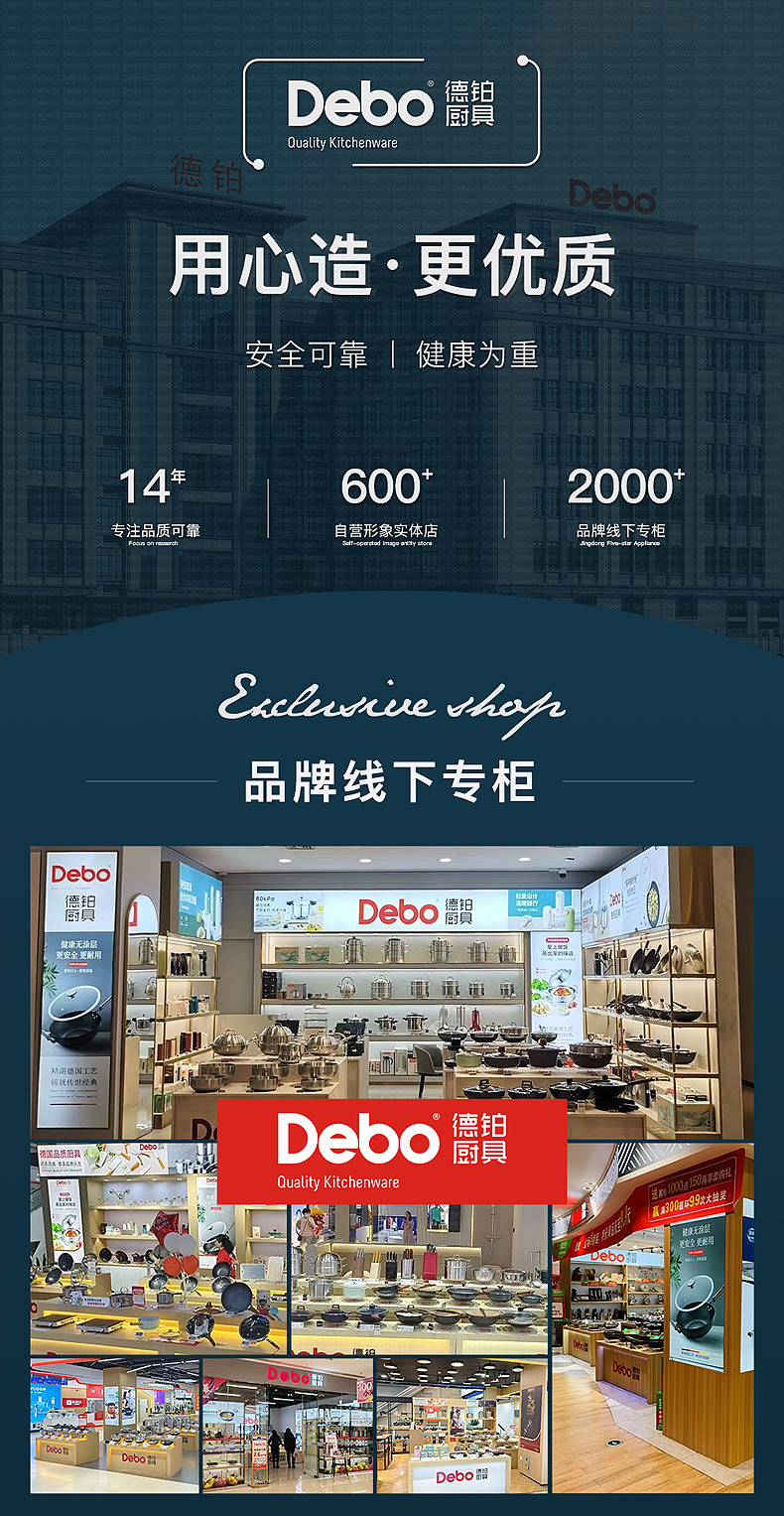 德铂实业有限公司经营旗下两个厨具品牌,分别是源自德国的德铂厨具、乐克尔厨具,品牌在市场深耕30多年,线上线下渠道都有普及,线上天猫、京东、苏宁易购、云集等渠道均有合作,产品线丰富,产品也得到市场的广度