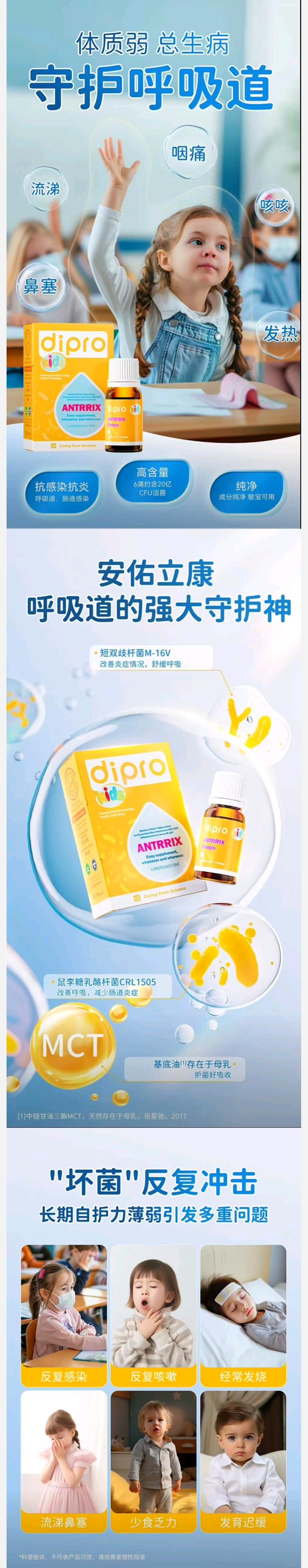dipro迪辅乐安佑立康益生菌滴剂10ml上呼吸道咽喉儿童宝宝舒鼻益生菌肠道胃