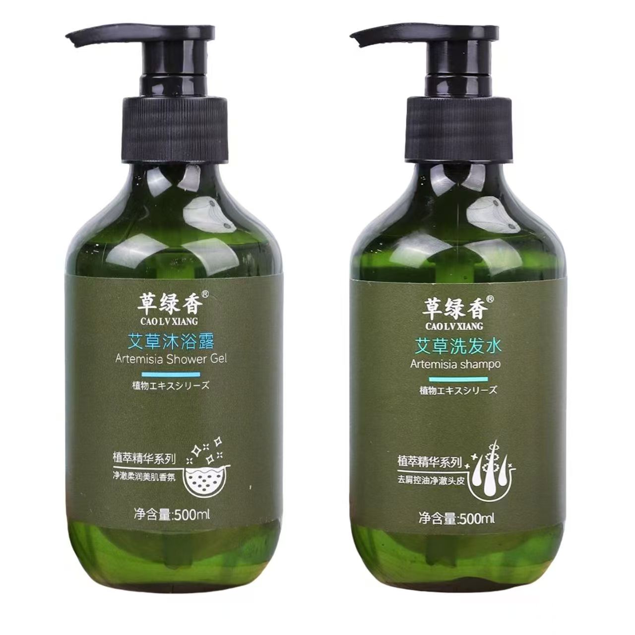 草绿香艾草沐浴露500毫升.洗发水500毫升
