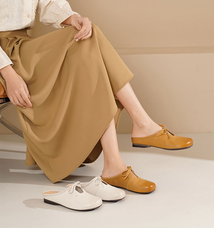 西村名物2025年夏季新款舒适平跟新中式风优雅穆勒拖鞋后空鞋T25AH14921