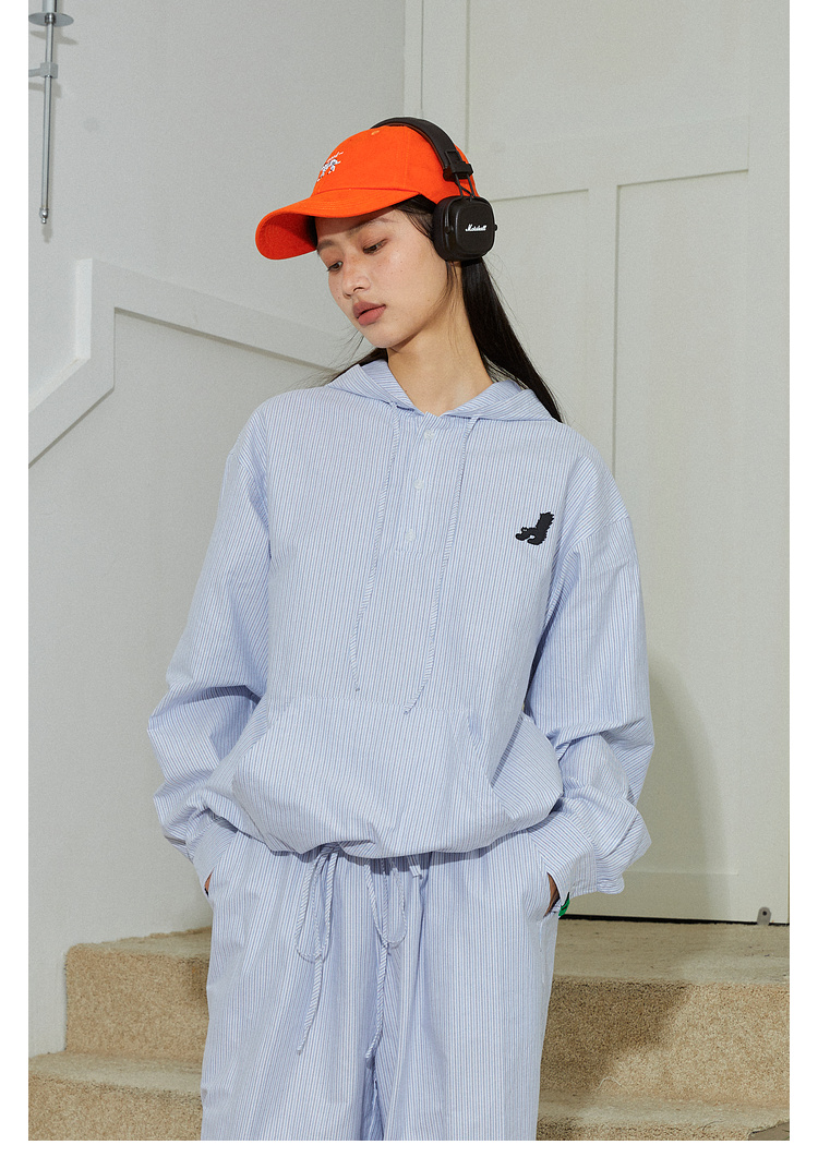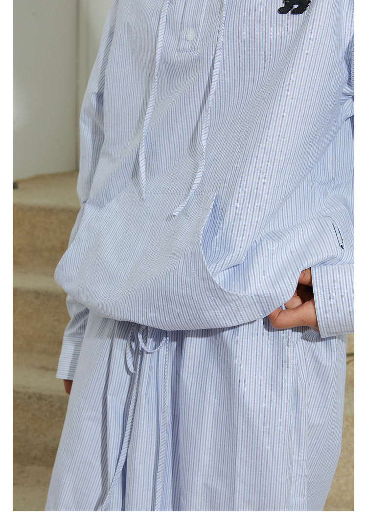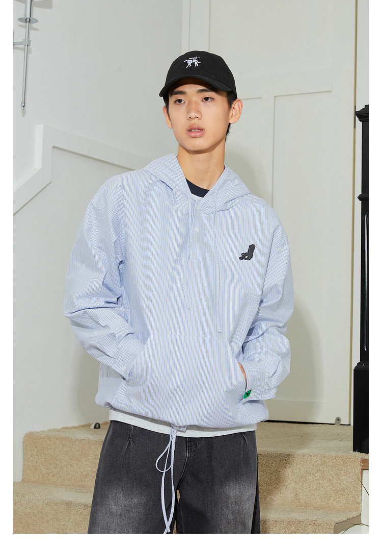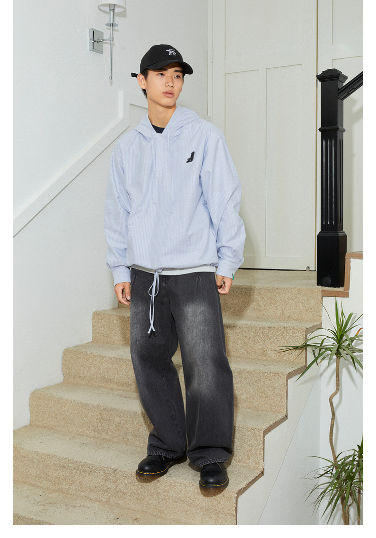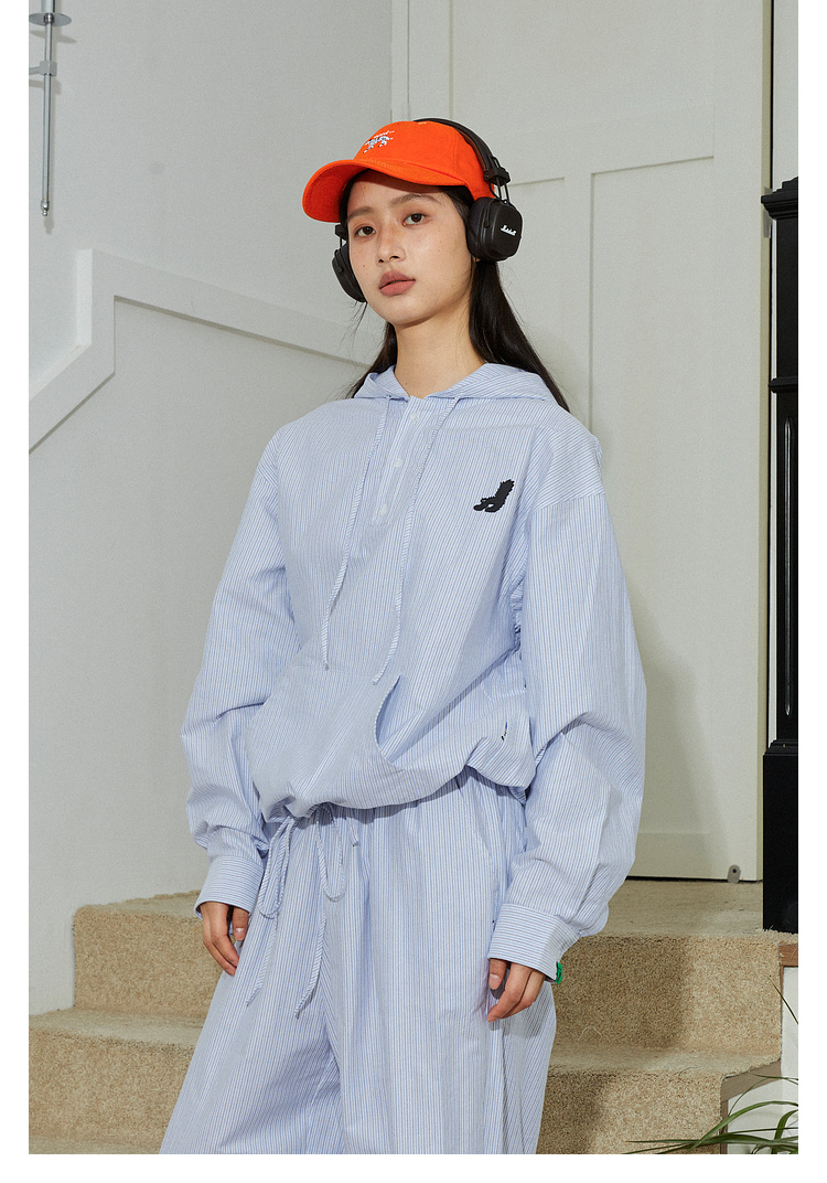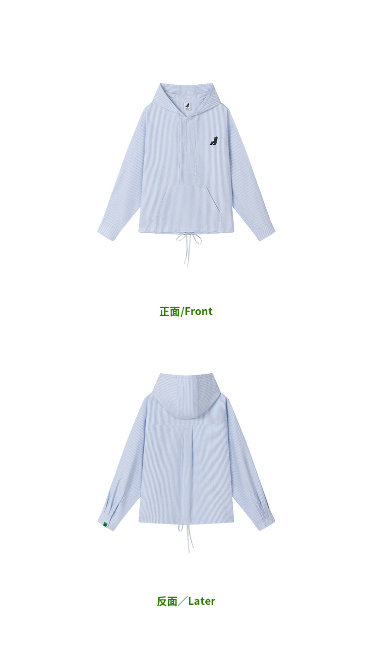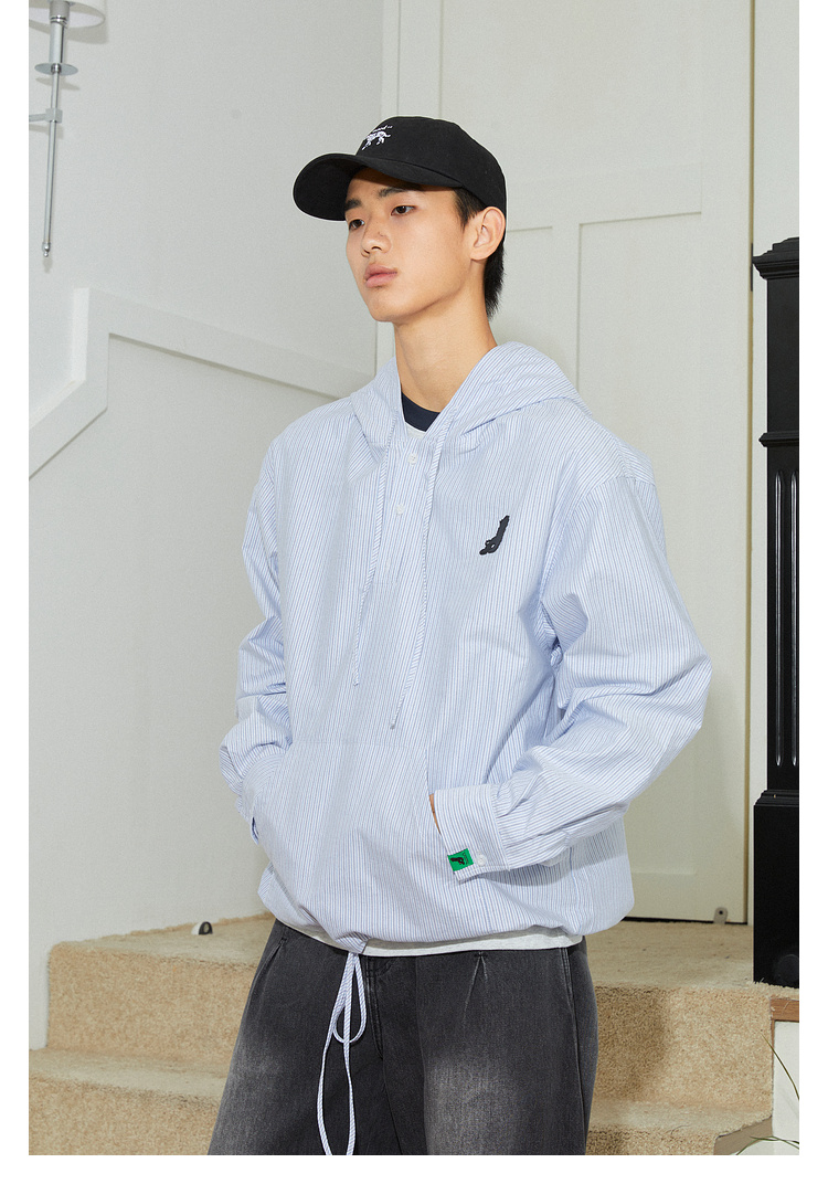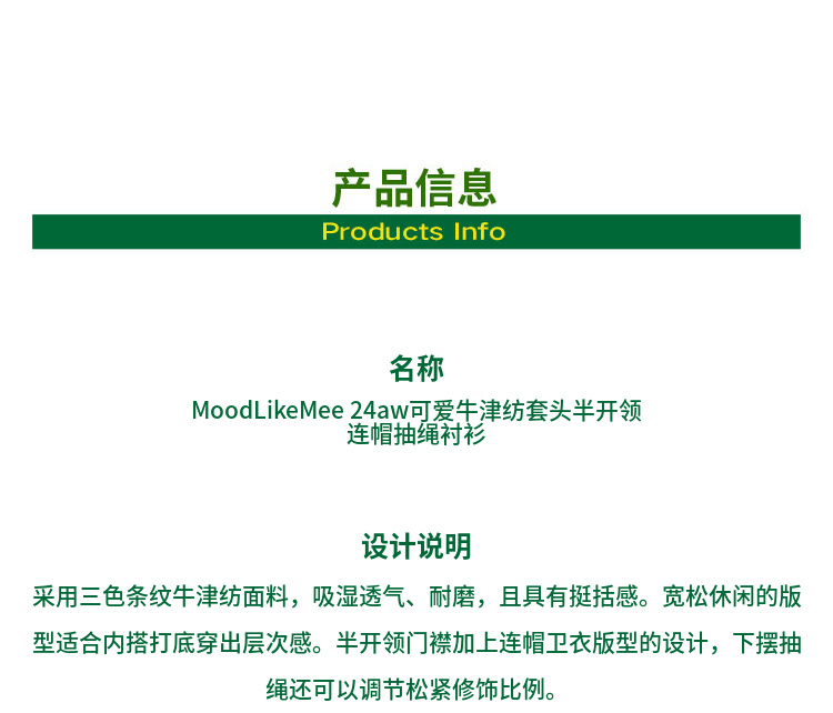Mood Like Me/MCS2408/牛津纺套头半开领 连帽抽绳衬衫