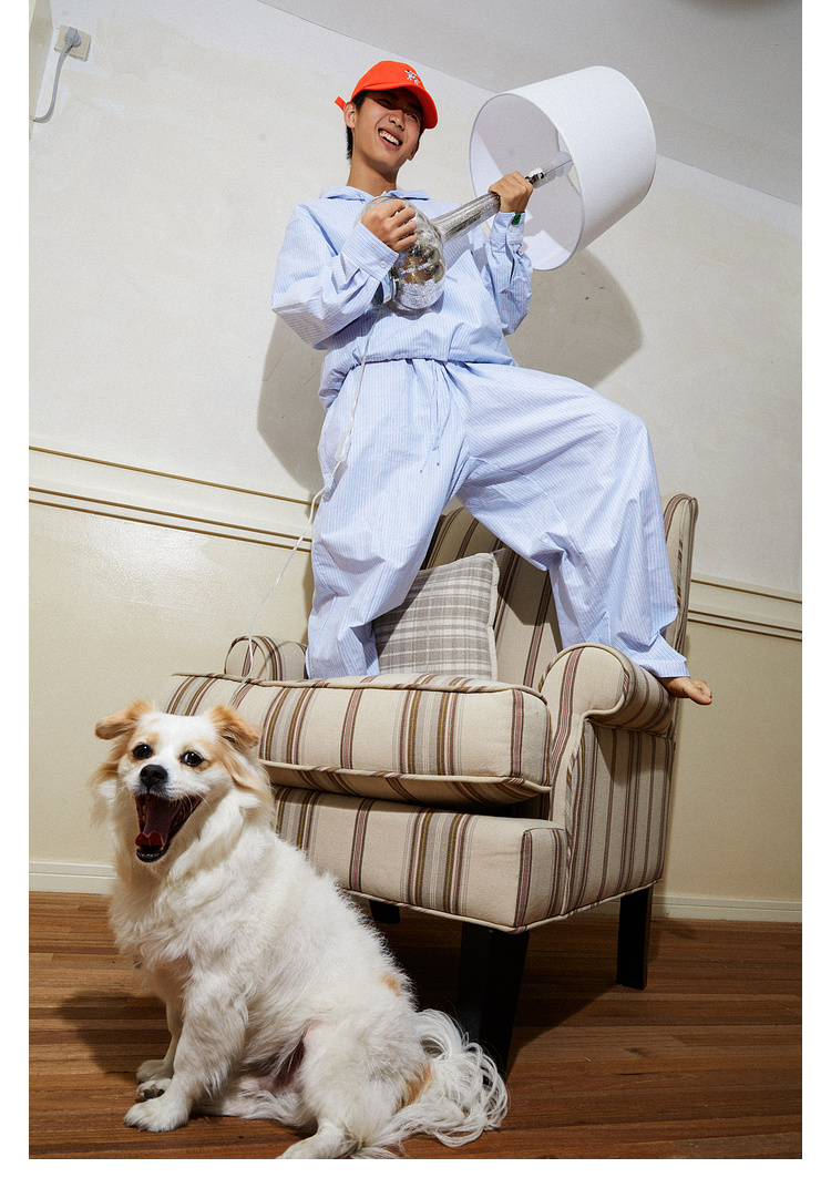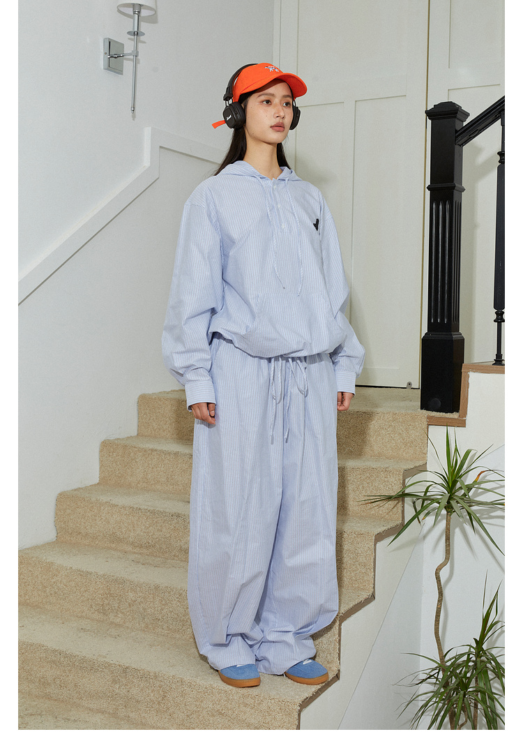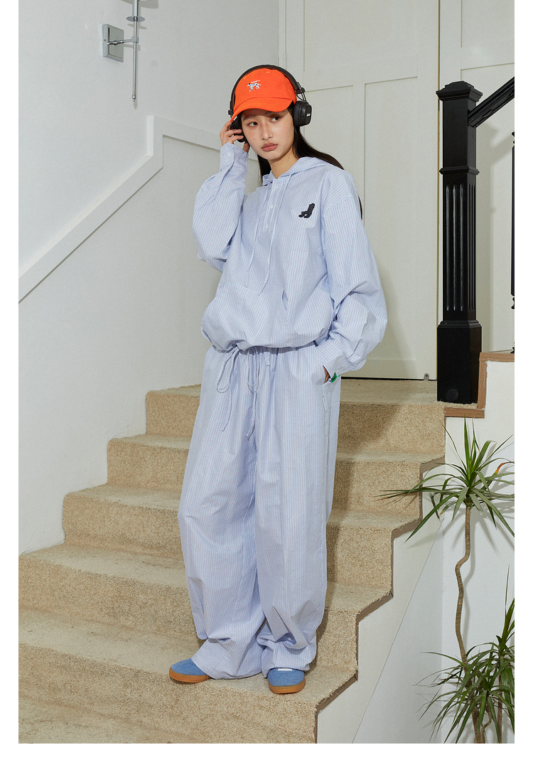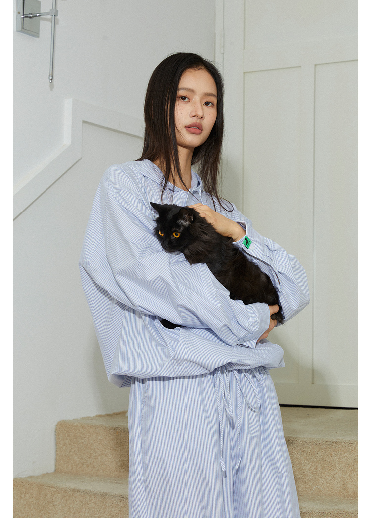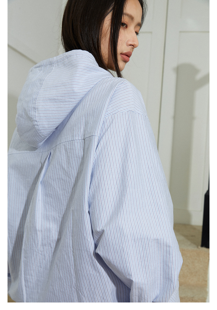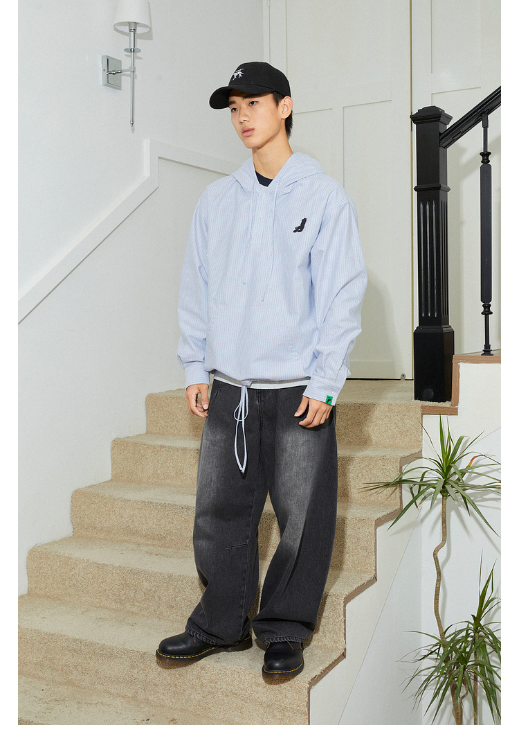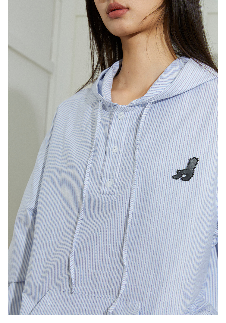 Mood Like Me/MCS2408/牛津纺套头半开领 连帽抽绳衬衫