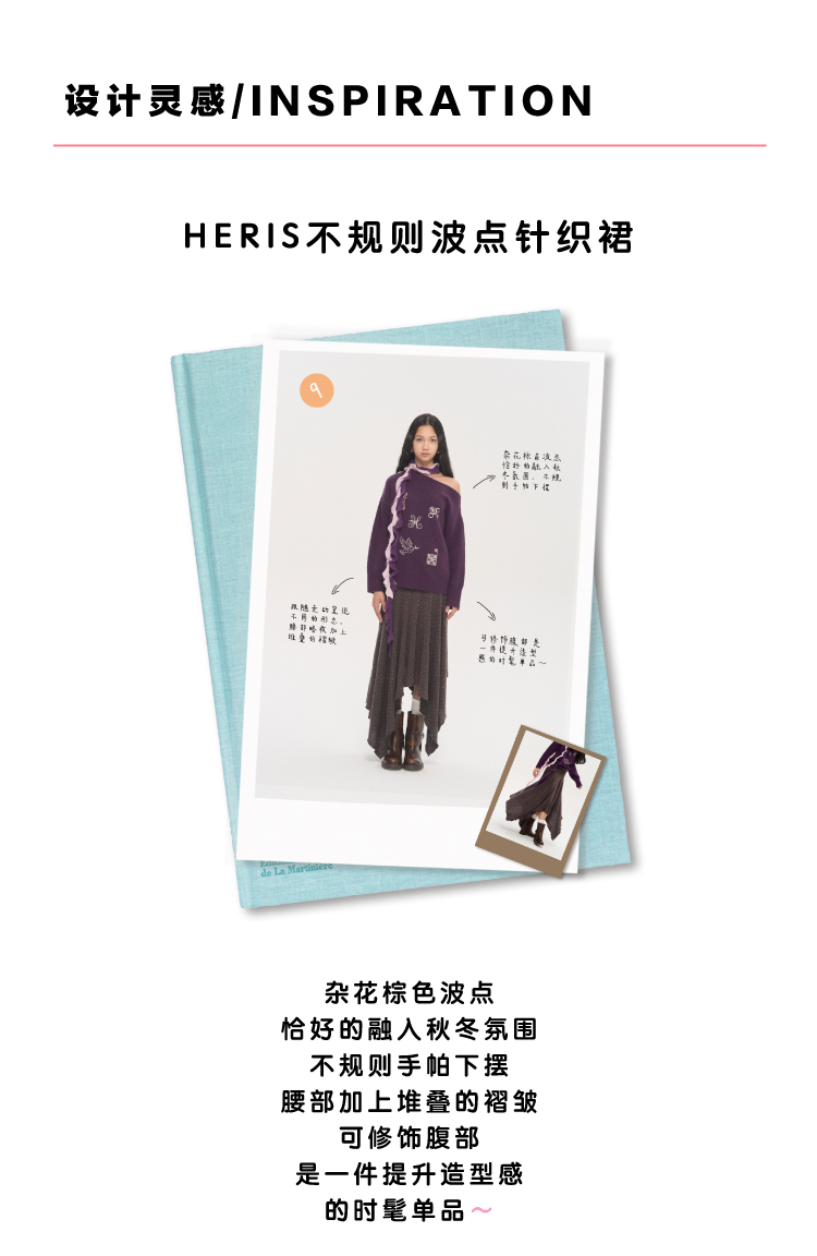 heris/H53118/不规则手帕下摆 杂花棕波点印花 垂感大摆针织半裙