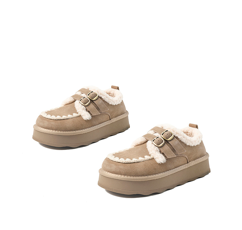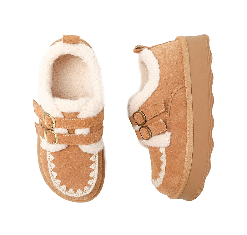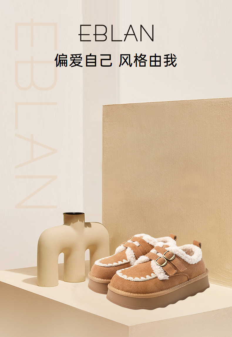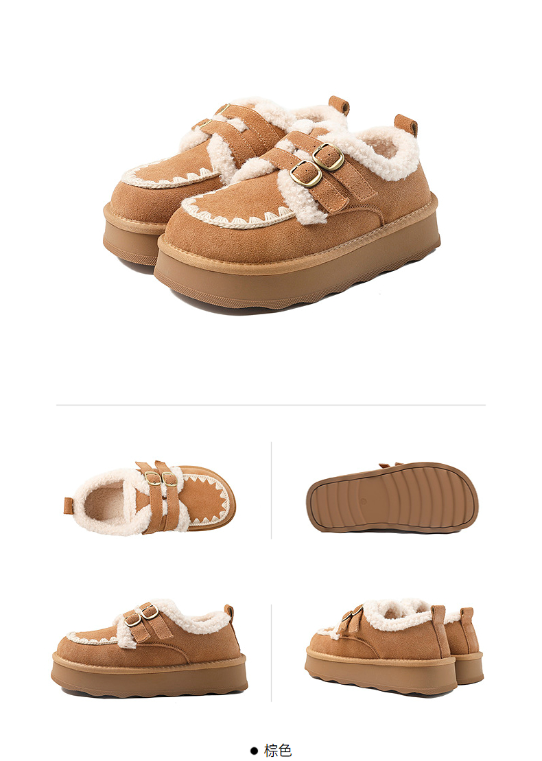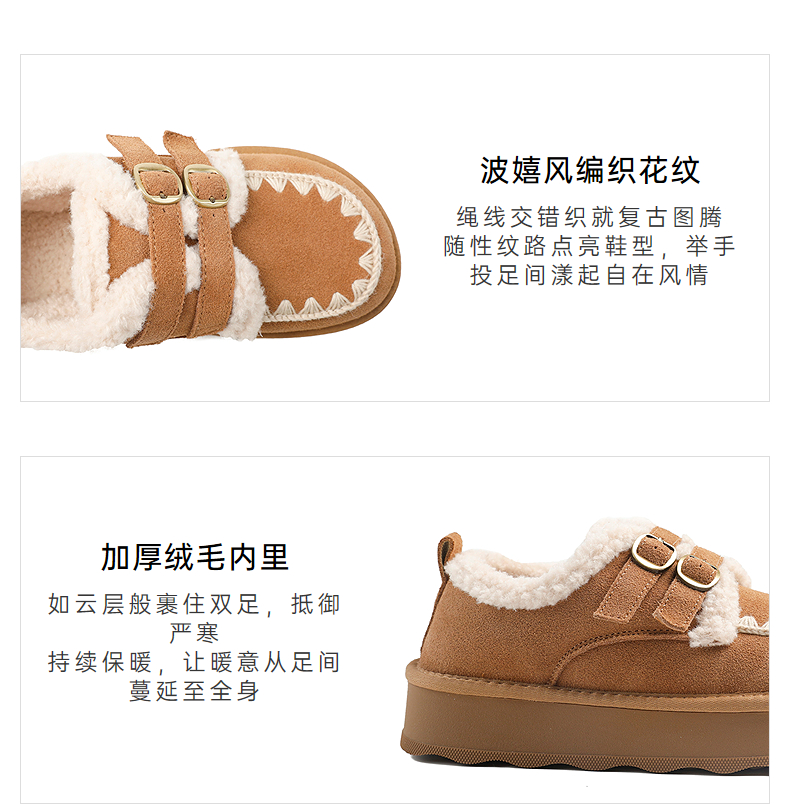 伊伴冬季加绒厚底棉鞋毛毛鞋波嬉风复古美拉德色系B25729008