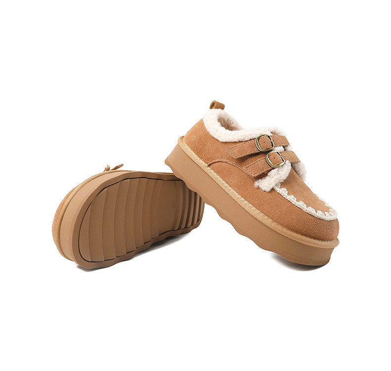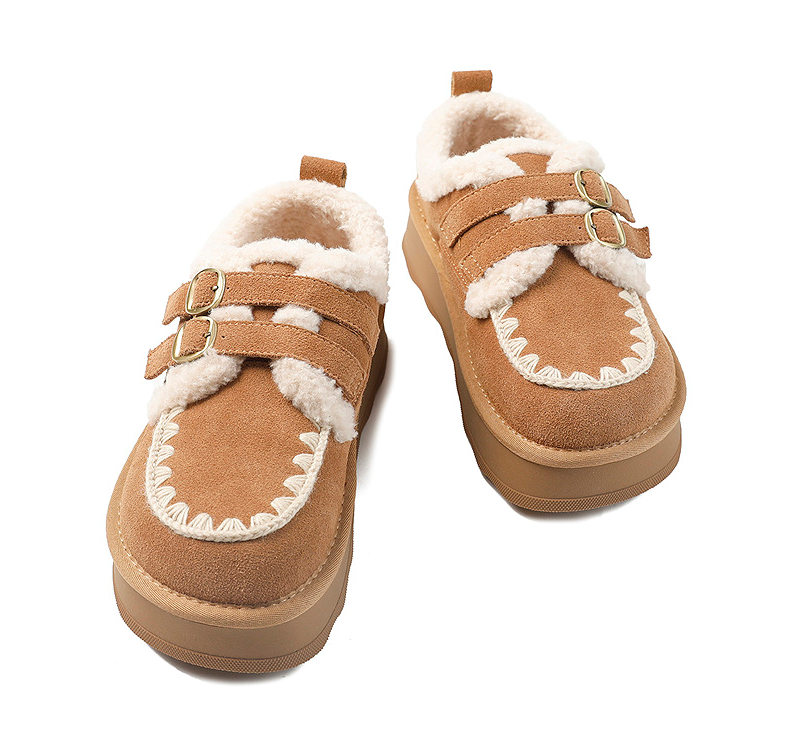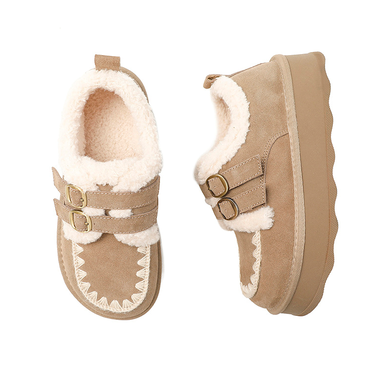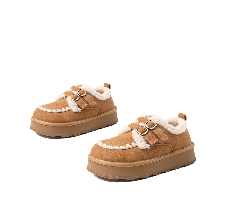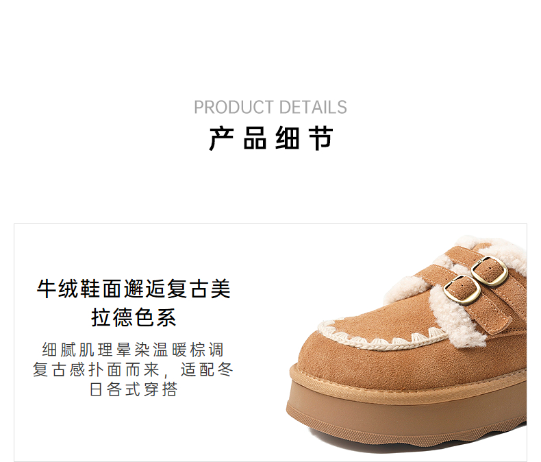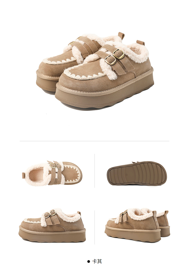 伊伴冬季加绒厚底棉鞋毛毛鞋波嬉风复古美拉德色系B25729008