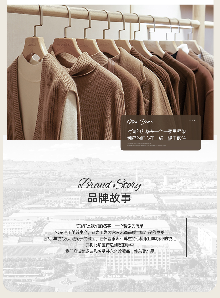 东黎羊绒是赤峰东荣集团自主品牌,自有牧场/羊绒制品全产业链优势,实现了羊绒从“牧场”到“商场”的华丽转变。