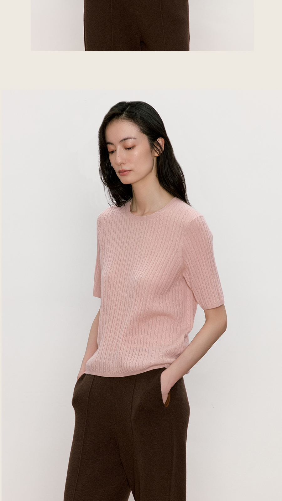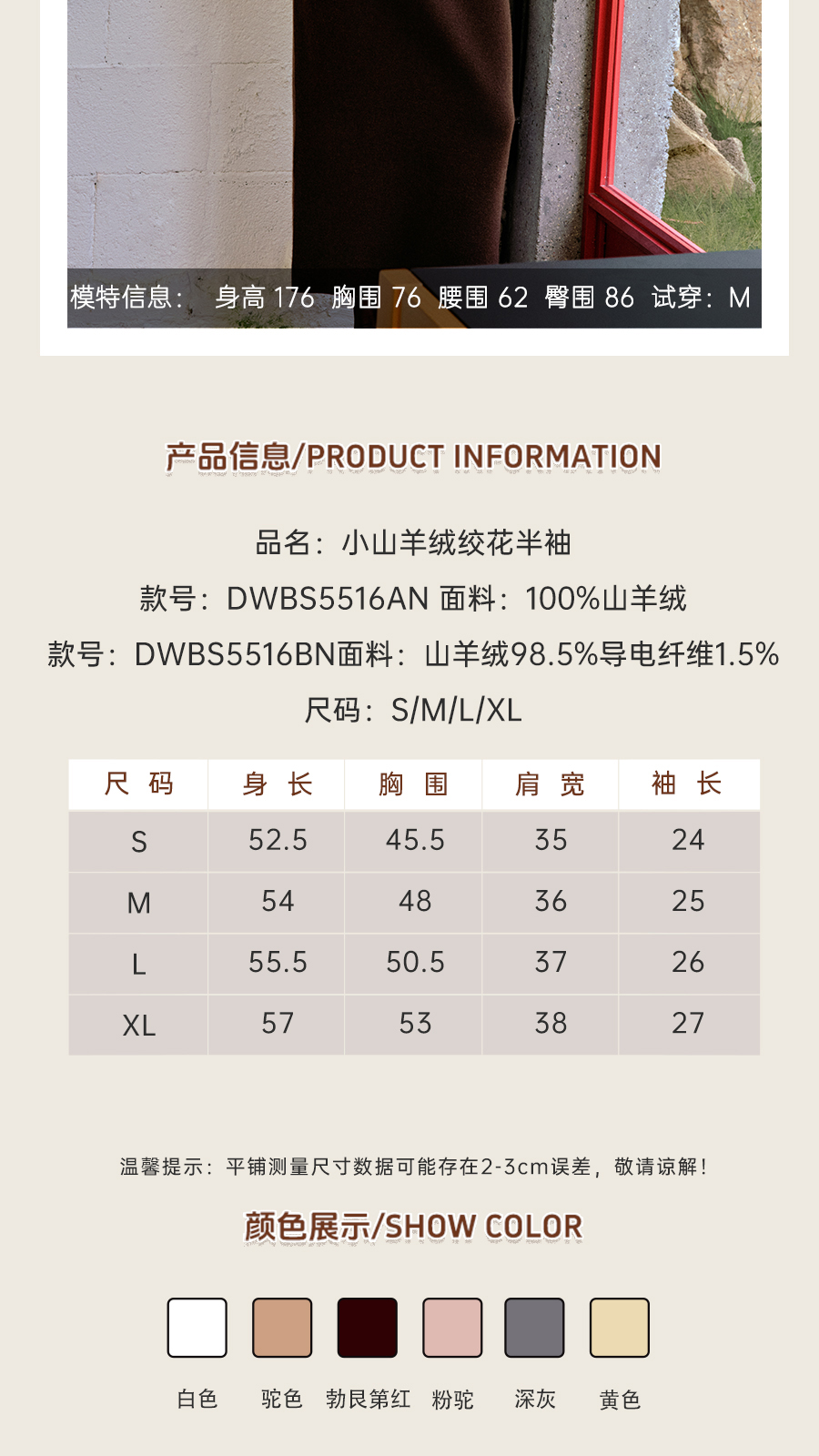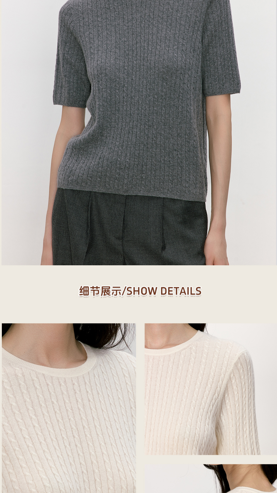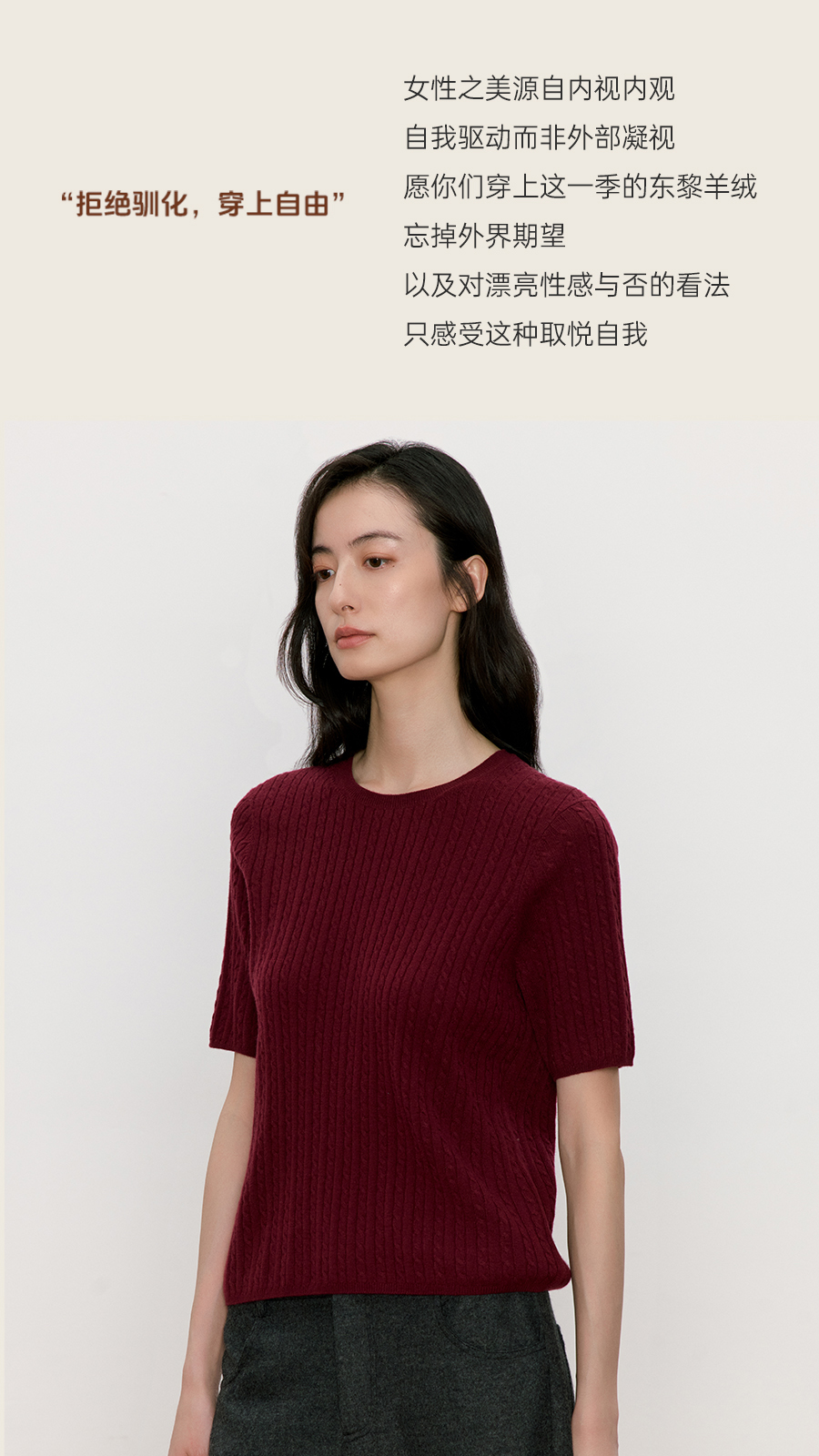 东黎 • 我不被驯化 小山羊绒女士秋季绞花半袖 5516