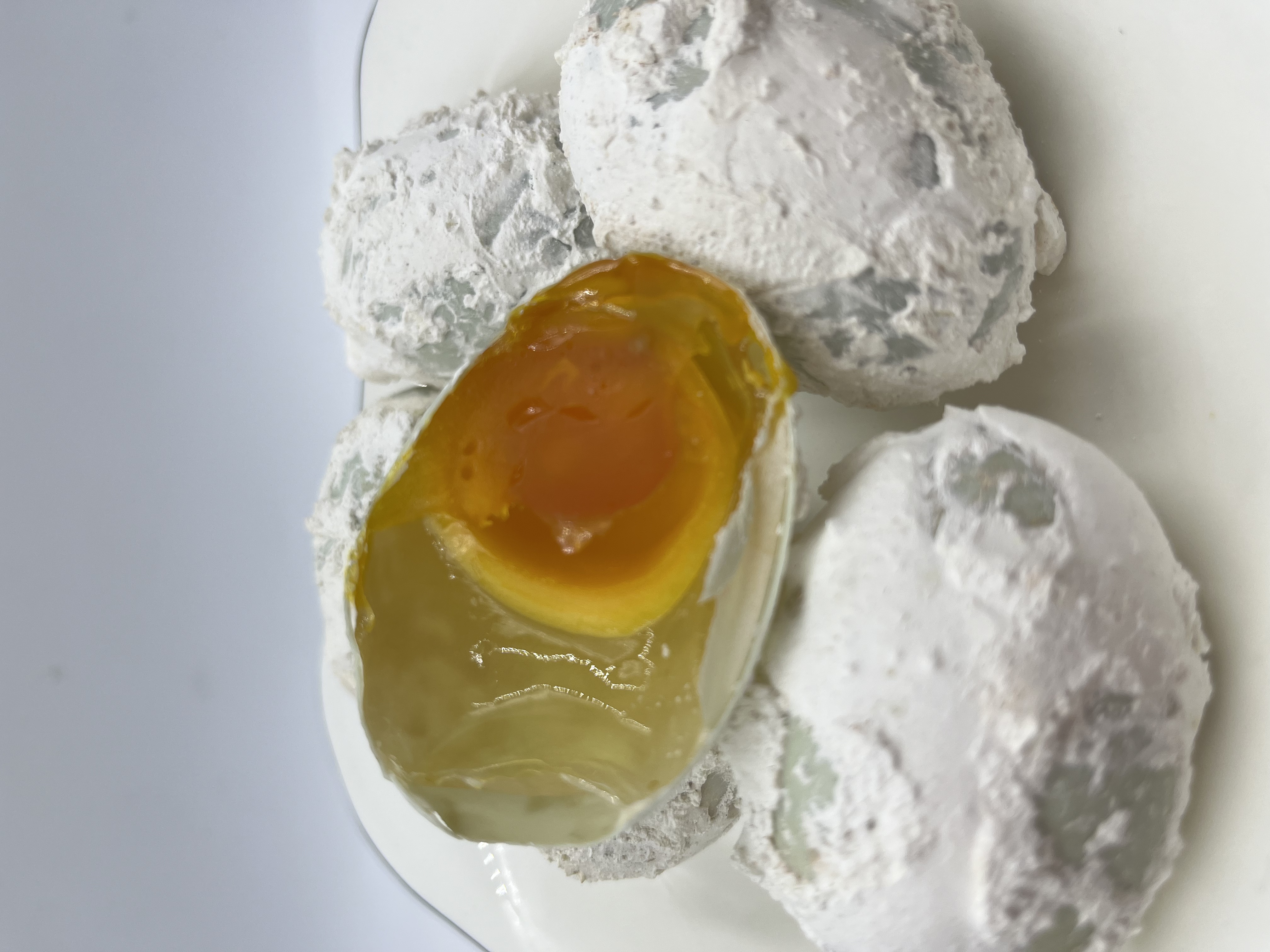 沿用百年非遗腌制技术,精准控制碱液配比与腌制时间(约35天),确保蛋黄呈半流动溏心状,口感柔滑如凝脂,蛋清Q弹透亮。