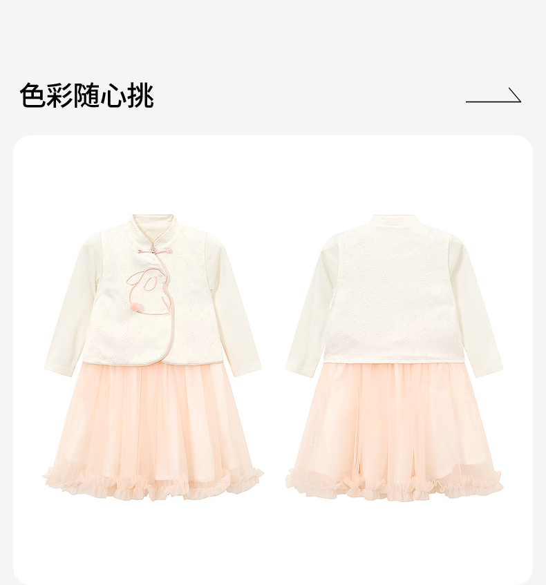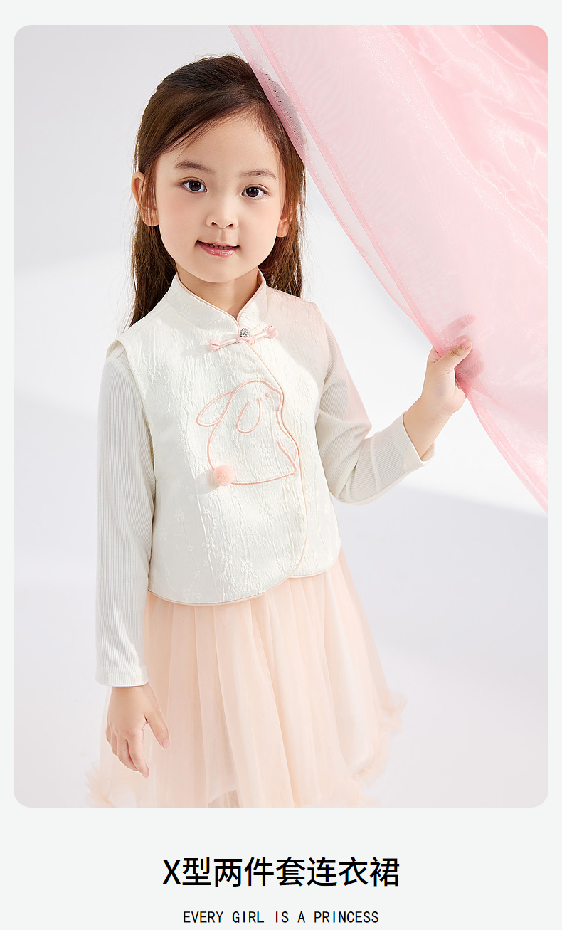 笛莎Deesha 女小童2024秋季小宝宝女童国风套装连衣裙