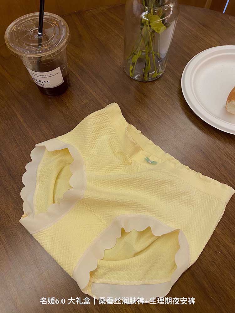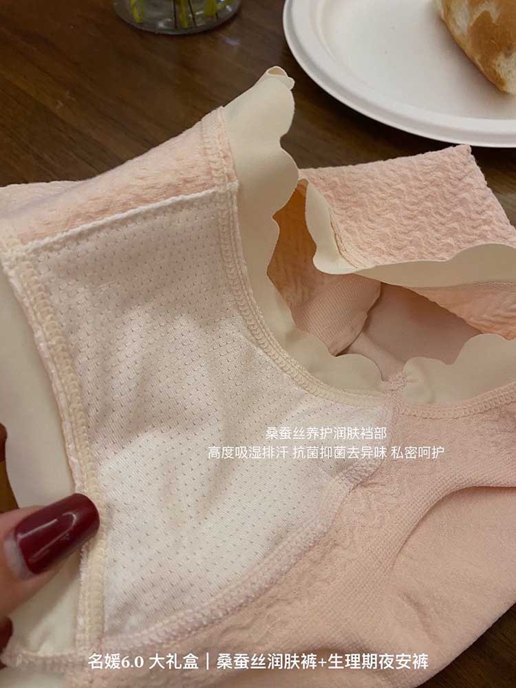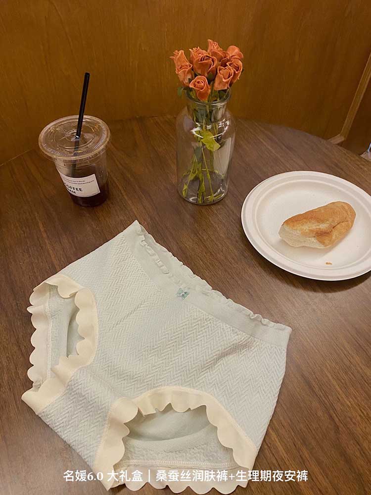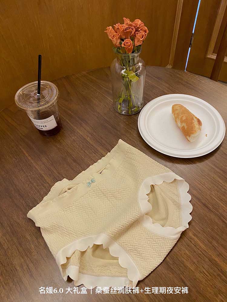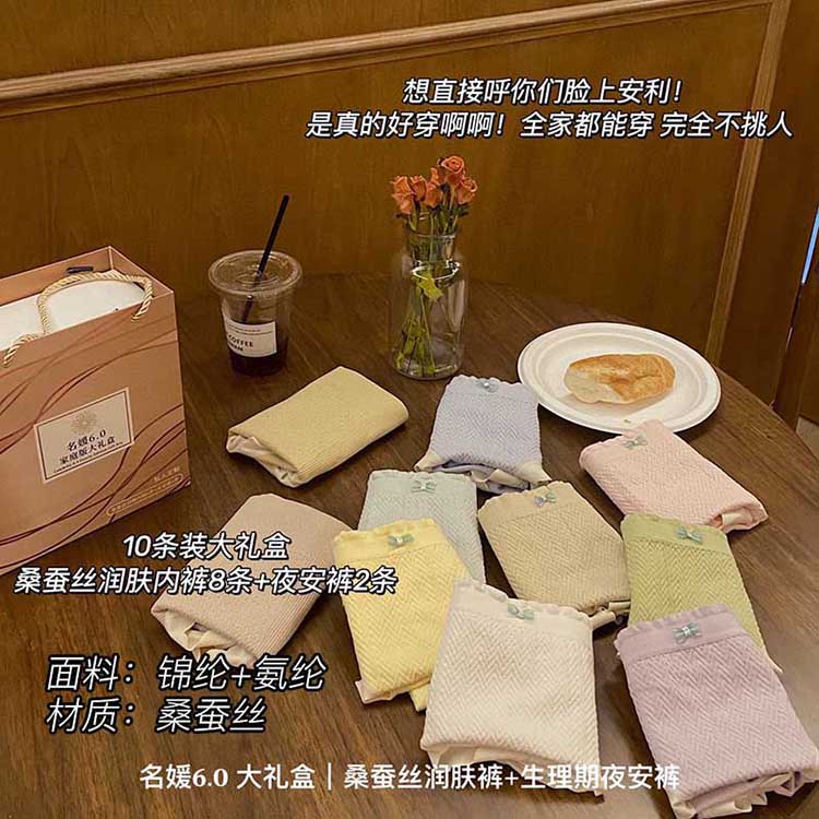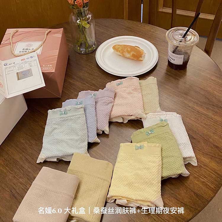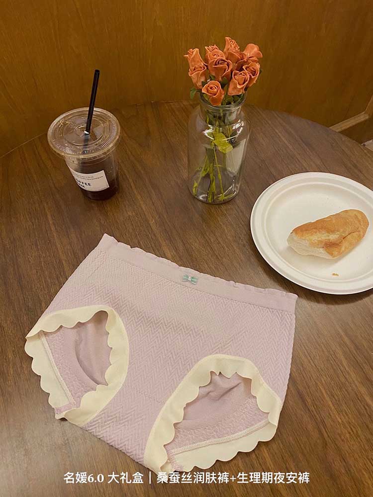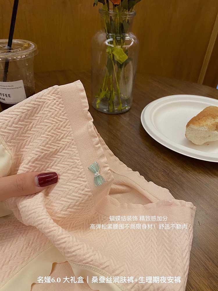 产品特点:小蝴蝶结装饰+高弹松紧腰围穿起来舒适不勒肉,桑蚕丝养护润肤裆部,高度吸湿排汗,抗菌抑菌,呵护女性健康!3D立体蜜桃臀设计,有效提拉臀线!黑科技石墨烯防水涂层,接触水分,迅速展开杀菌网状!抑菌杀菌,告别侧漏!安心睡觉~拉弹性超好,裸感舒服!